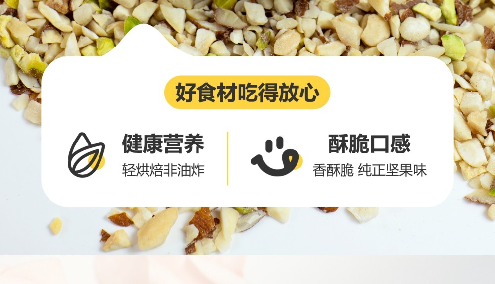 | Food Taste | Mixed Nut Crumbs 250g*1 Bag (5 Kinds of Pure Nut Crumbs),Mixed Nut Crumbs 250g*2 Bags (5 Kinds of Pure Nut Crumbs),Mixed Nut Crumbs 250g*5 Bags (4 Kinds of Pure Nut Crumbs) |