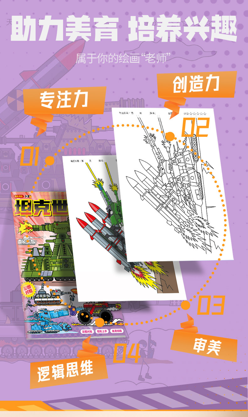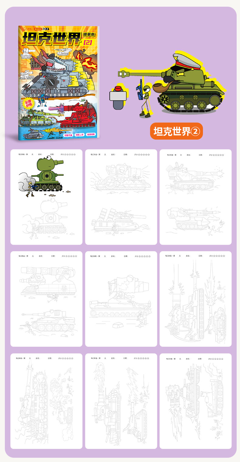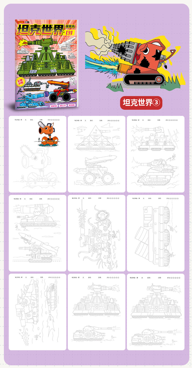 World of Tanks Tracing Book Kv44 Military Model Drawing Book Cartoon Sketch Line Drawing Book Children's Pen Control Practice Sketch Tracing Book Zero Foundation Simple Drawing Book Kindergarten Doodle Tracing Book Colored Pencil Acrylic Coloring Practice Book