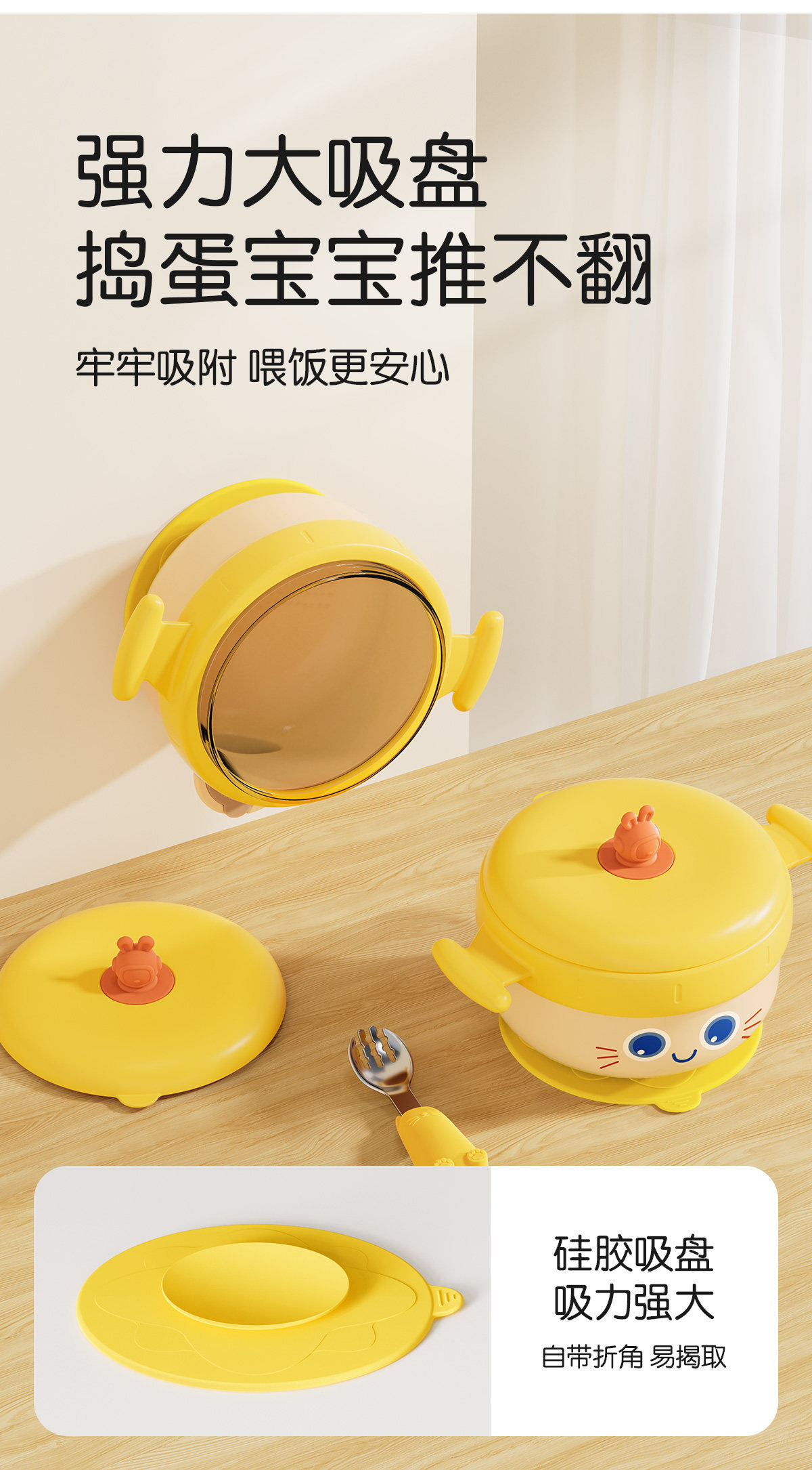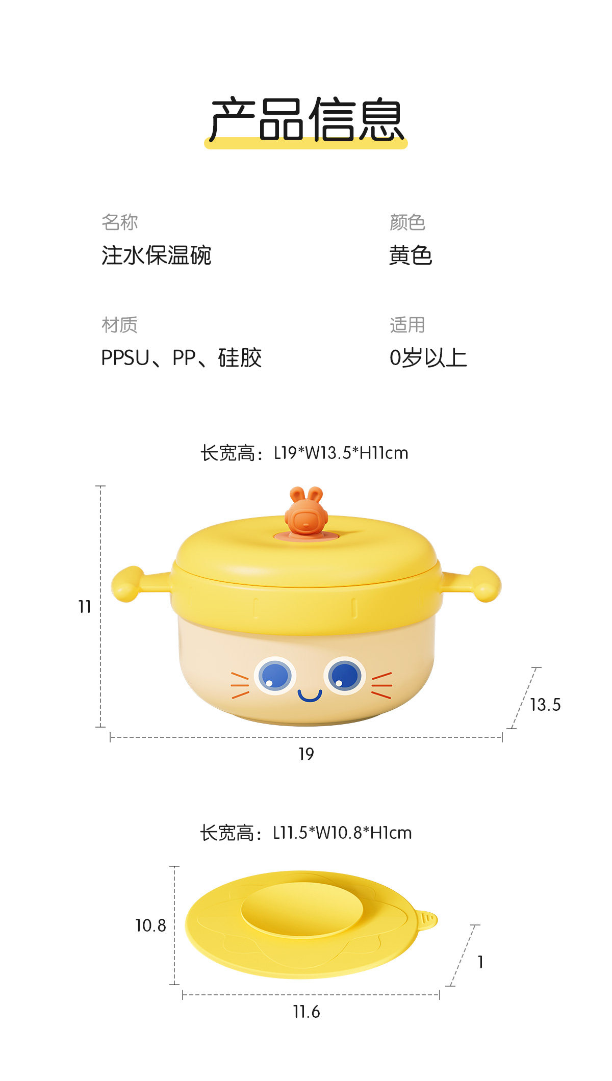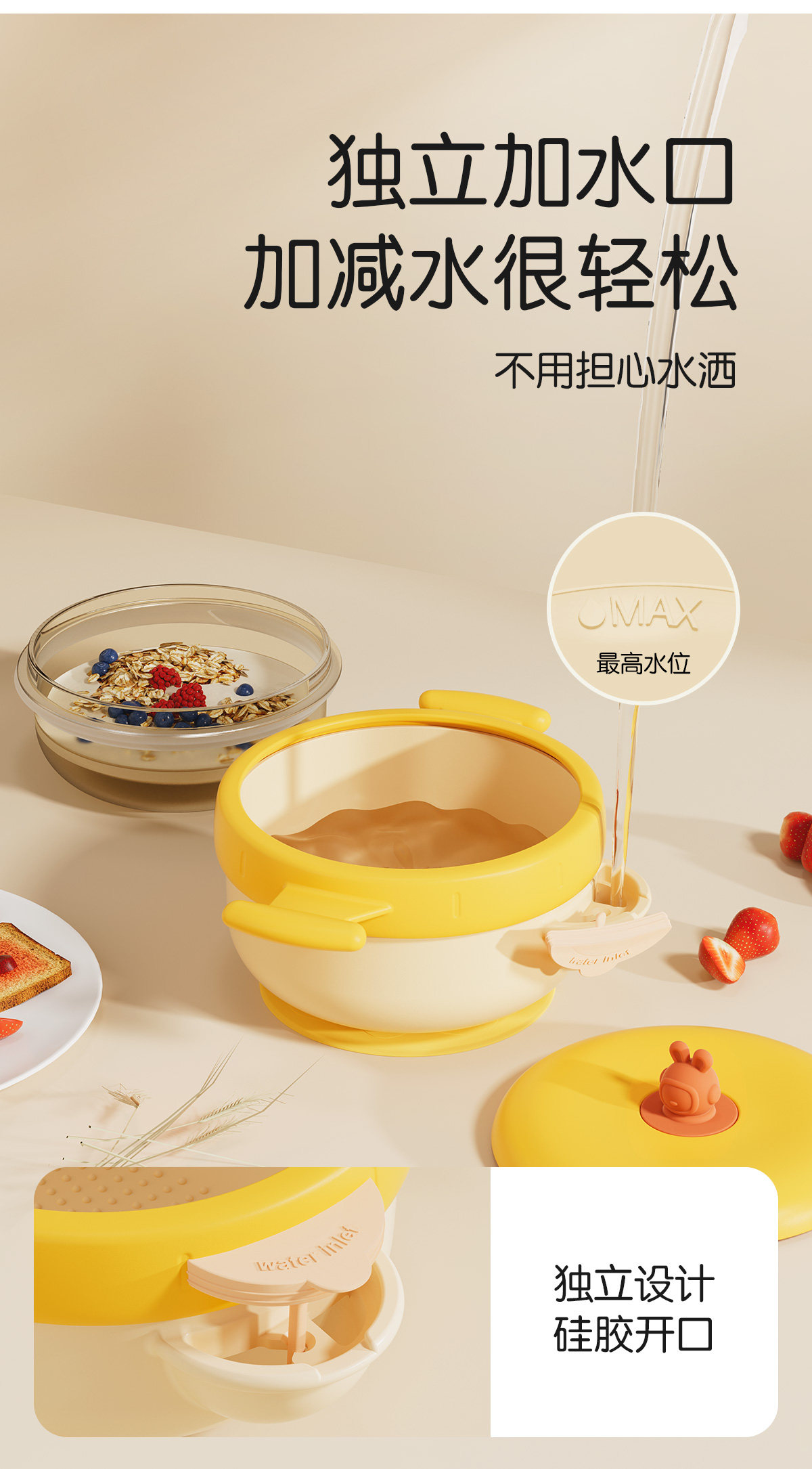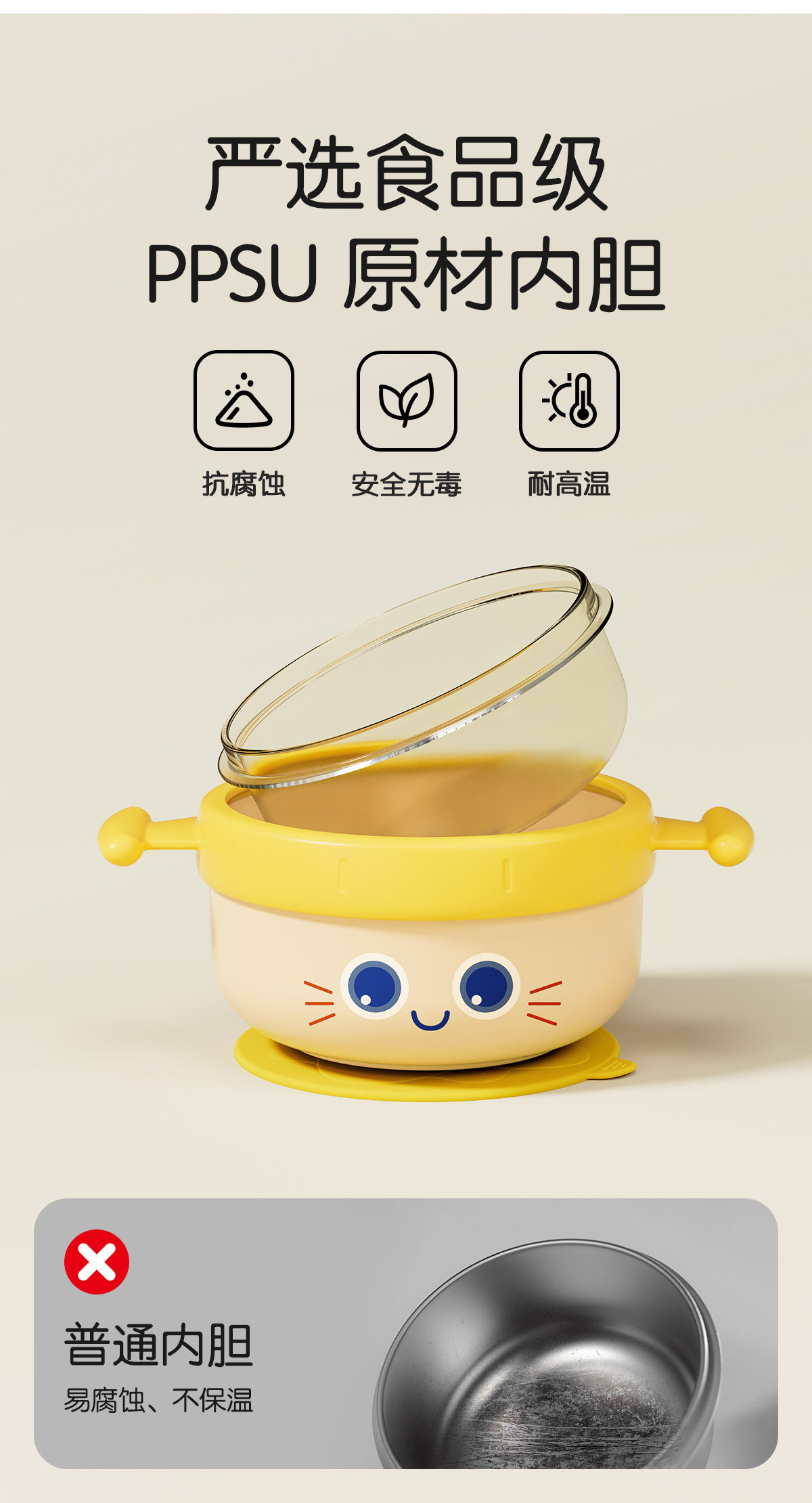 Baby Food Bowl, Special Water-Filled Insulated Bowl for Infants, Children's Rice Noodle Bowl, Ppsu Constant Temperature Bowl with Lid, Children's Tableware