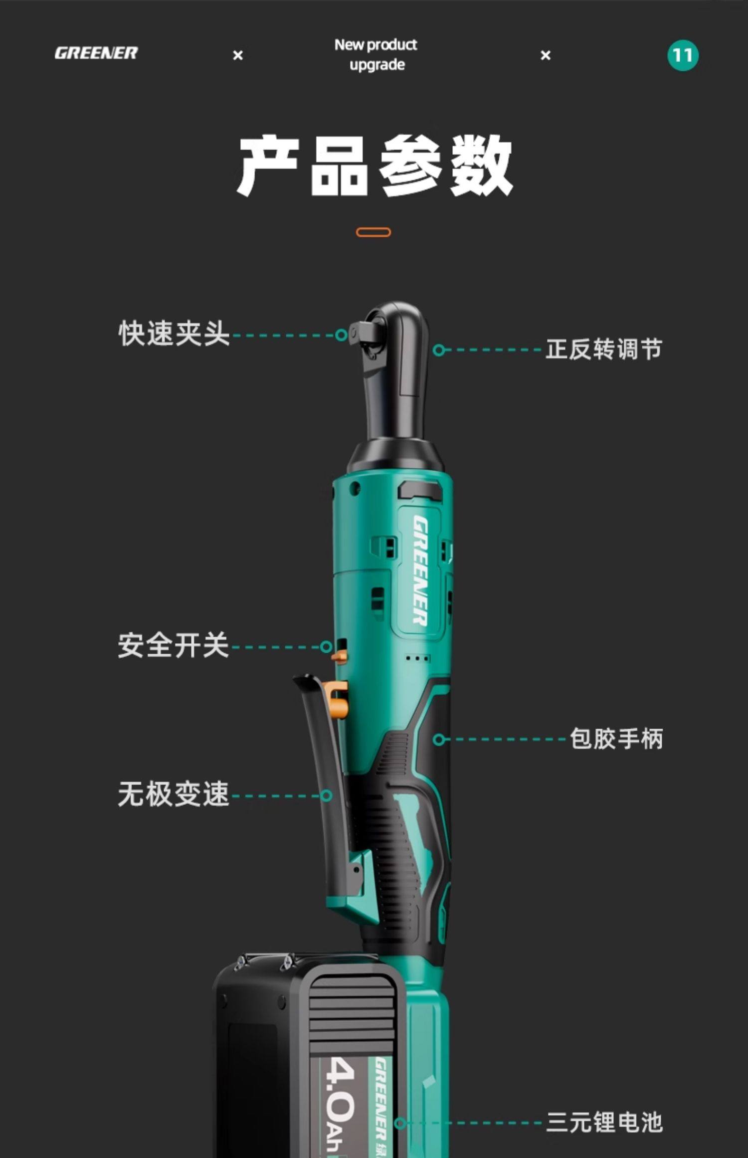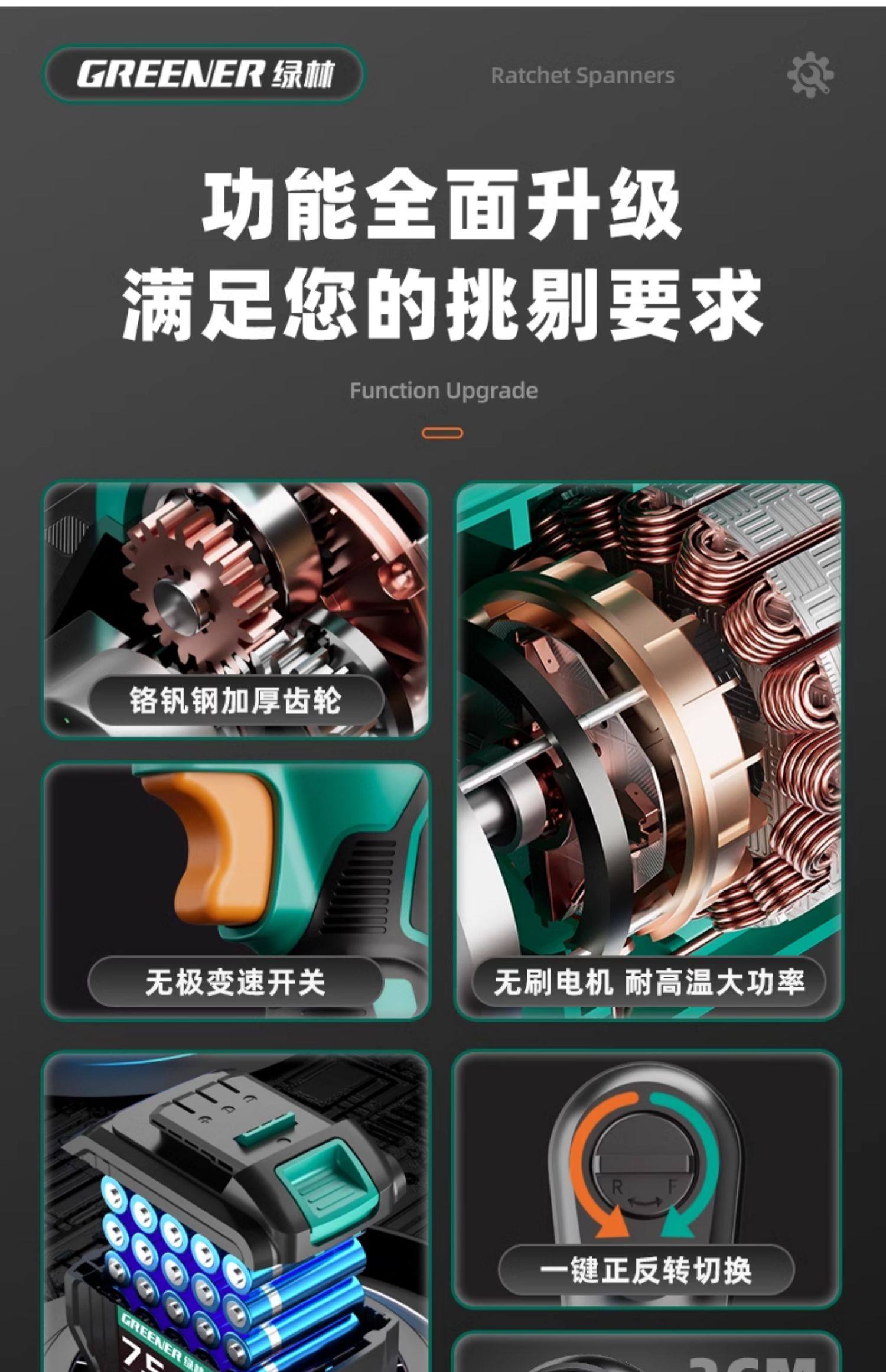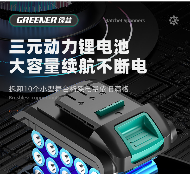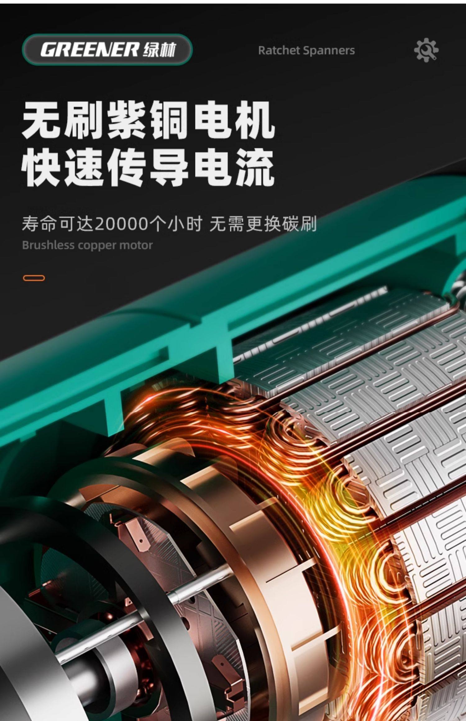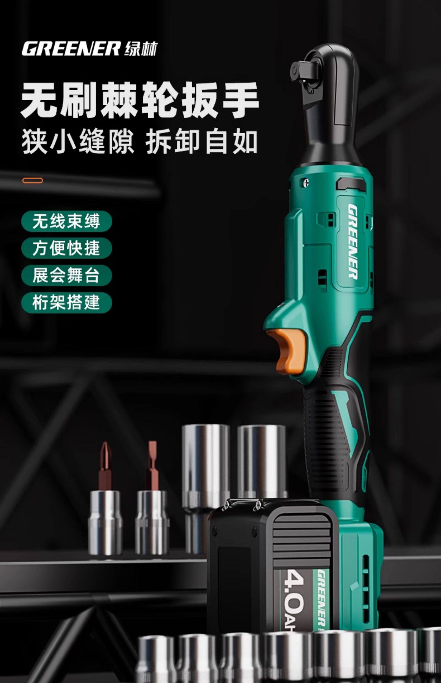 Green Forest Brushless Electric Ratchet Wrench, Right-Angle 90-Degree High-Torque Truss-Specific Small Corner Quick Tool