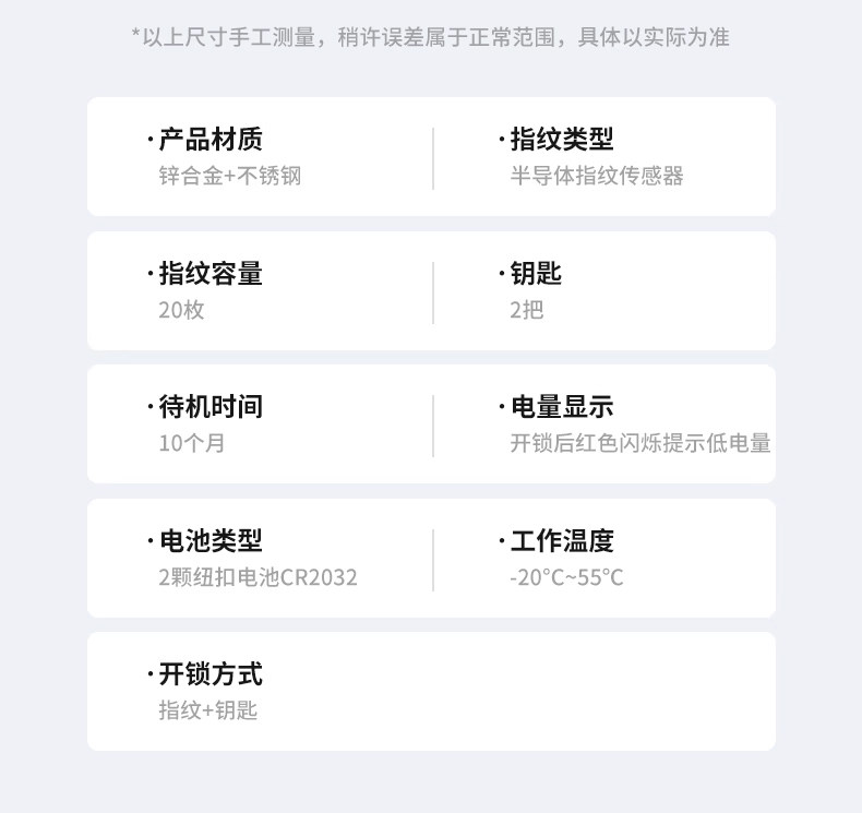 | Unlocking Method | Password,Fingerprint,Bluetooth,Key |