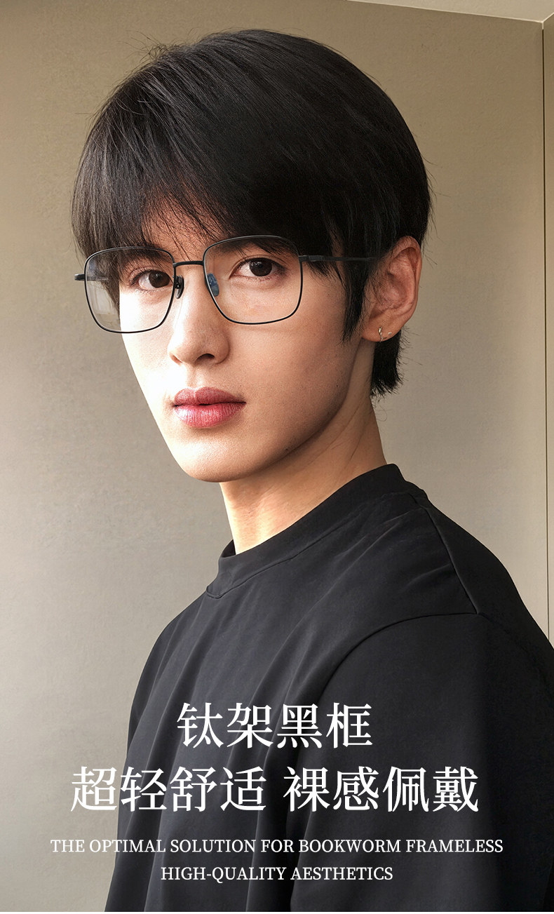 Thin-Framed Black Glasses for Men, Suitable for Nearsightedness and Astigmatism, Professional Online Prescription Glasses, Titanium Frame, High-End Feel