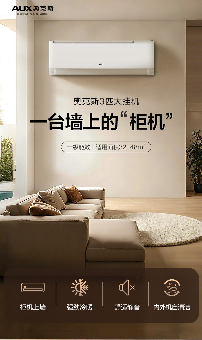 Oaks Air Conditioner 3 Hp First-Class Energy Efficiency Inverter for Home Heating and Cooling, Large Wall-Mounted Unit for Living Room, Official Genuine Flagship Store