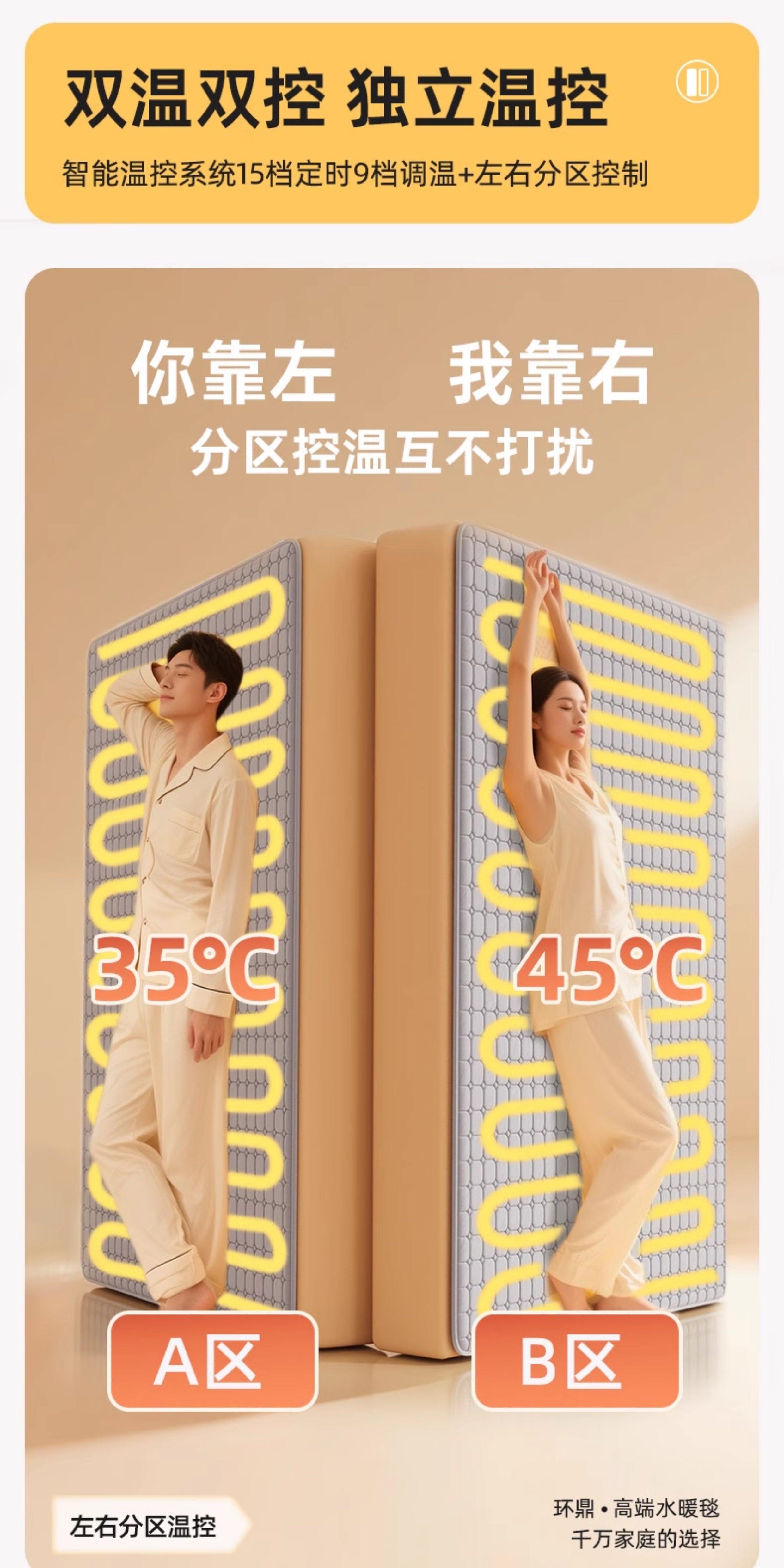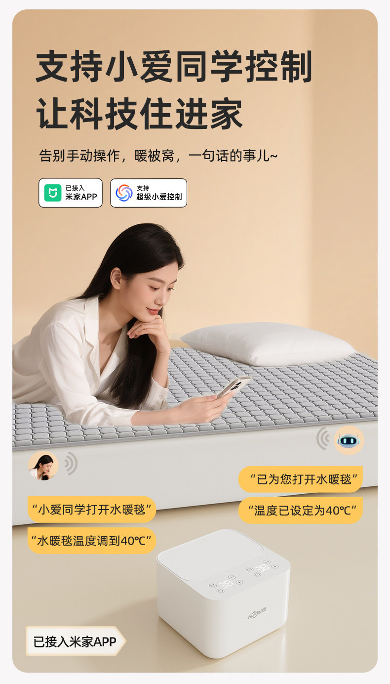 Dual-Temperature Dual-Control Smart Water Heating Blanket with Zone-Based Water Circulation, 2025 New Model, Now Connected to Mijia App