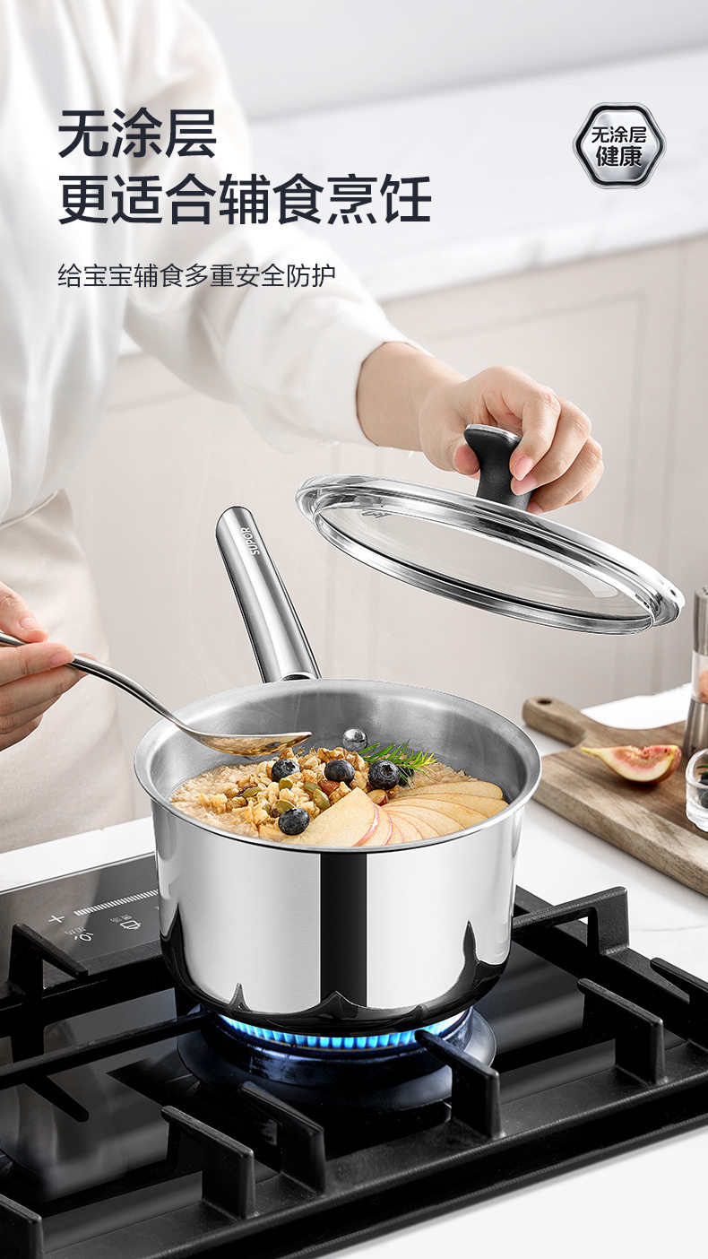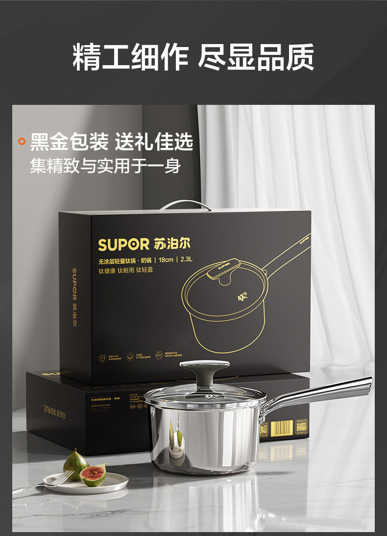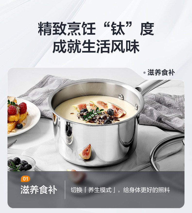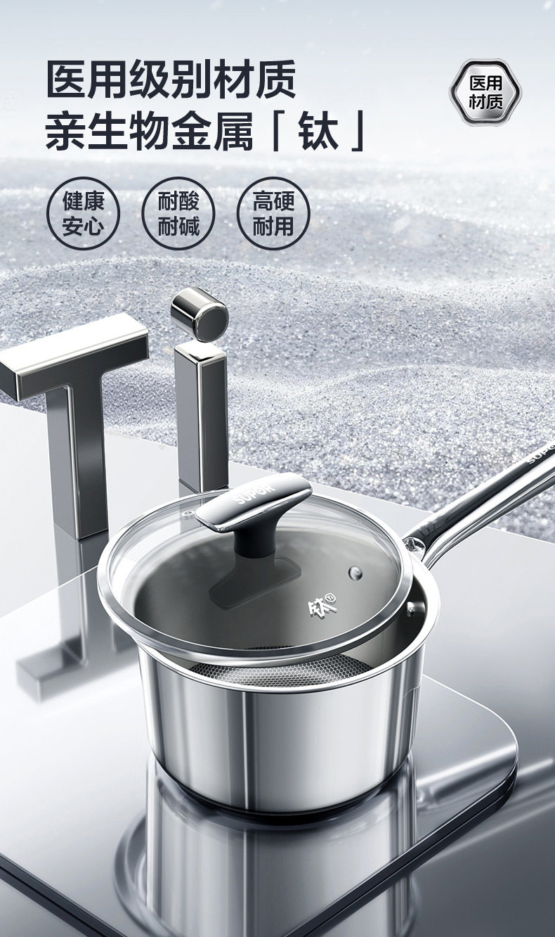 [New Product] Supor Pure Titanium Non-Coated Milk Pot Baby Food Supplement Pot 316L Stainless Steel Small Pot for One Person