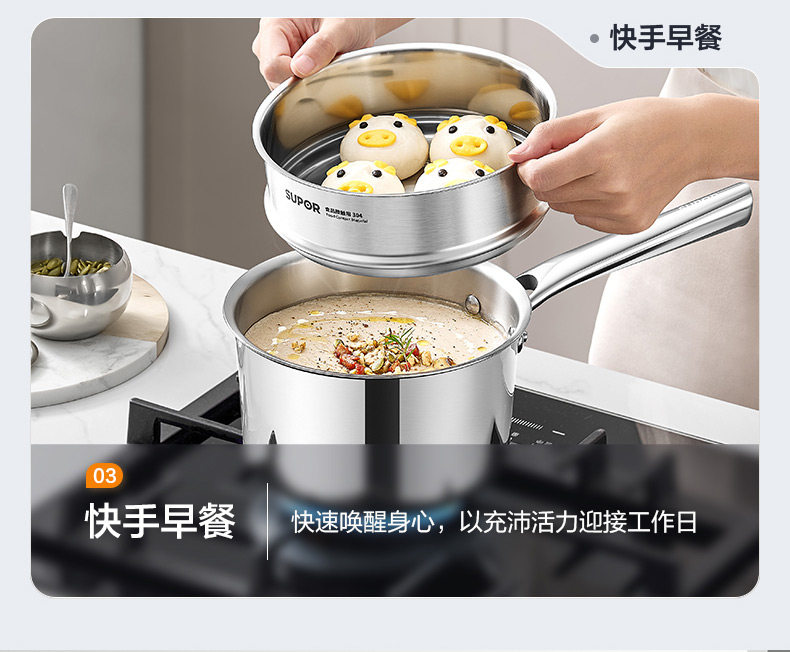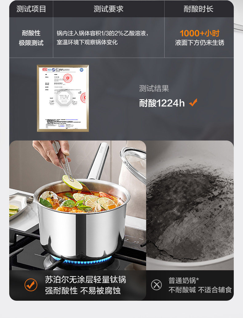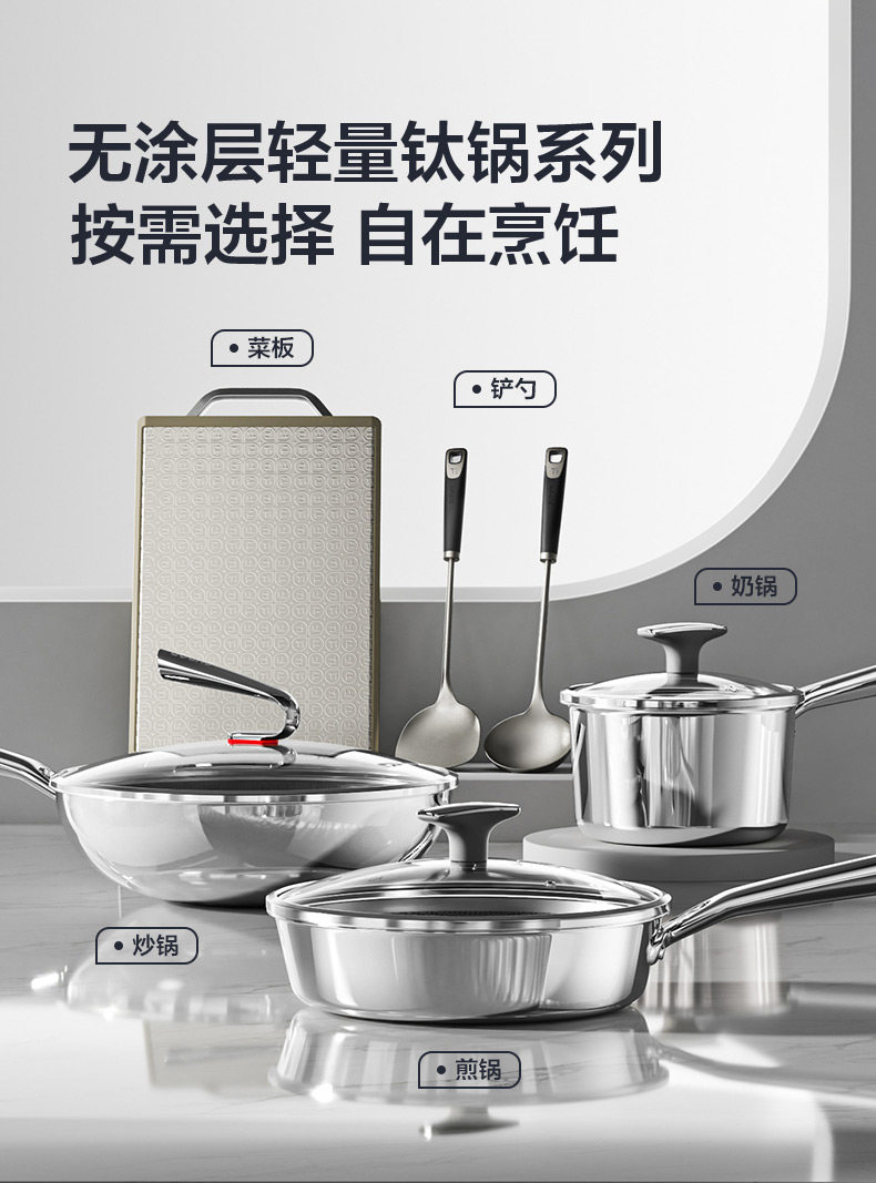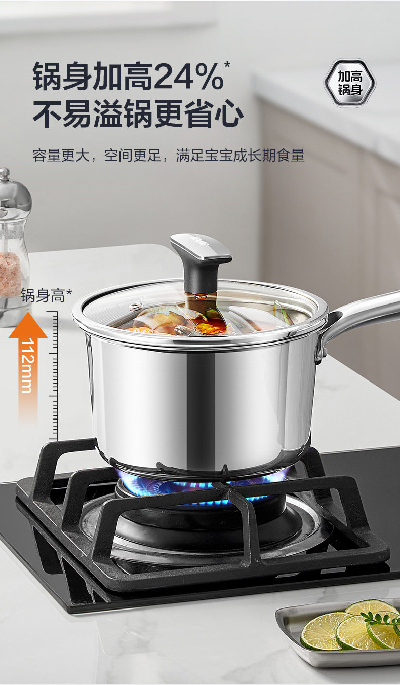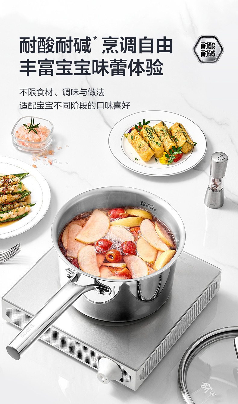[New Product] Supor Pure Titanium Non-Coated Milk Pot Baby Food Supplement Pot 316L Stainless Steel Small Pot for One Person