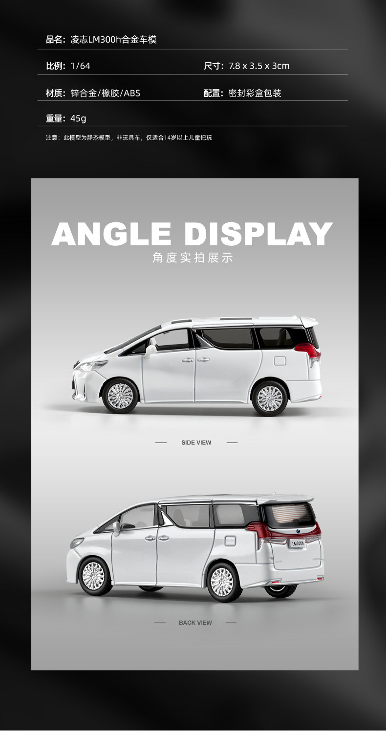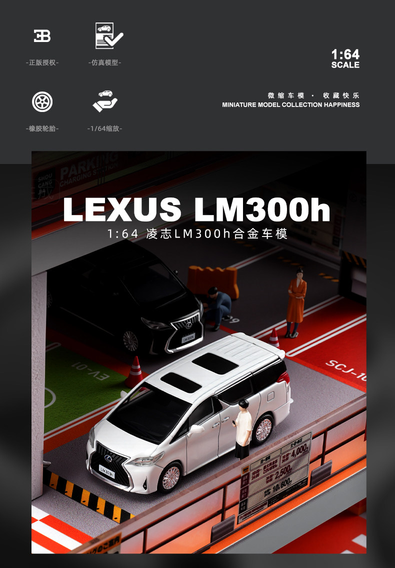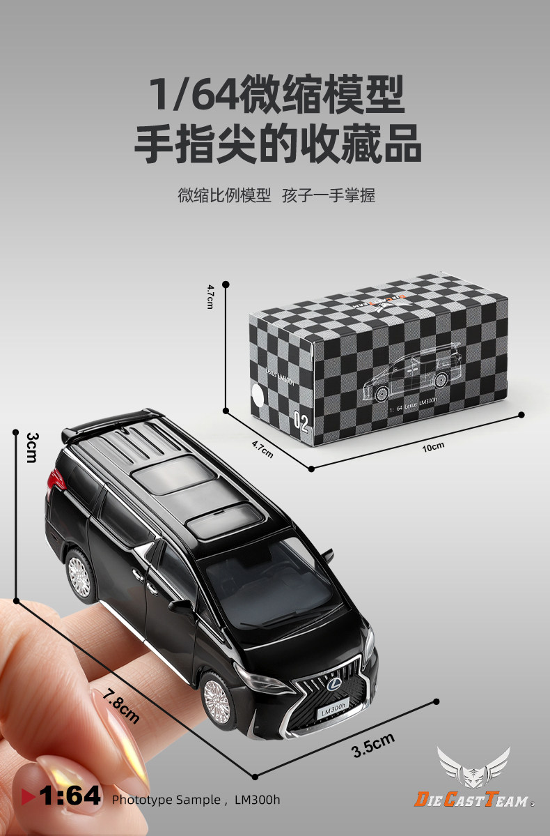 1:64 Lexus Lm300H Mpv Business Car Alloy Small Scale Car Model Shock Absorber Collectible Ornament