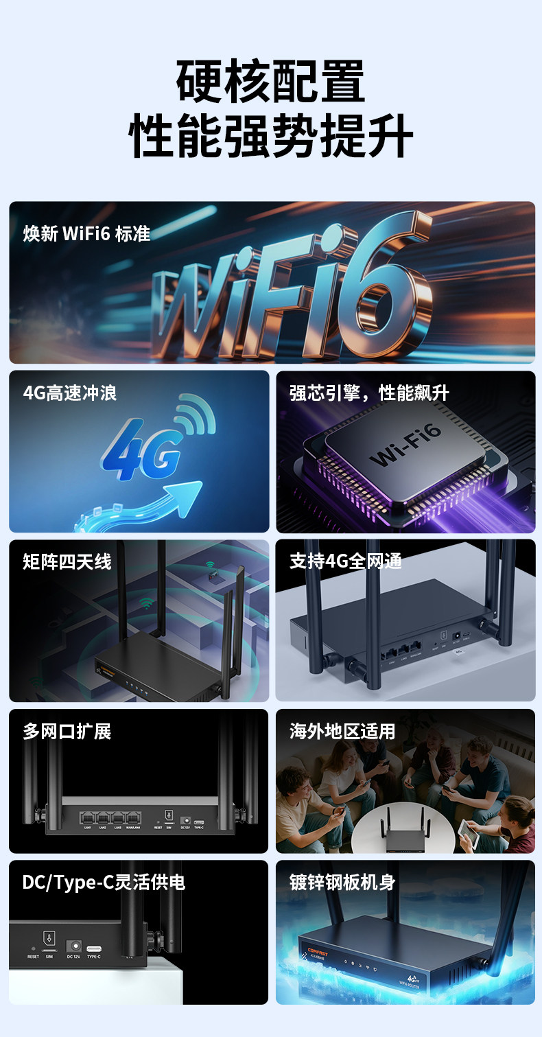 Comfast Industrial-Grade 4g Sim Card Router Wifi6 Free Sim Card Insertion Lte Networking 4g to Wifi to Wired No Need for Broadband Wall-Penetrating Sim Card Cat4 Full Network International Network Cf-E15