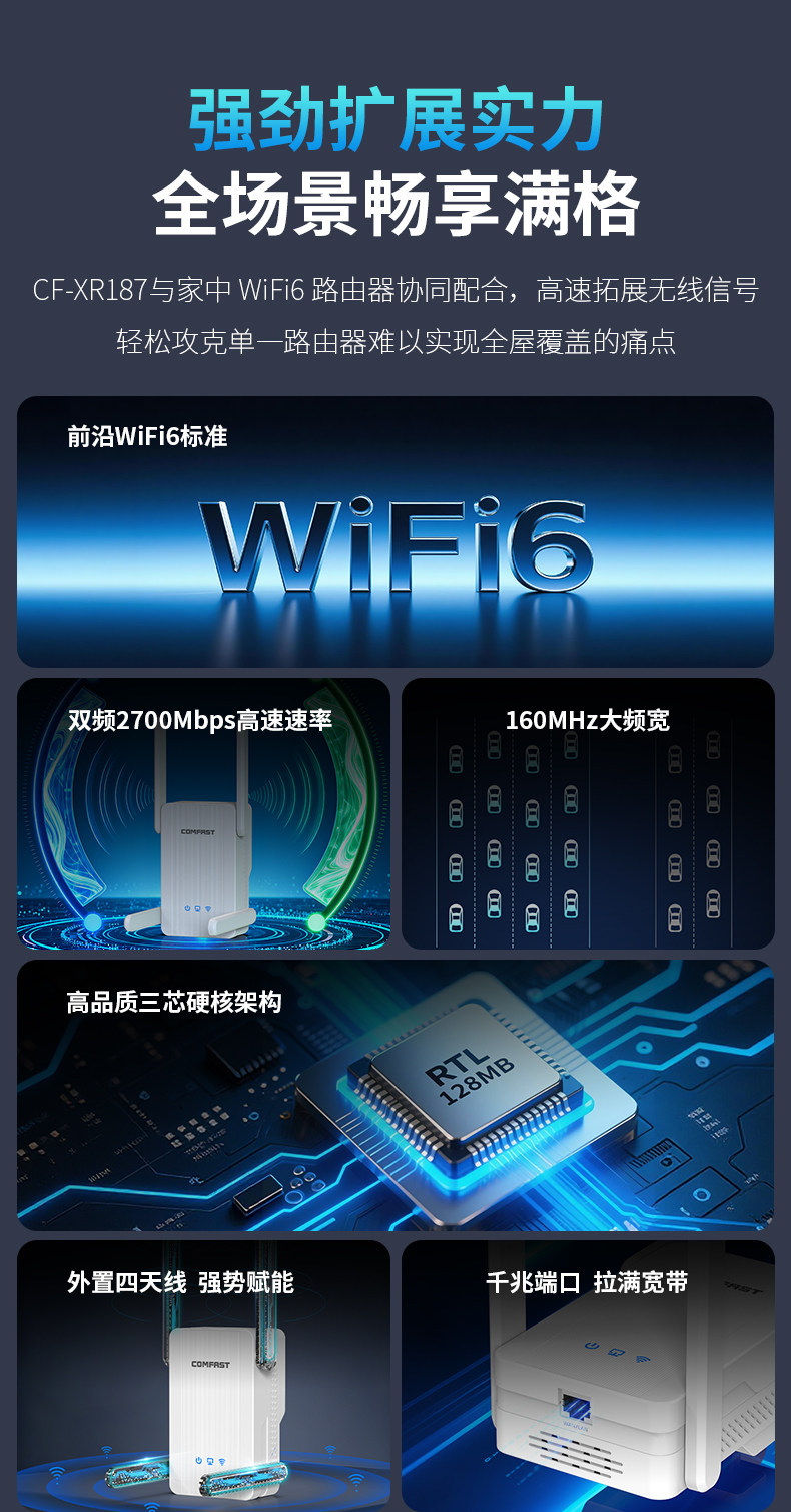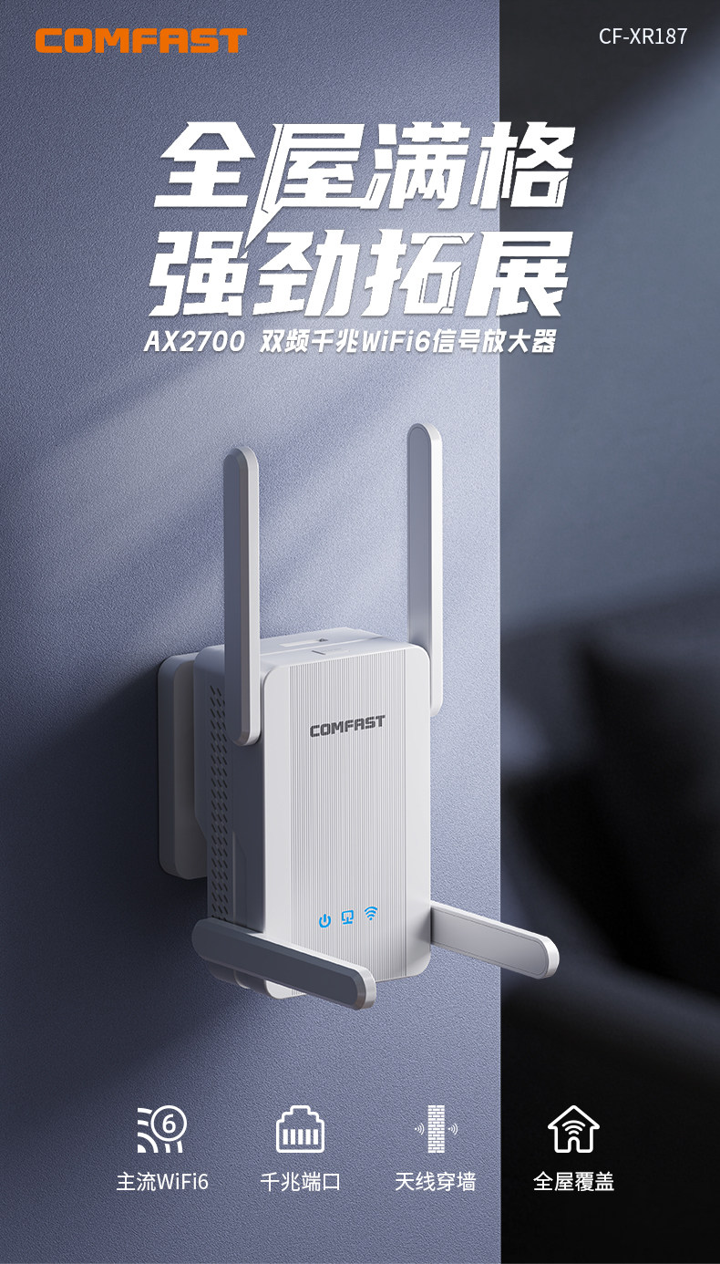 [Comfast]Wifi 6 Signal Extender Wireless Network Signal Booster Amplifier 5g Dual-Band Gigabit High-Speed Wall-Penetrating Repeater Home Long-Distance Routing Extension Bridge