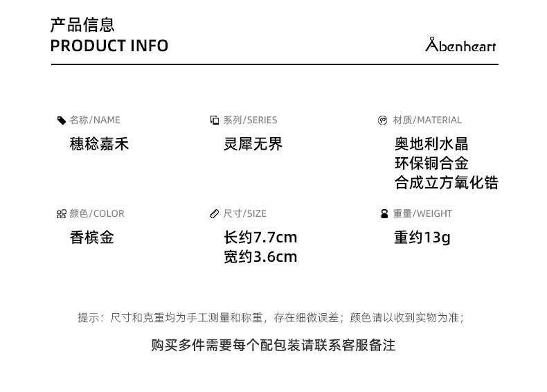 Abenheart Danish Wheat Spike Brooch Crystal Wheat Spike High-End Exquisite Fashion Brooch with a Unique Design