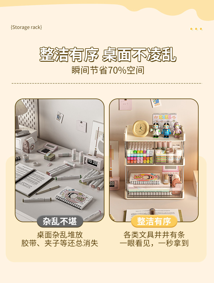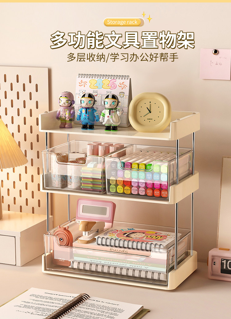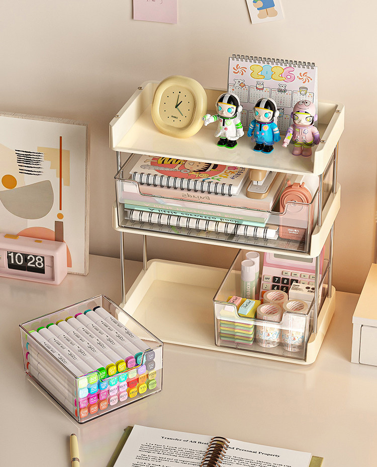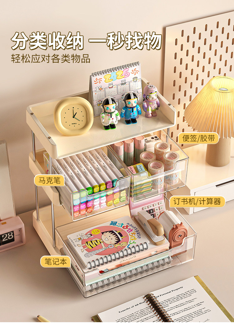 Desktop Stationery Storage Box Drawer-Type Student Desk Organizer Office Multi-Functional Layered Stationery Storage Rack