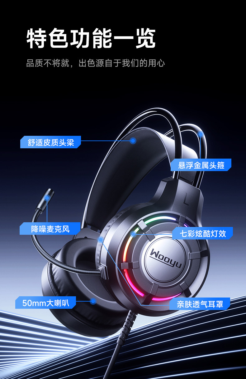 Desktop Computer Headset with Microphone, 2-in-1, Dedicated for E-Sports Gaming, USB Wired, New Model, 20% National Subsidy