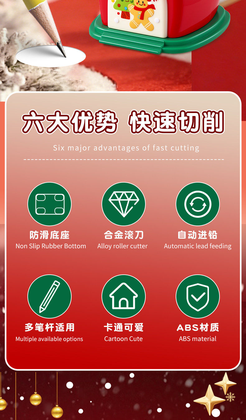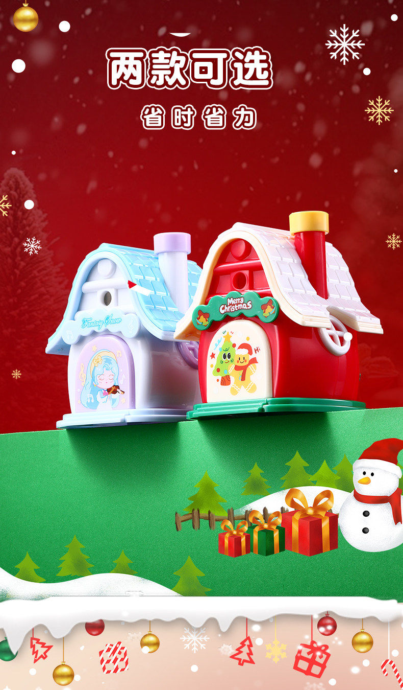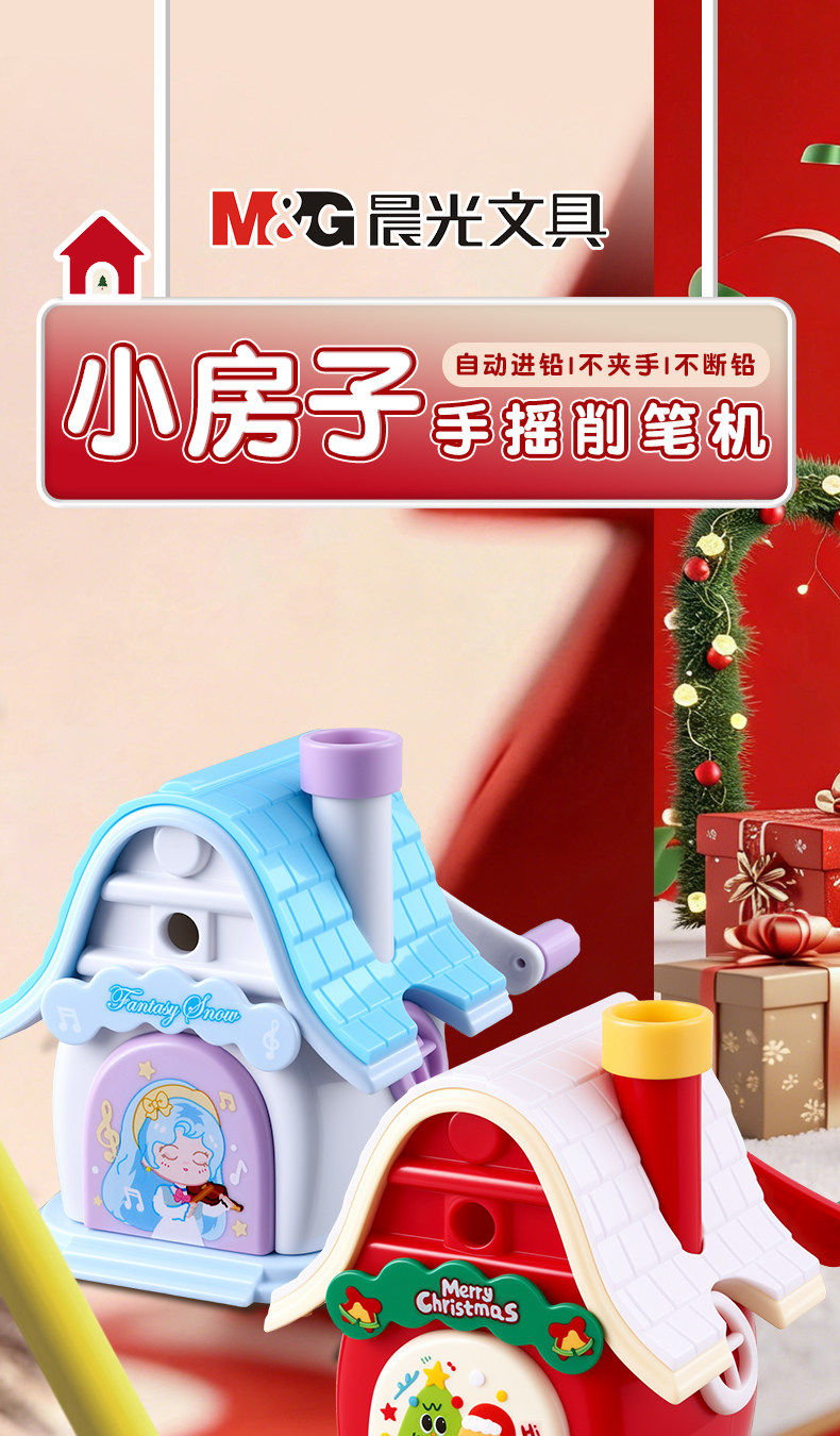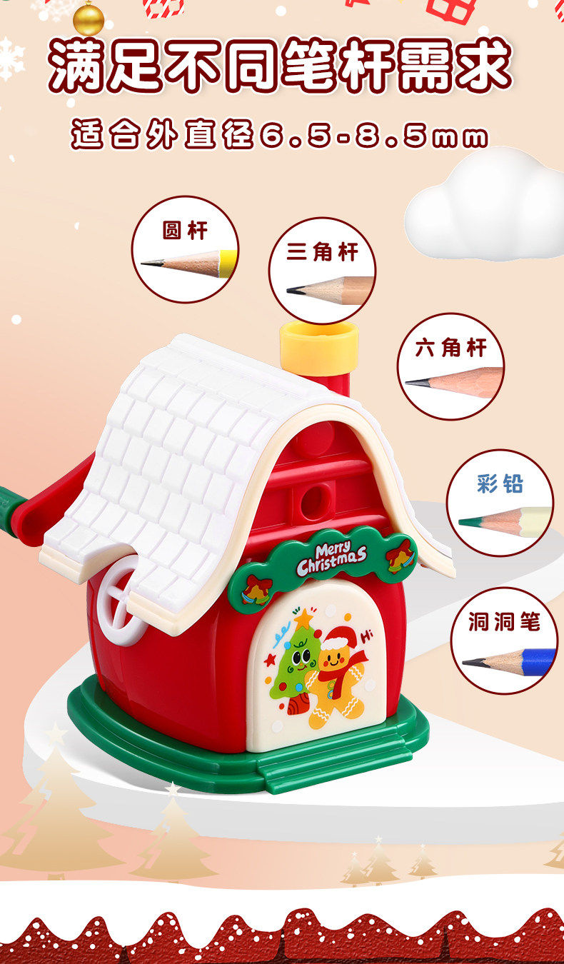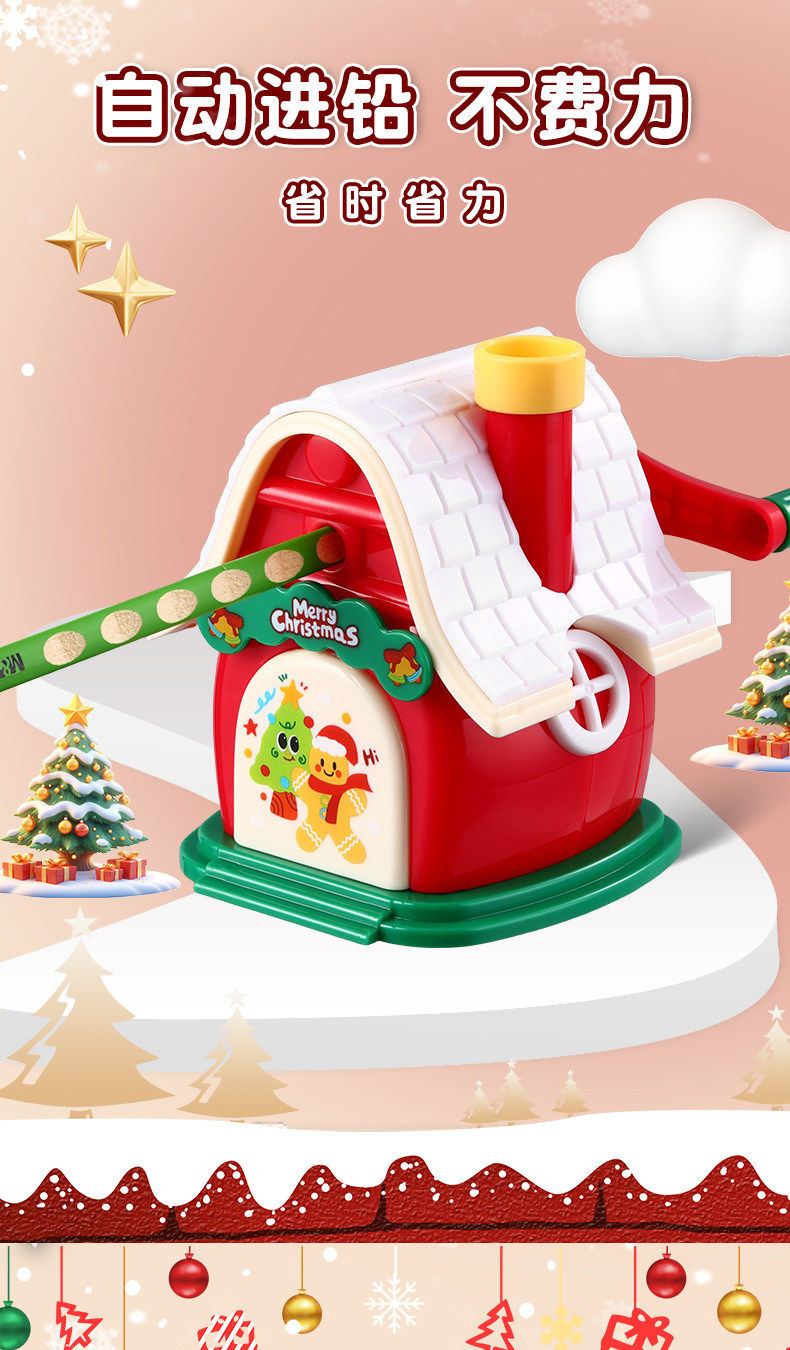 Morning Light Christmas Cabin Pencil Sharpener, Special for Elementary School Students, Hand-Cranked Pencil Sharpener, Automatic Pencil Feeder for Art Students, Pencil Sharpener for Kindergarten Children, Manual Pencil Sharpener
