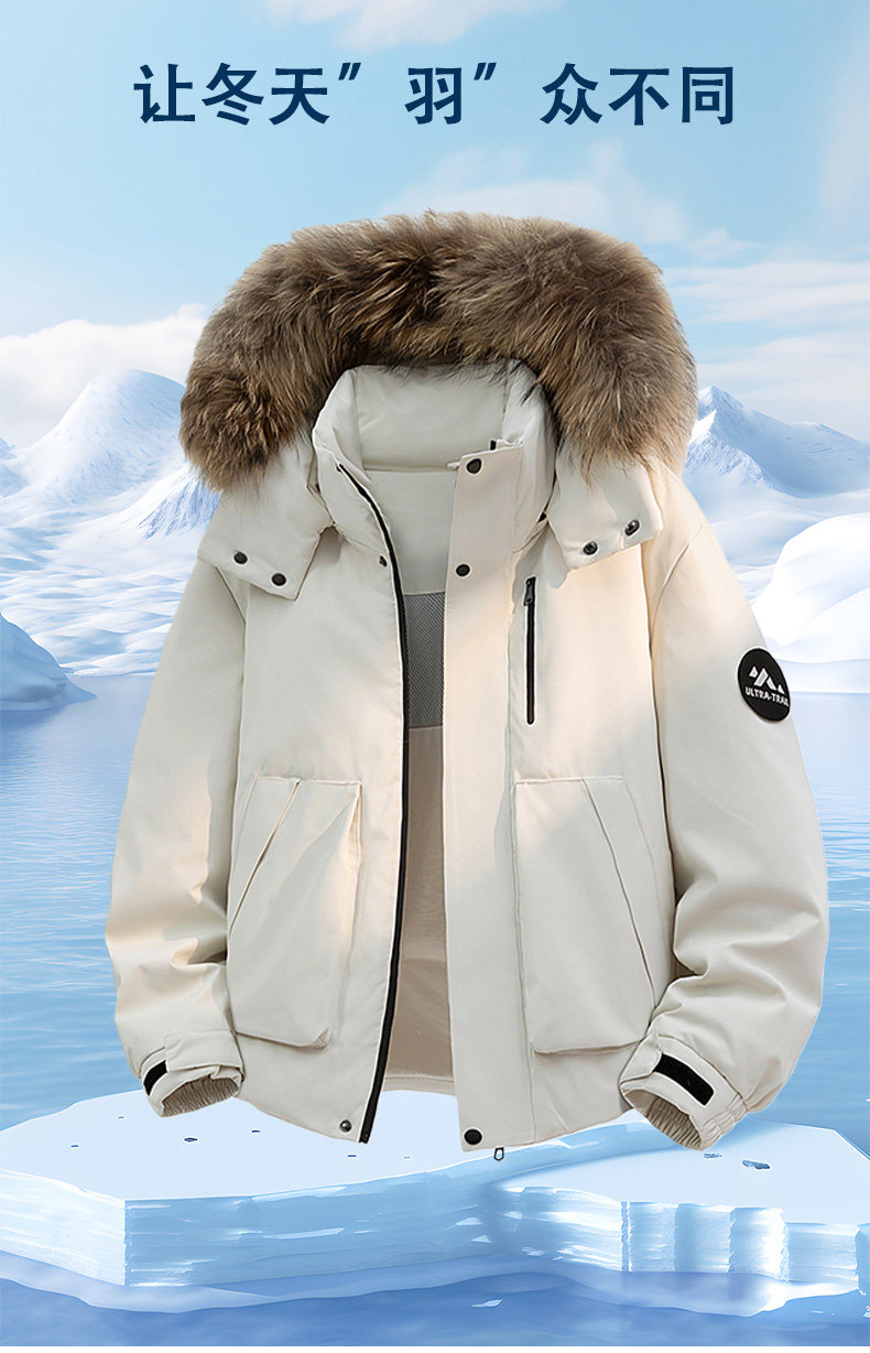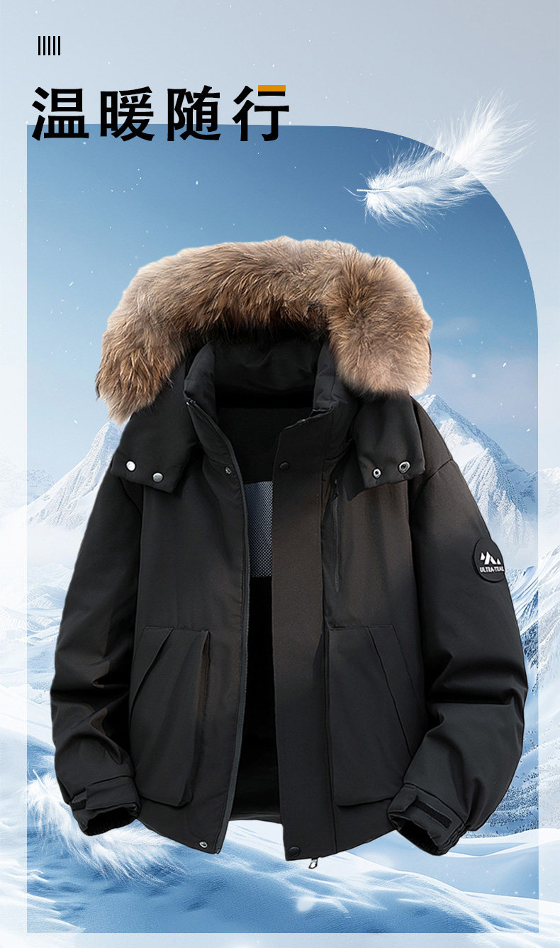 Geniolamode Fur Collar Hooded Workwear down Jacket Men's Winter New Warm and Heat-Retaining Casual Jacket