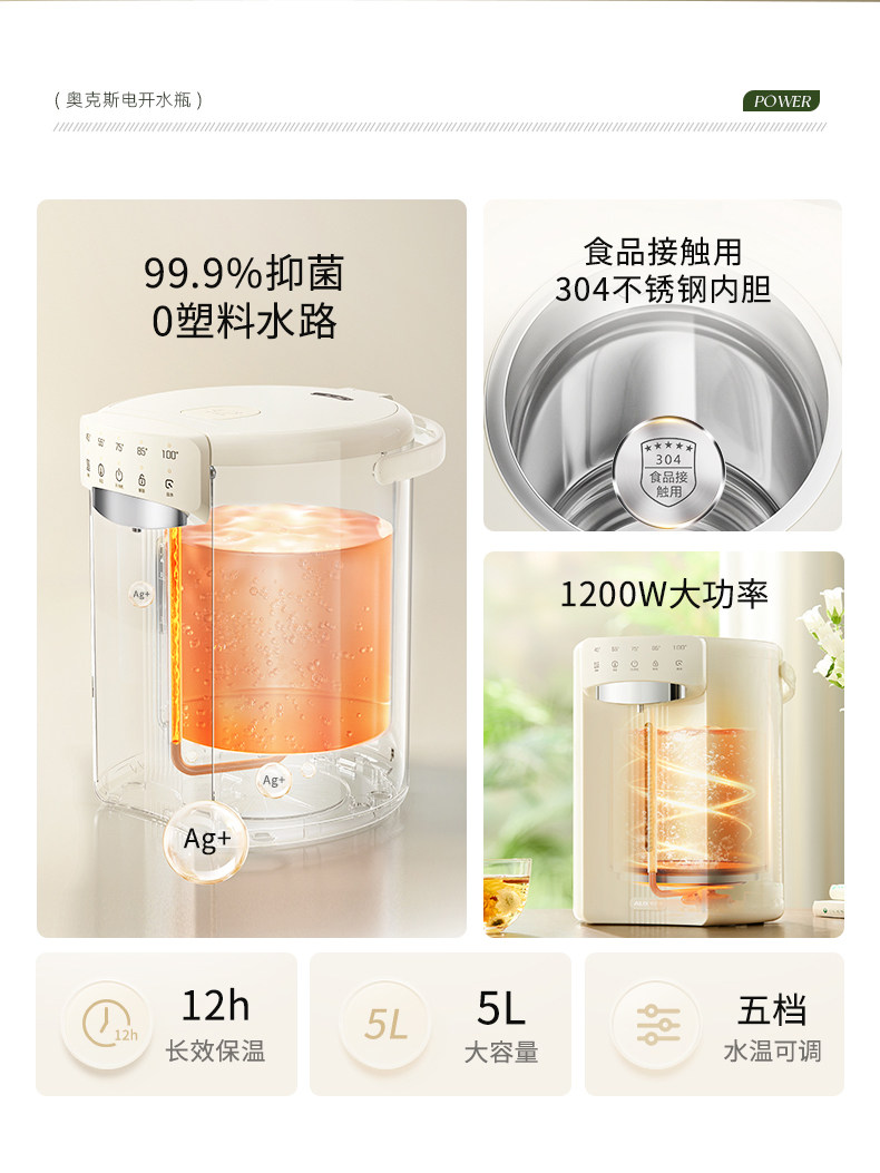 Oaks Constant Temperature Water Kettle 5L Large Capacity Electric Water Bottle Water Dispenser Intelligent Automatic Water Boiling Kettle with Integrated Insulation