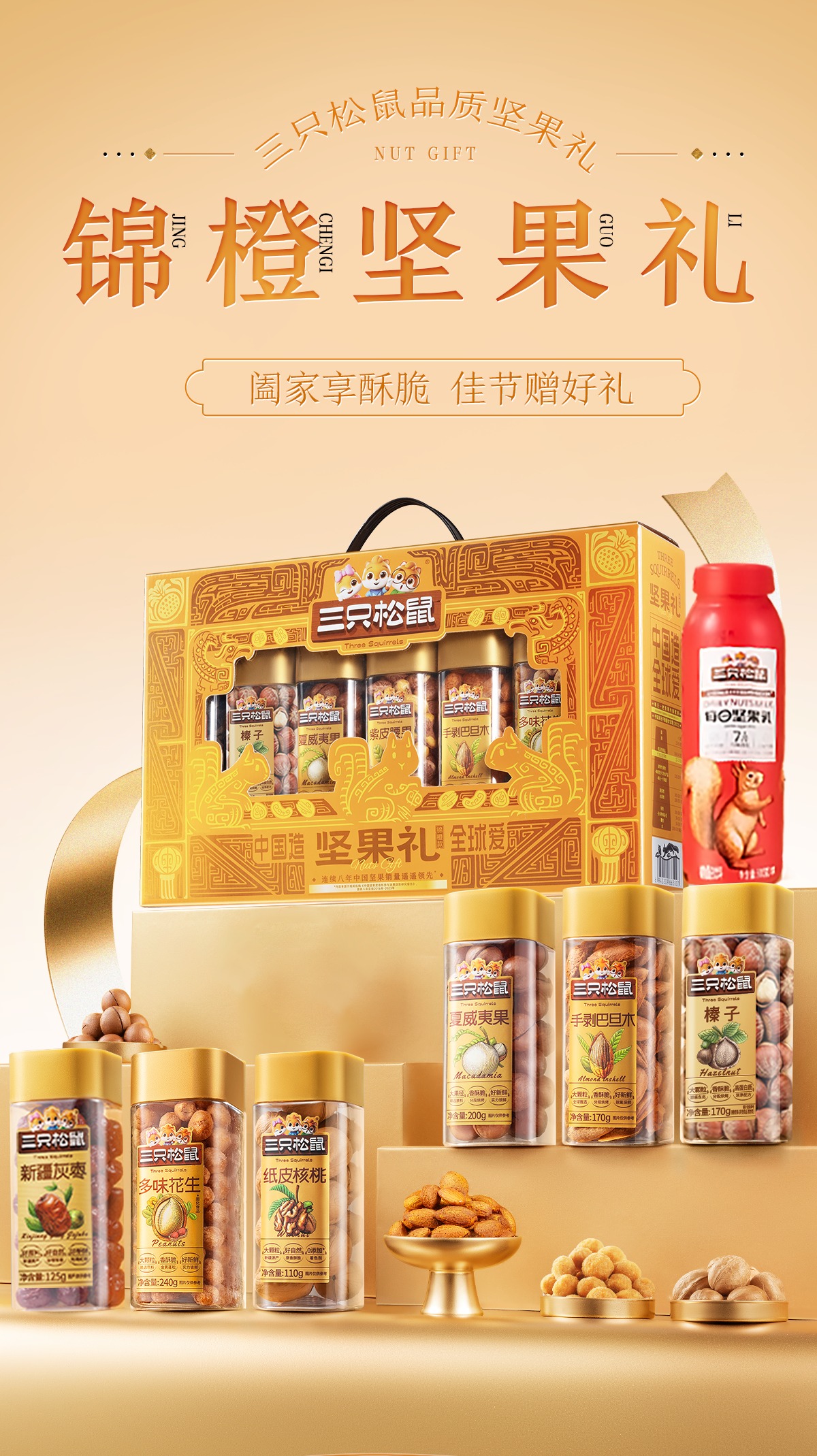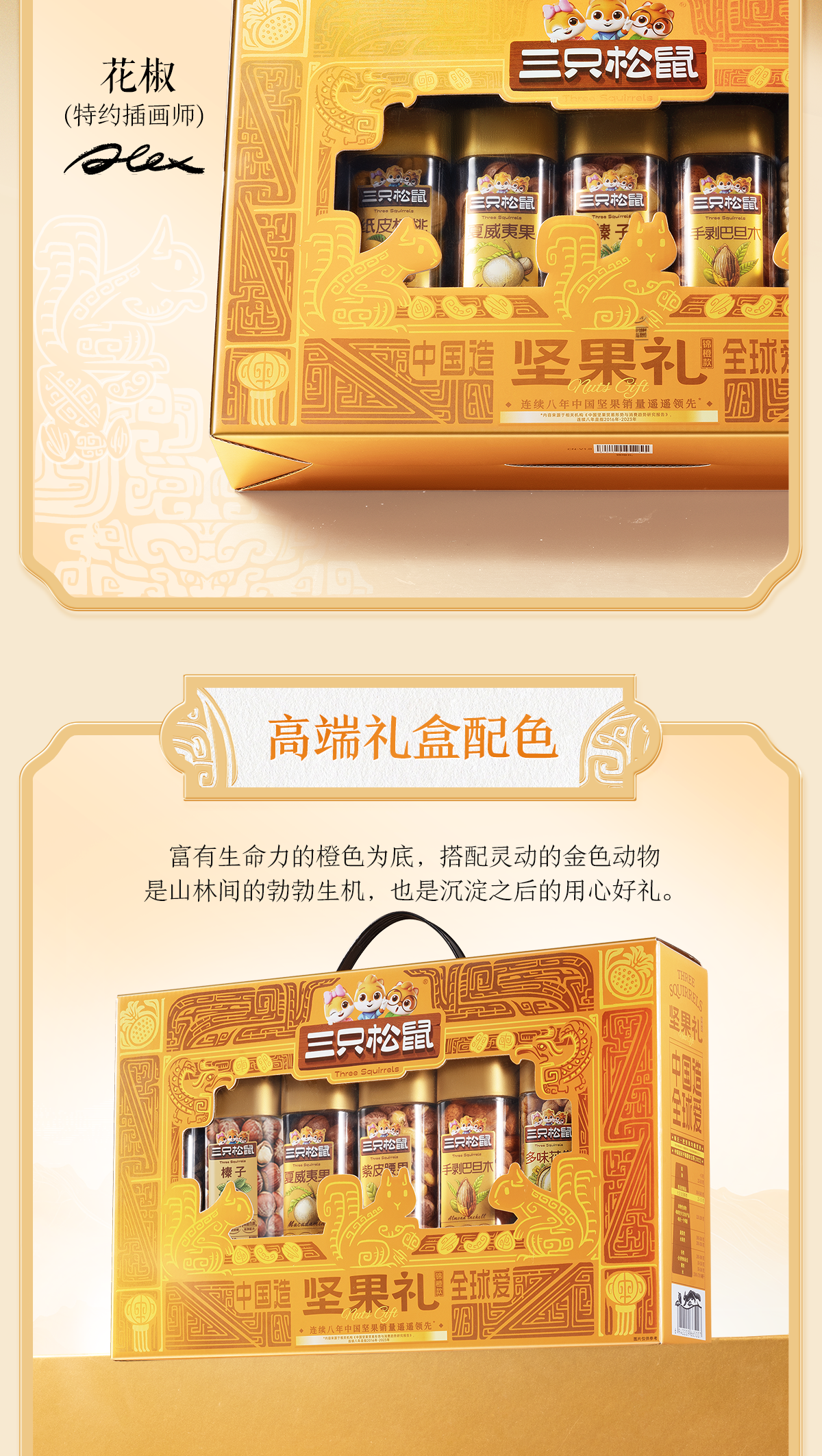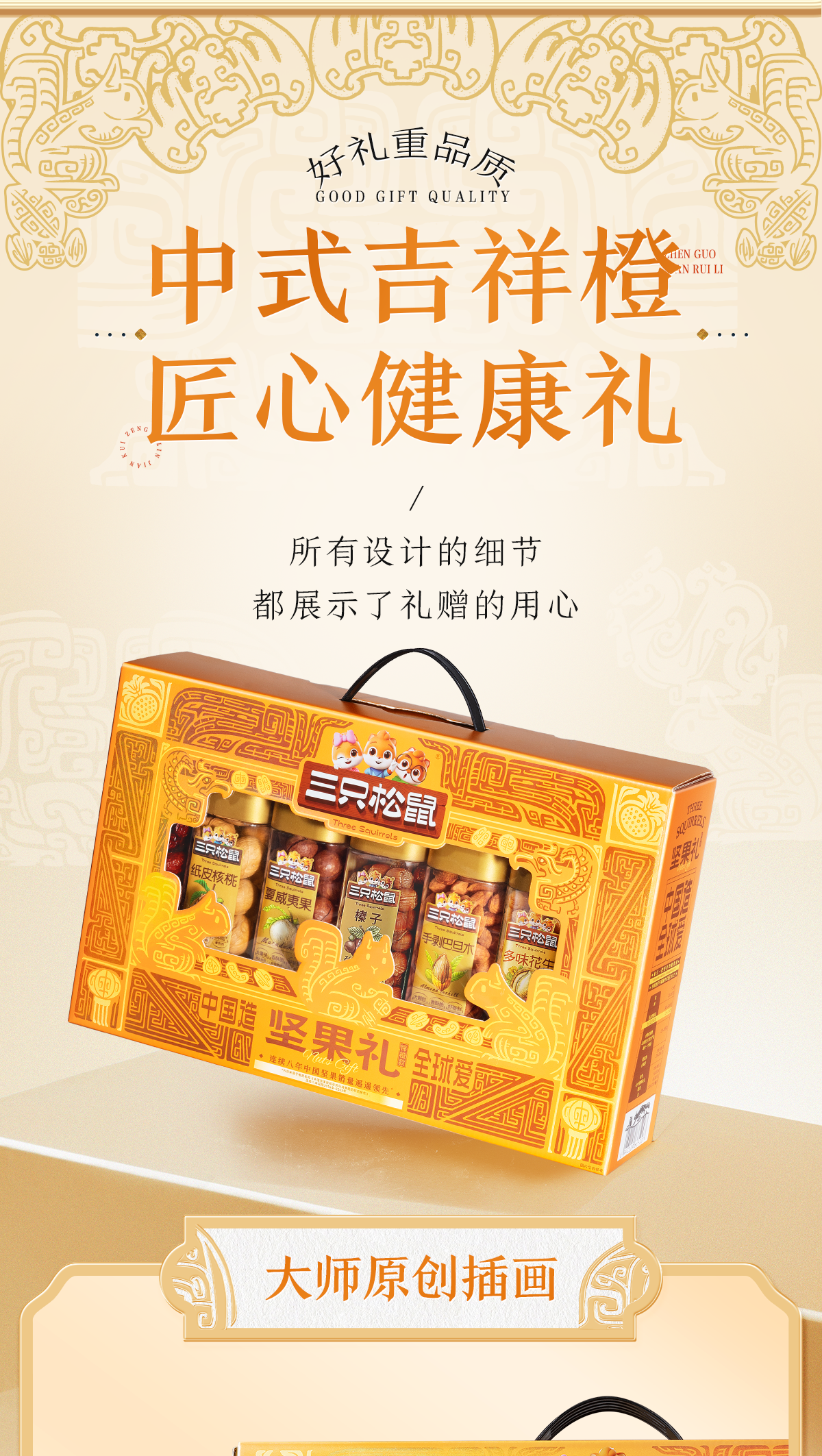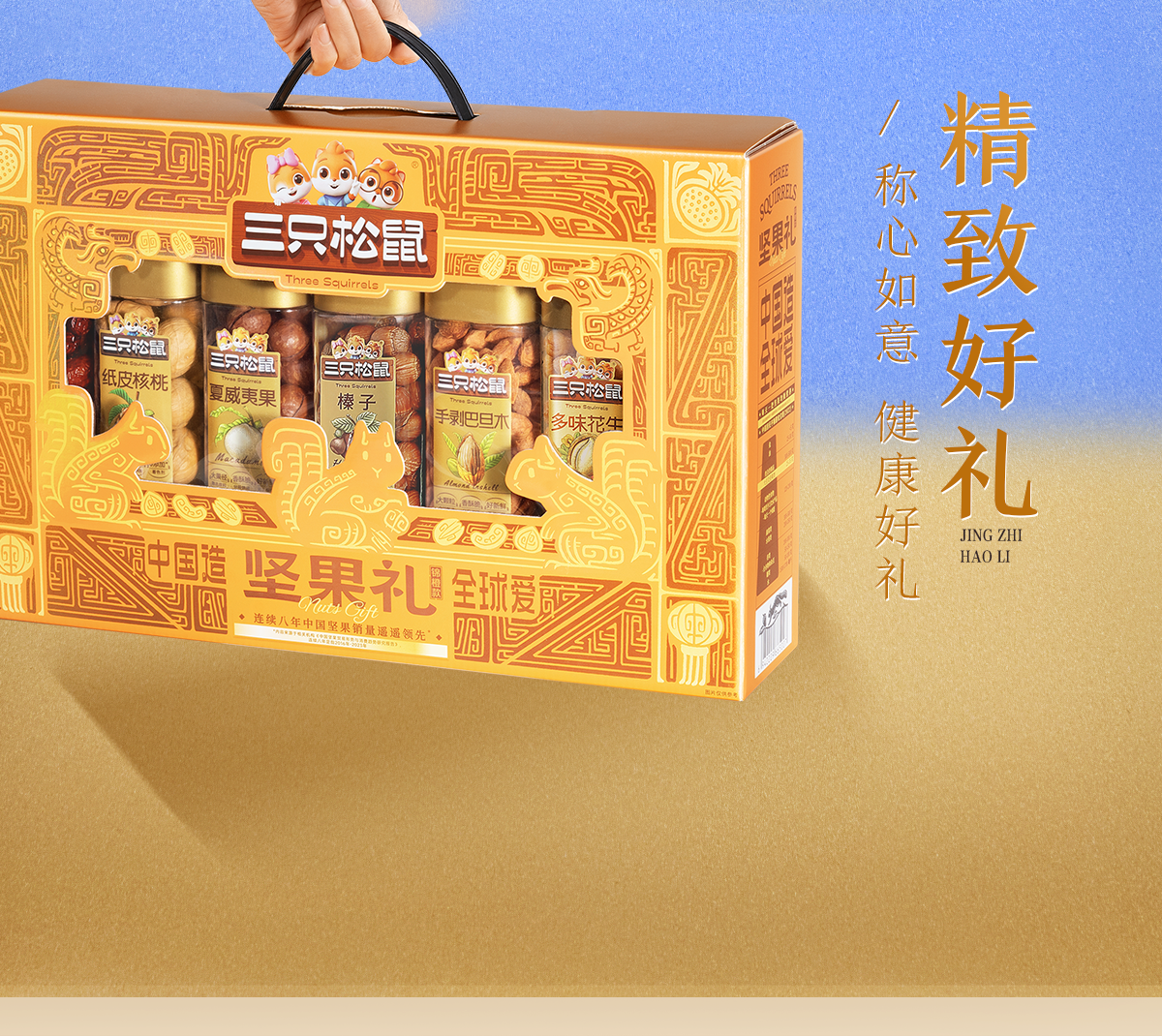 Three Squirrels Nut Gift Box, Orange Edition, 1315g/7 Cans, a Healthy Snack Gift Pack for Elders, New Year's Gift
