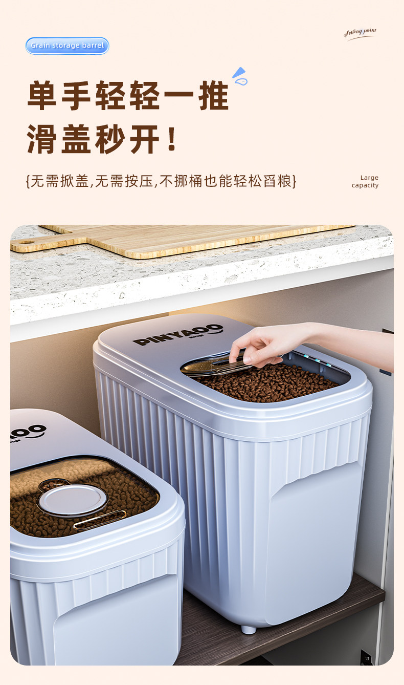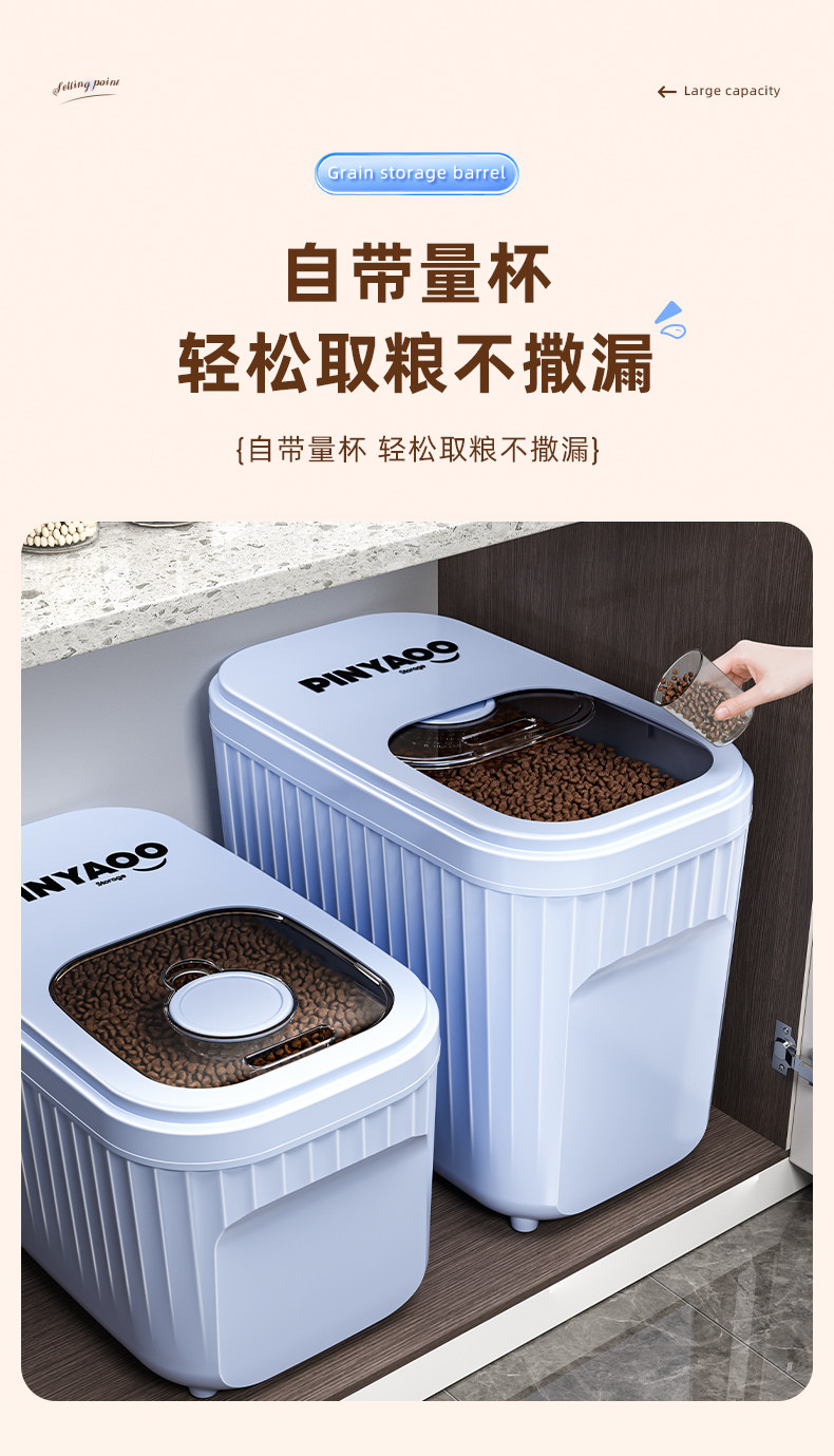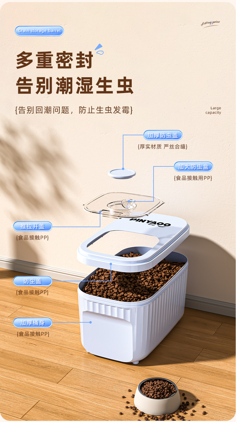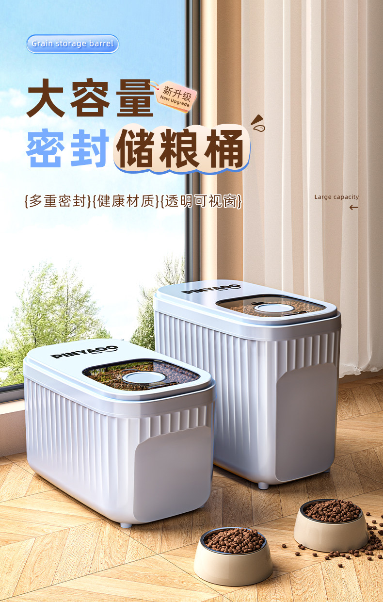 Cat Food Storage Bucket, Dog Food Sealed Bucket, Household Moisture-Proof Pet Food Box, Large-Capacity Food Storage Bucket, Storage Box
