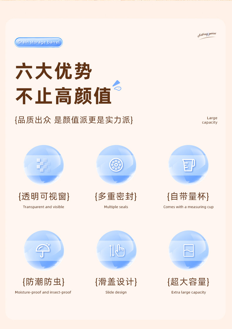 | Color Classification | Medium Silver Ion Antibacterial Container [Approx. 2-3kg Grain Capacity] with Desiccant + Free Measuring Cup,Large Silver Ion Antibacterial Container [Approx. 4-6kg Grain Capacity] with Desiccant + Free Measuring Cup,Extra-Large Silver Ion Antibacterial [Approx. 6-9kg Grain Capacity] with Desiccant Box + Free Measuring Cup,Extra-Large Silver Ion Antibacterial [Approx. 10-15kg Grain Capacity] with Desiccant Box + Free Special Measuring Cup |