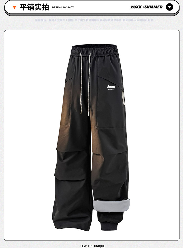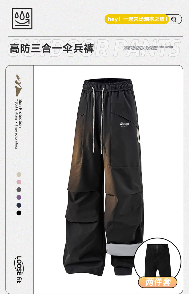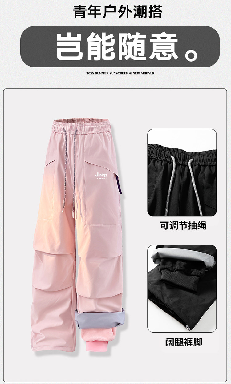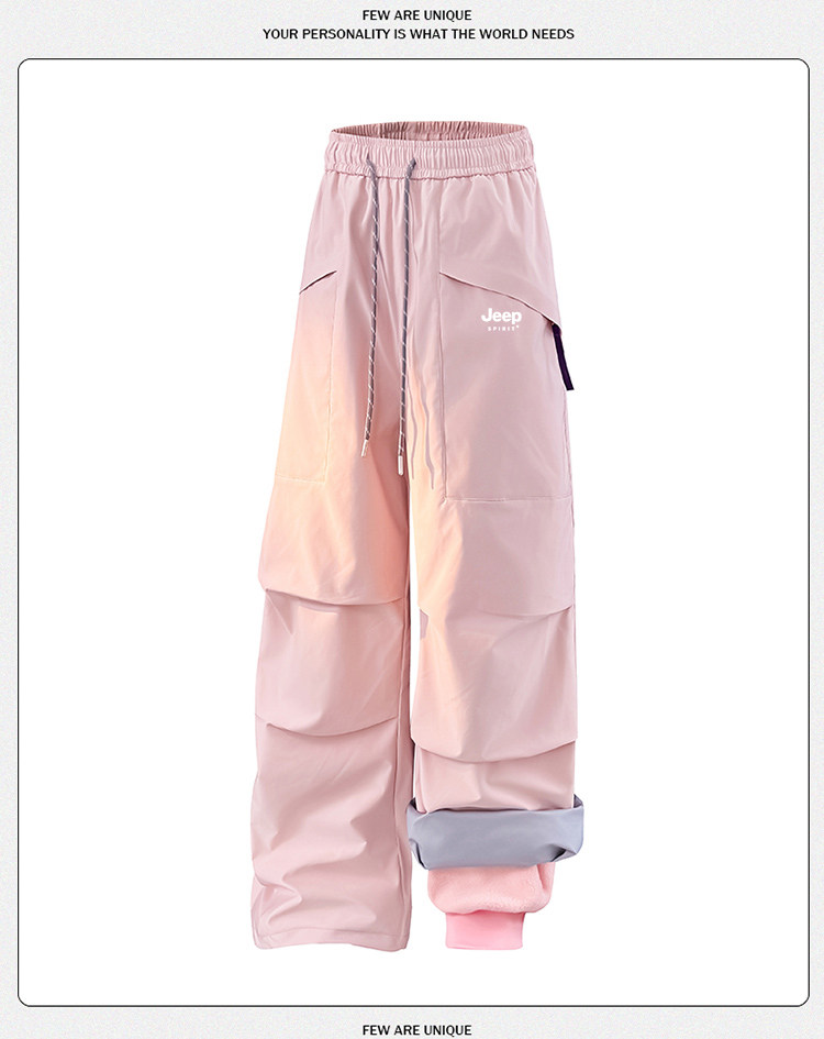 Jeep Pink Softshell Pants for Women, Autumn and Winter Fleece-Lined 3-in-1 Paratrooper Pants, Windproof and Waterproof, Suitable for Hiking, Skiing, and Workwear
