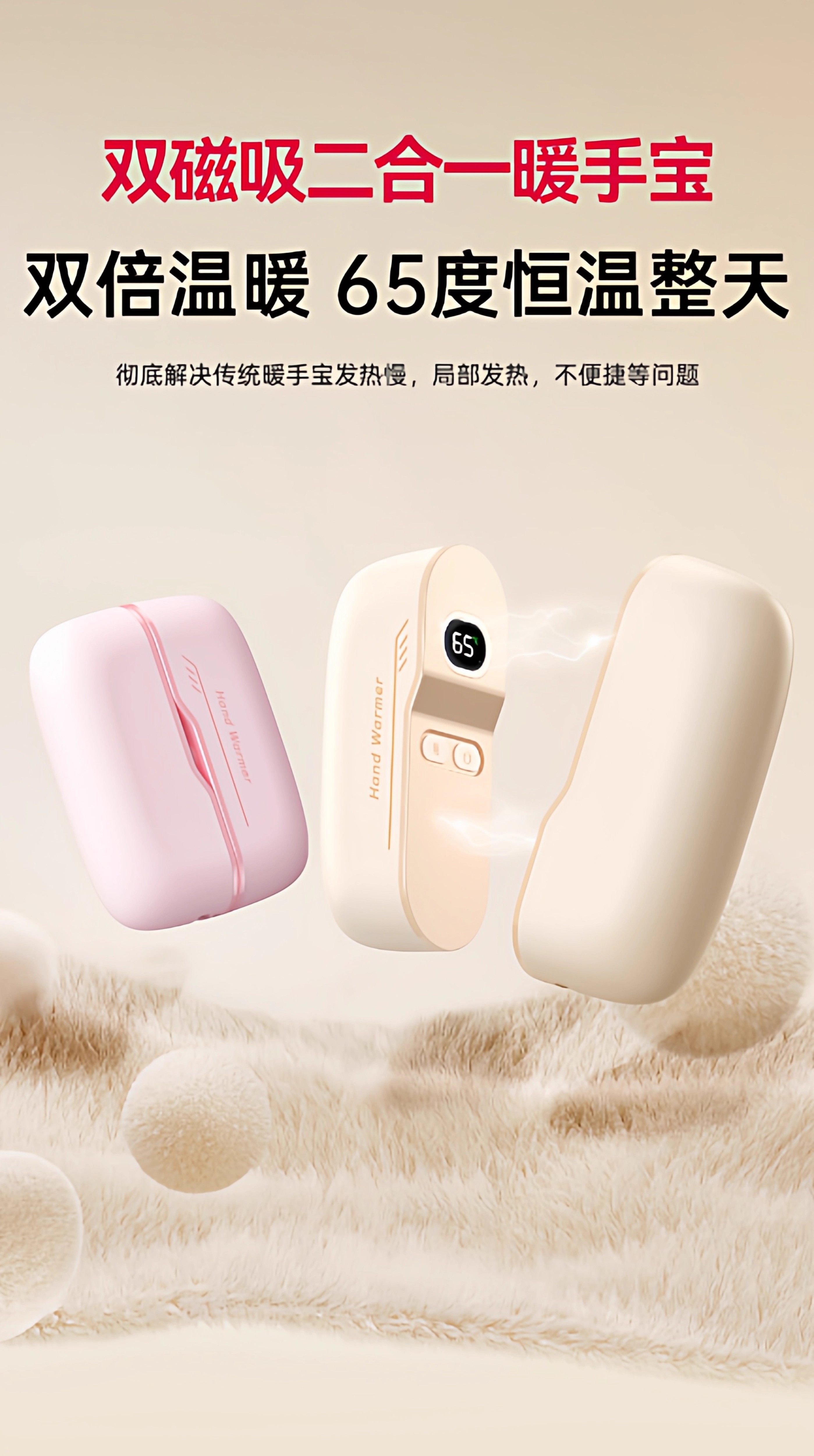 3C Certified] 2025 New Model Rechargeable Hand Warmer 2-in-1 Magnetic Hand Warmer Self-Heating Explosion-Proof Gift for Girls Student Hot Water Bottle USB Portable Winter Heating Device
