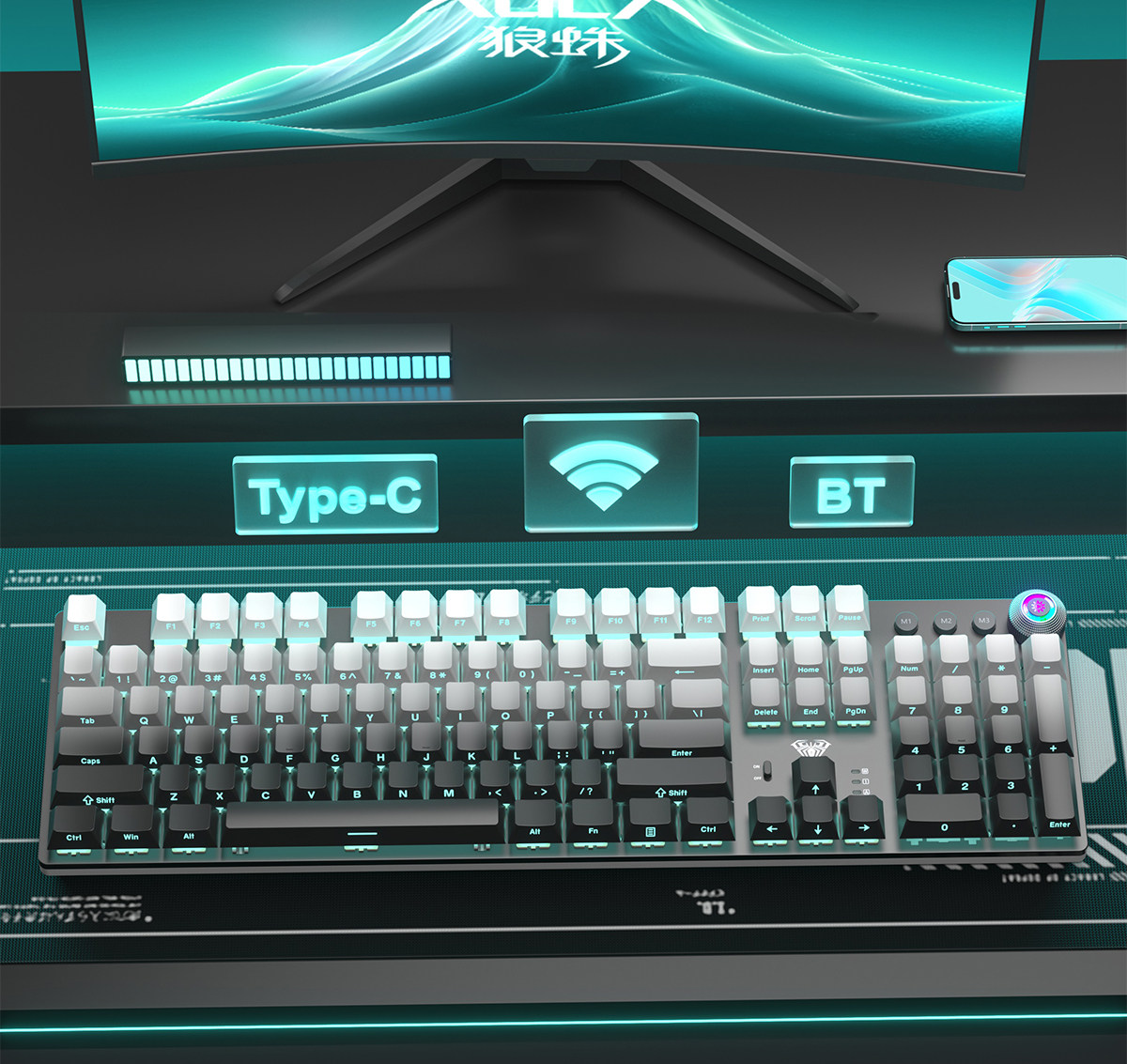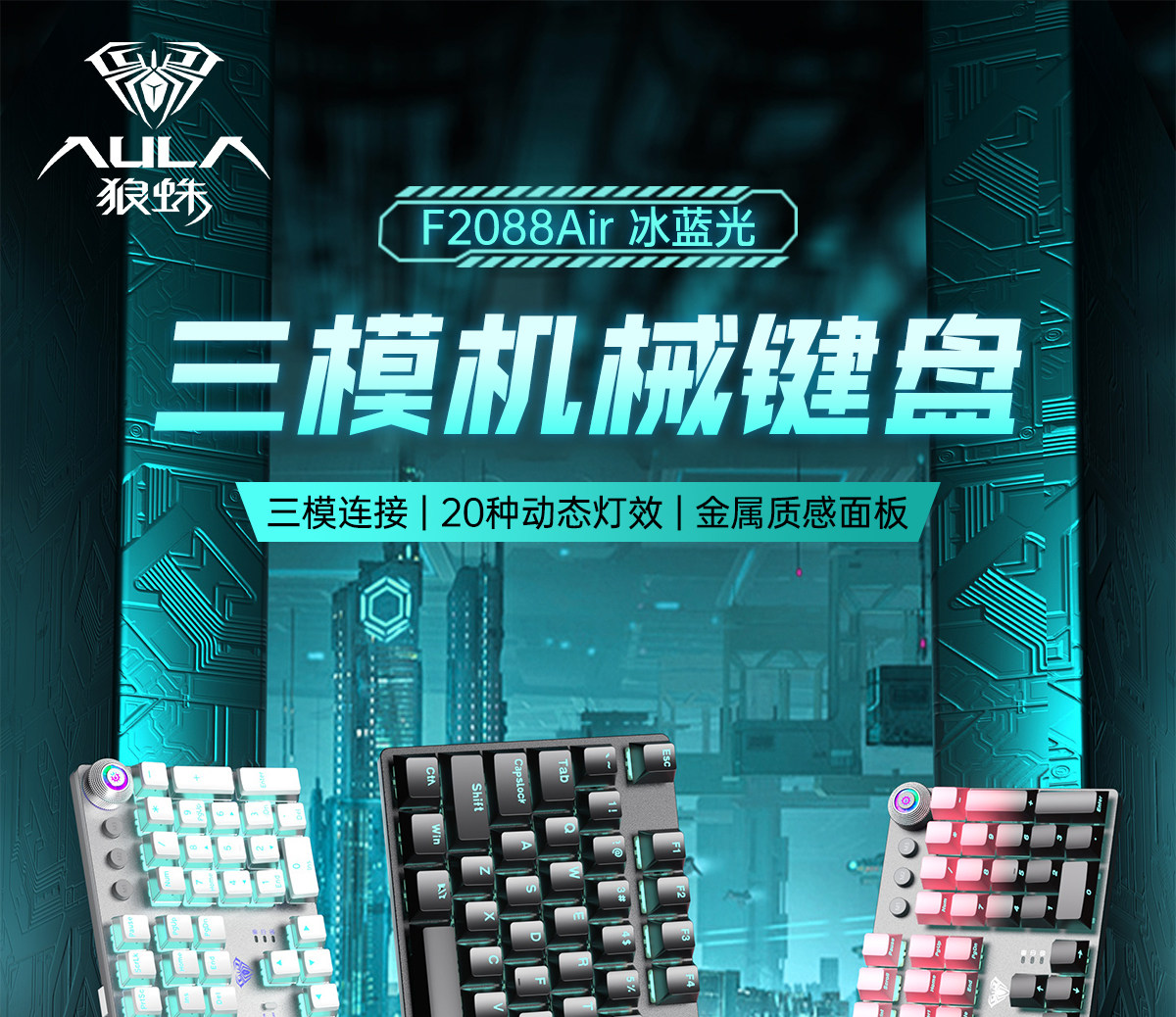Wolf Spider F2088Air Three-Mode Wireless Hot-Swappable Mechanical Keyboard for Gaming, Office, Liquid Foundation, Lipstick Theme