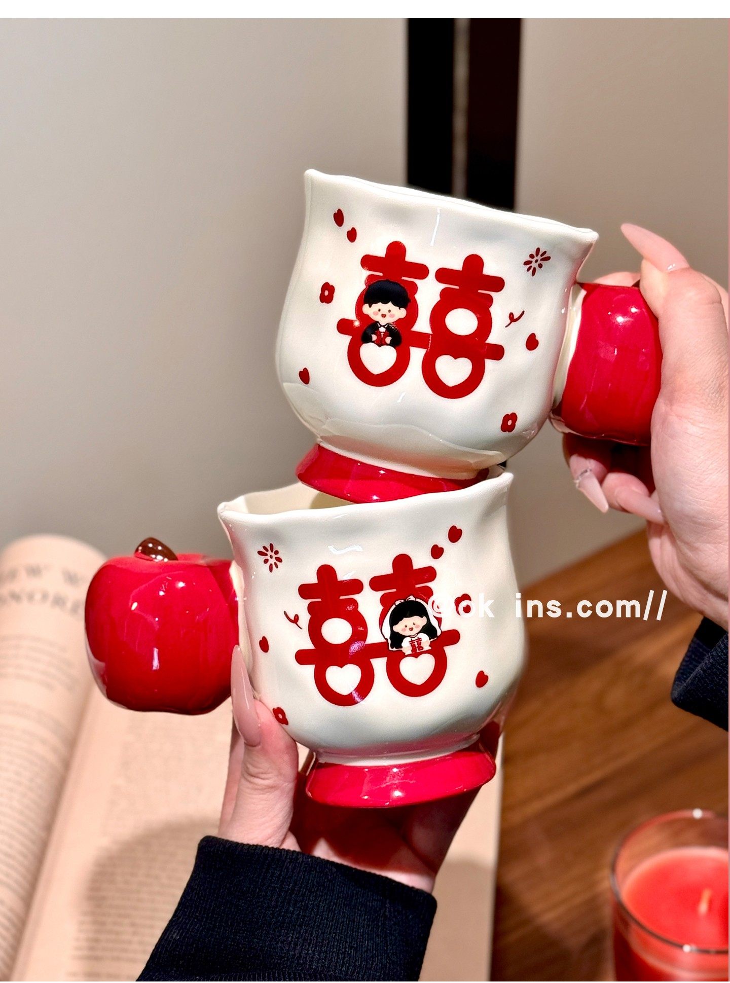 | Color Classification | Apple Double Happiness Cup - Matching Cup Gift Set with Gift Bag |