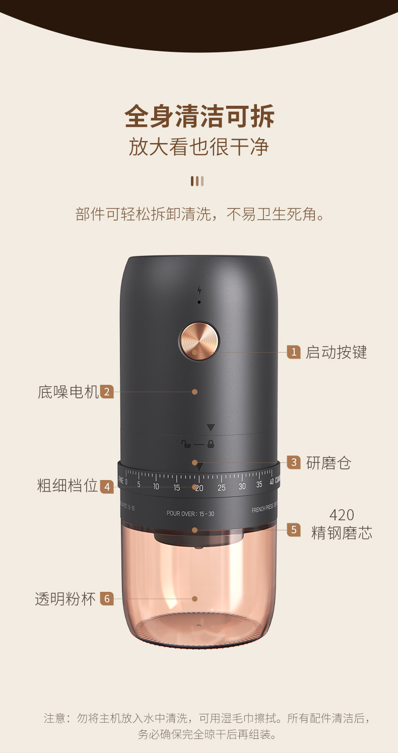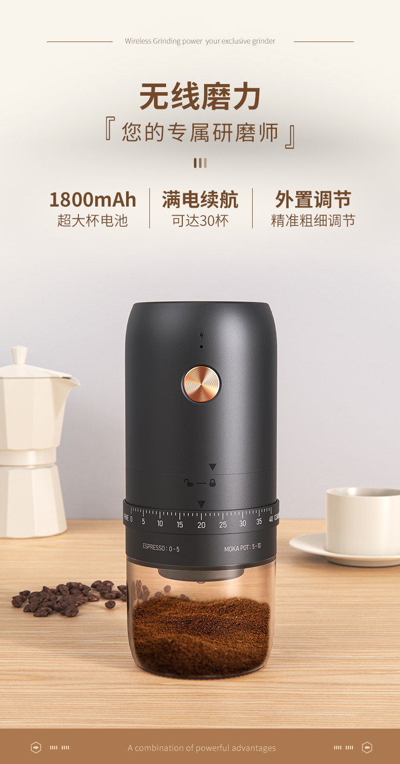Jicui Shi Portable Coffee Grinder Wireless Steel Core Small Hand-Cranked Coffee Bean Grinder Fully Automatic Grinder