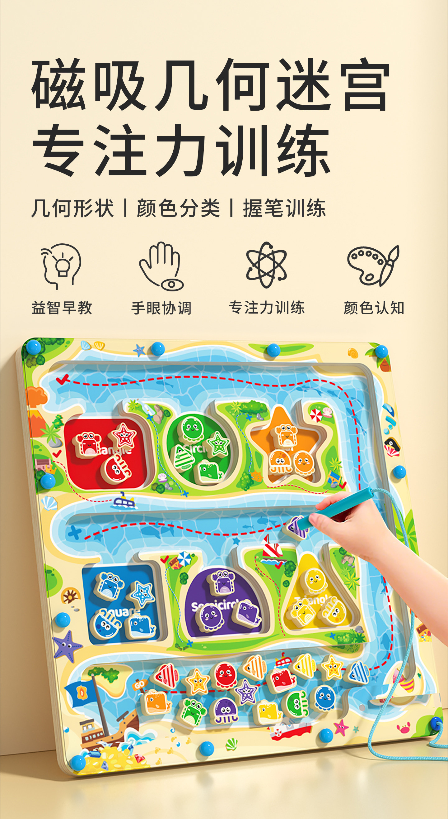 Educational Children's Magnetic Maze Ball Toy for Baby Concentration Training, Pen Control, Logical Thinking, Early Education for Ages 3 to 6