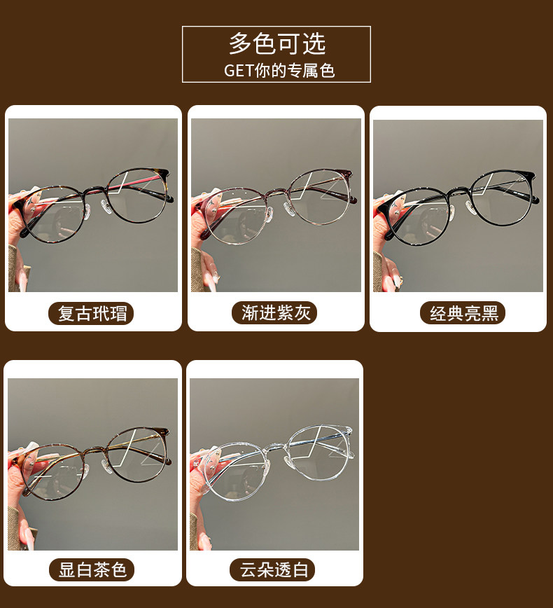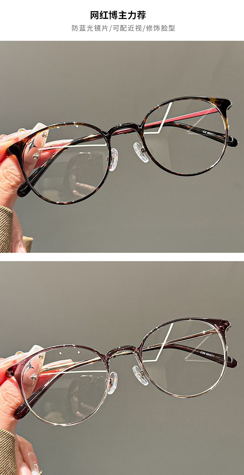 European and Korean Style Small Round Frame Glasses for Women, Professionally Customized for Nearsightedness, Suitable for Square and Round Faces, Slimming Eyeglass Frames