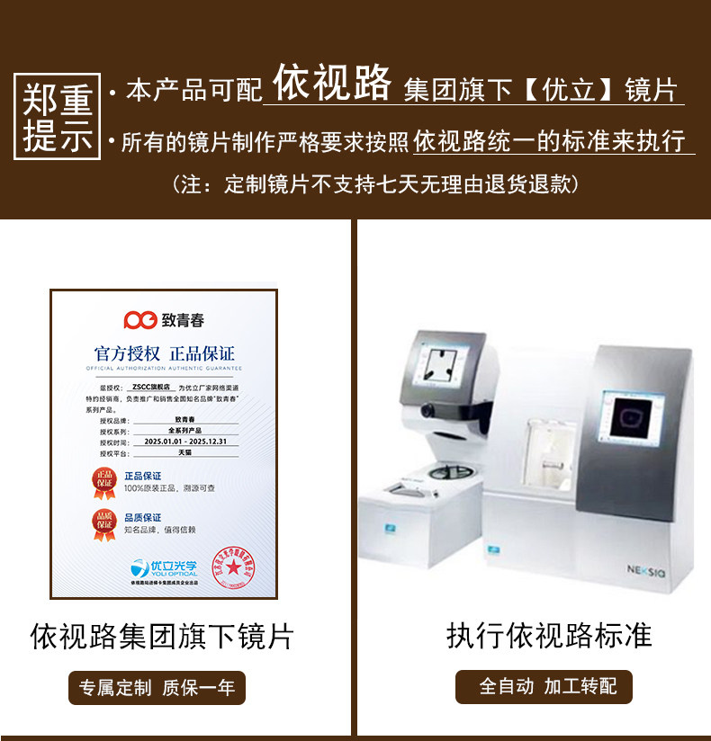 | Lens Refractive Index | Frame + 0-Degree Anti-Blue Light Lenses [Can Be Tried on for 7 Days and Can Be Returned or Exchanged Without Any Reason],Frame + 1.56 Anti-Blue Light Radiation Lens [Suitable for 0-300 Degrees],Frame + 1.61 Anti-Blue Light Radiation Lens [Suitable for 0-500 Degrees],Frame + 1.67 Anti-Blue Light Radiation Lens [Suitable for 0-800 Degrees],Frame + 1.74 Anti-Blue Light Radiation Lens [Suitable for 0-1200 Degrees],Frame + 1.56 Aspherical Radiation-Proof Lens [Suitable for 0-300 Degrees],Frame + 1.61 Aspherical Anti-Radiation Lens [Suitable for 0-500 Degrees],Frame + 1.67 Aspherical Radiation-Proof Lens [Suitable for 0-800 Degrees],Frame + 1.74 Aspherical Radiation-Proof Lens [Suitable for 0-1200 Degrees],Equipped with [Essilor] Yuli 1.56 Multi-Screen Anti-Blue Light Lenses [Suitable for 0-300],Equipped with [Essilor] Yuli 1.60 Multi-Screen Anti-Blue Light Lenses [Suitable for 0-500],Equipped with [Essilor] Yuli 1.67 Multi-Screen Anti-Blue Light Lenses [Suitable for 0-800],Equipped with [Essilor] Yuli 1.74 Multi-Screen Anti-Blue Light Lenses [Suitable for 0-1200],Equipped with [Essilor] Yuli 1.56 Daily Anti-Radiation Lenses [Suitable for 0-300],Equipped with [Essilor] Yuli 1.60 Daily Anti-Radiation Lenses [Suitable for 0-500],Equipped with [Essilor] Yuli 1.67 Daily Anti-Radiation Lenses [Suitable for 0-800],Equipped with [Essilor] Yuli 1.74 Daily Anti-Radiation Lenses [Suitable for 0-1200],↓[Photochromic Lenses]↓Sun Protection and Uv Protection↓,Frame + [Grey/Tea] 1.56 Anti-Blue Light and Anti-Uv Lenses [Suitable for 0-300],Frame + [Grey/Tea] 1.61 Anti-Blue Light and Anti-Uv Lenses [Suitable for 0-500],Frame + [Grey/Tea] 1.67 Anti-Blue Light and Anti-Uv Lenses [Suitable for 0-800],Frame + [Grey/Tea] 1.74 Anti-Blue Light and Anti-Uv Lenses [Suitable for 0-1200],↓【Officially Licensed by Zeiss】↓ Authenticity Guaranteed: Get 10X Your Money Back if It's Fake. Lens Packaging Included.,Equipped with [Zeiss Vision] 1.56 High-Definition Aspherical [Applicable to 0-300 Degrees],Equipped with [Zeiss Vision] 1.60 High-Definition Aspherical [Applicable to 0-500 Degrees],Equipped with [Zeiss Vision] 1.67 High-Definition Aspherical [Applicable to 0-800 Degrees],Equipped with [Zeiss Vision] 1.56 High-Definition Anti-Blue Light [Applicable to 0-300 Degrees],Equipped with [Zeiss Vision] 1.60 High-Definition Anti-Blue Light [Applicable to 0-500 Degrees],Equipped with [Zeiss Vision] 1.67 High-Definition Anti-Blue Light [Applicable to 0-800 Degrees] |