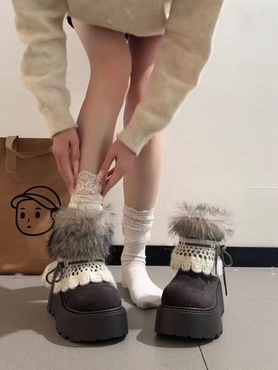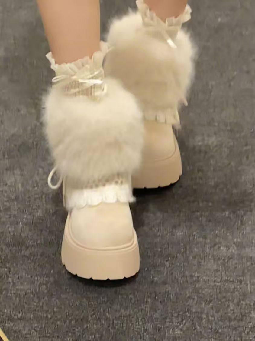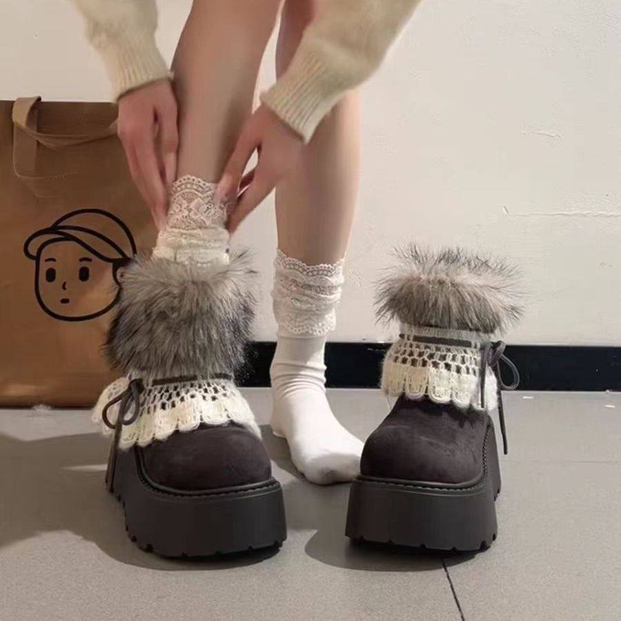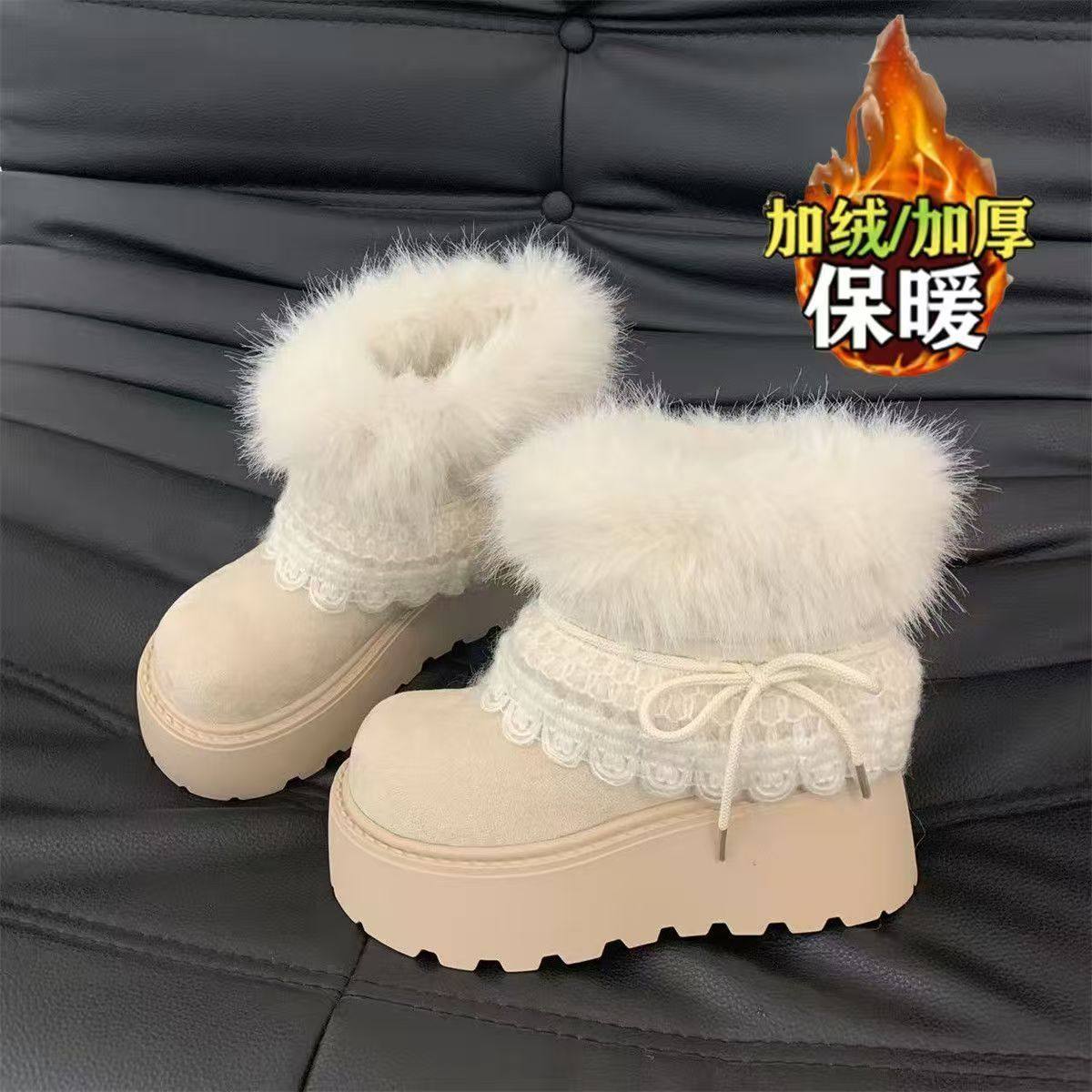 Platform Snow Boots for Petite Women, 2025 New Winter Style, Slimming, Lace-Up, Fleece-Lined, Thickened Short Boots