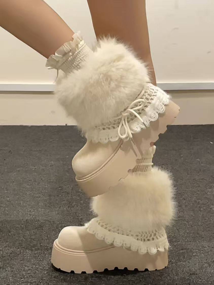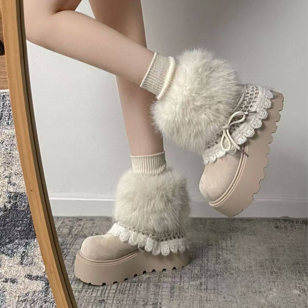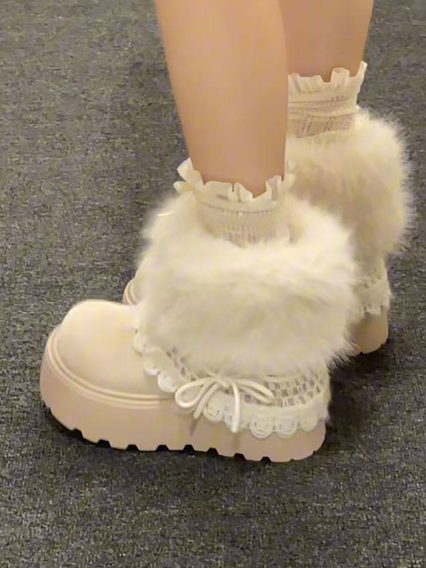 Platform Snow Boots for Petite Women, 2025 New Winter Style, Slimming, Lace-Up, Fleece-Lined, Thickened Short Boots