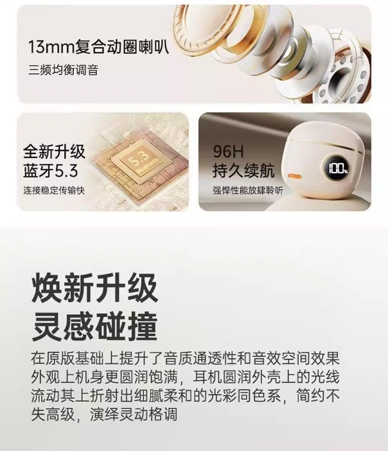 | Color Classification | 【Premium Edition | New Skin】Exclusive Ten-Thousand Yuan-Level Berlin Sound★Anc Physics Noise Reduction★Upgraded Ultra-Long Battery Life★Quad-Core Dual-Chip Low Latency,[Exclusive Edition | Moonlight White] Exclusive 10,000 Yuan Level Berlin Sound Effect★Anc Physics Noise Reduction★Upgraded Ultra-Long Battery Life★Quad-Core Dual-Chip Low Latency,【Premium Edition | Midnight Black】Exclusive Ten-Thousand Yuan-Level Berlin Sound★Anc Physics Noise Reduction★Upgraded Ultra-Long Battery Life★Quad-Core Dual-Chip Low Latency,Pink [Champion Endorsement-Flagship Genuine] Ordinary Sound Quality + Short Battery Life + Bluetooth 4.0,[Top Version | Warm Skin] Dolby Panoramic Surround Sound⭐Enhanced Dual-Core Bluetooth 5.4 Chip⭐Enc Intelligent Noise Reduction⭐Long Battery Life,[Top Version | Holy White] Dolby Panoramic Surround Sound⭐Enhanced Dual-Core Bluetooth 5.4 Chip⭐Enc Intelligent Noise Reduction⭐Long Battery Life,[Top Version | Dark Night Black] Dolby Panoramic Surround Sound⭐Enhanced Dual-Core Bluetooth 5.4 Chip⭐Enc Intelligent Noise Reduction⭐Long Battery Life,【Supreme Edition | Oxygen Skin】Dolby Atmos Immersive Surround Sound + Imported Quad-Core Bluetooth 5.4 Chip + Enc Quad-Mic Noise Cancellation + Ultra-Long Battery Life,[Extreme Edition | Haoyue White] Ten Thousand Yuan Dolby Panoramic Space Sound Effect + Imported Quad-Core Bluetooth 5.4 Chip + Enc Four-Mark Noise Reduction + Super Long Battery Life +,【Supreme Edition | Munich】: Dolby Atmos Immersive Surround Sound (Worth Thousands) + Imported Quad-Core Bluetooth 5.4 Chip + Enc Quad-Mic Noise Cancellation + Ultra-Long Battery Life |