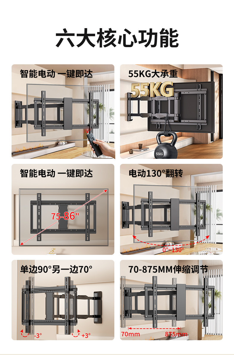 Smart Tv Mount Electric Remote Control Multi-Functional Telescopic Rotating Foldable Wall-Mounted Ultra-Thin Bracket 85/ 100inch