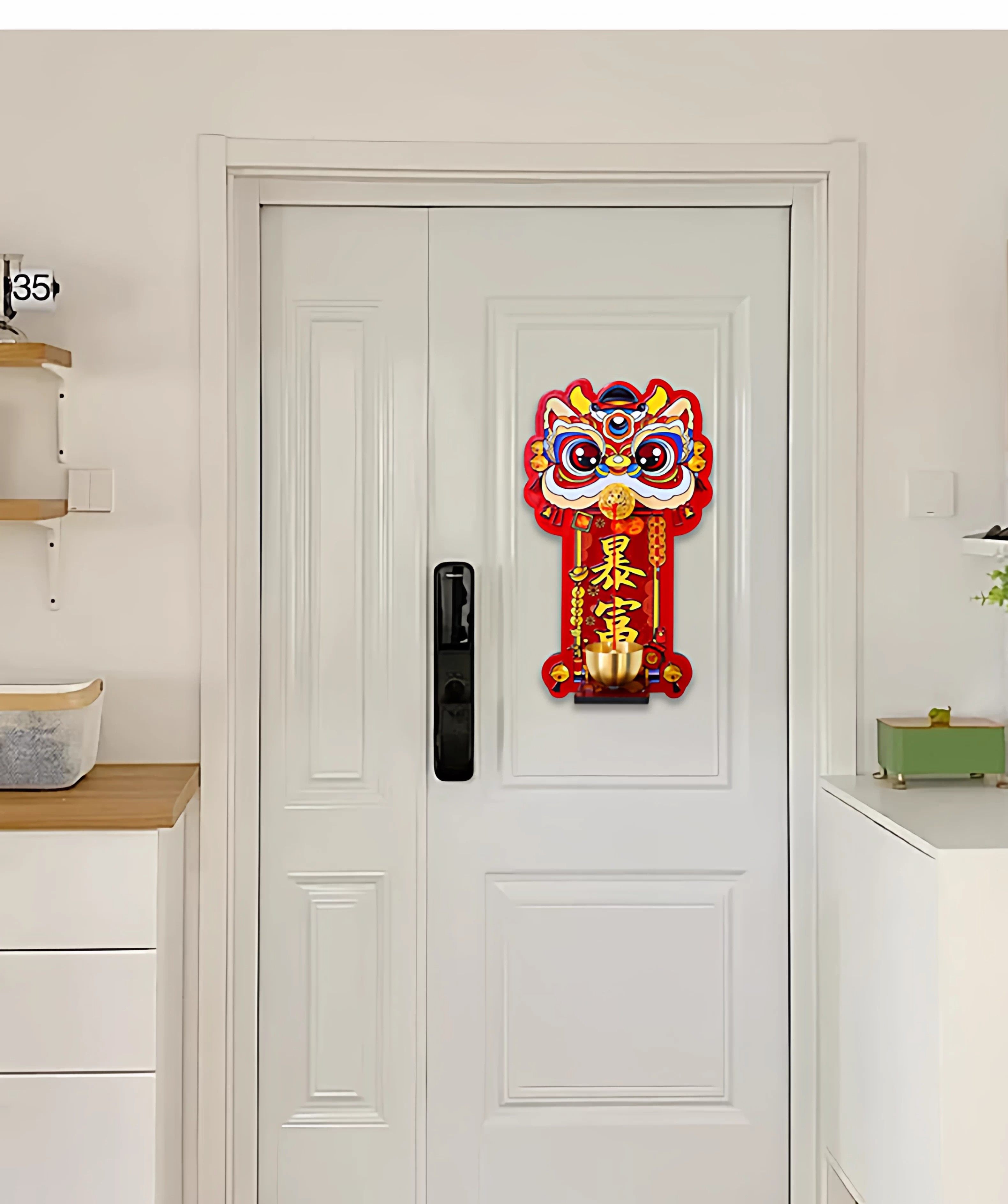 Lion Dance Magnetic Doorbell Entrance Decoration Dopamine Door Opening Reminder Foyer Wealth-Attracting Chinese Wind Chime