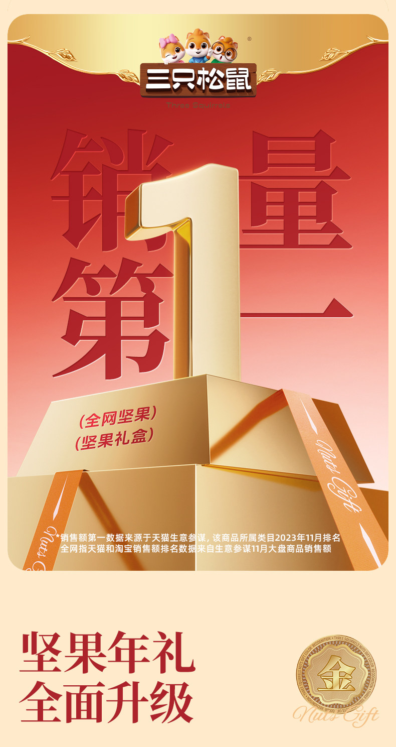 [Recommended by the Host] Three Squirrels Golden Song Edition 16 Bags/1676G Nuts, Holiday Gift for Elders, Nuts