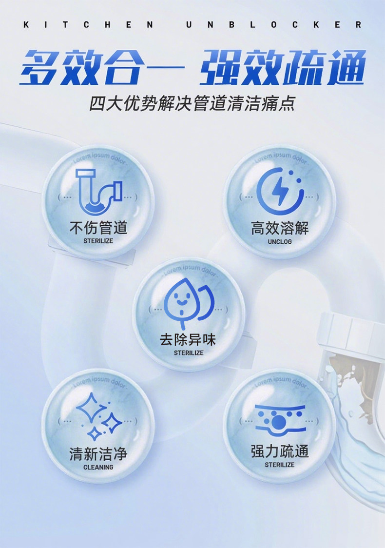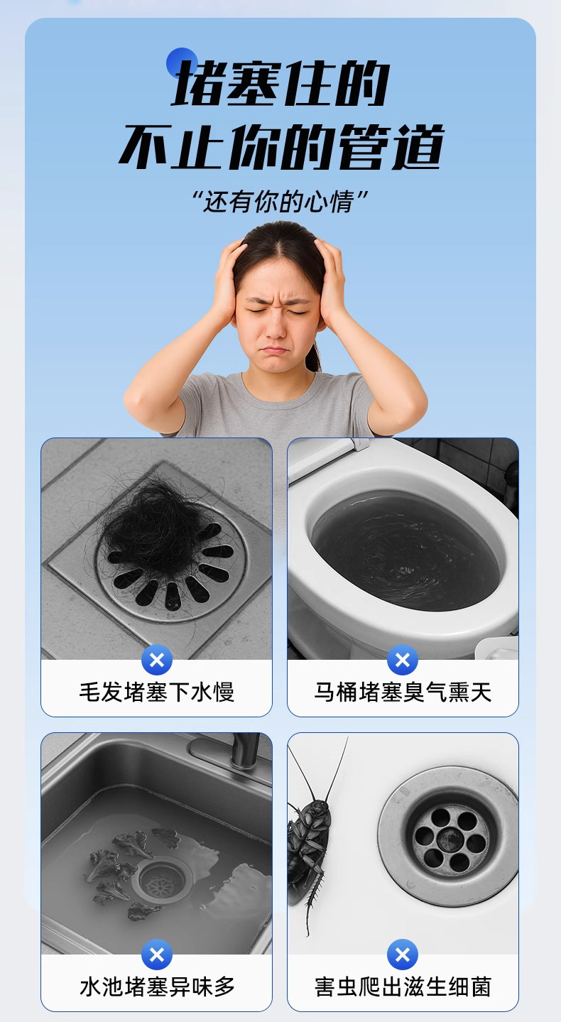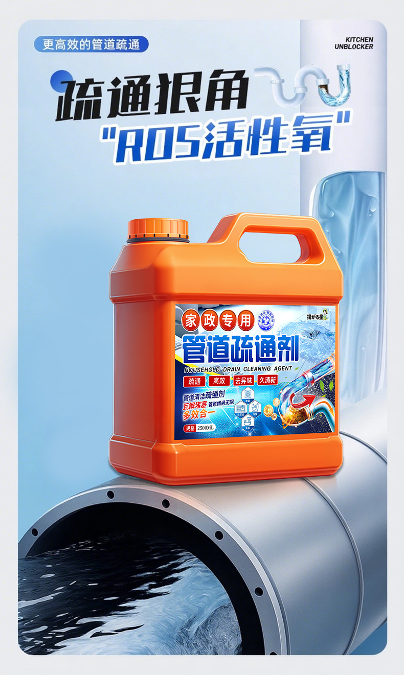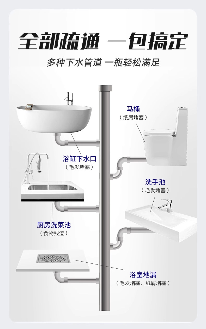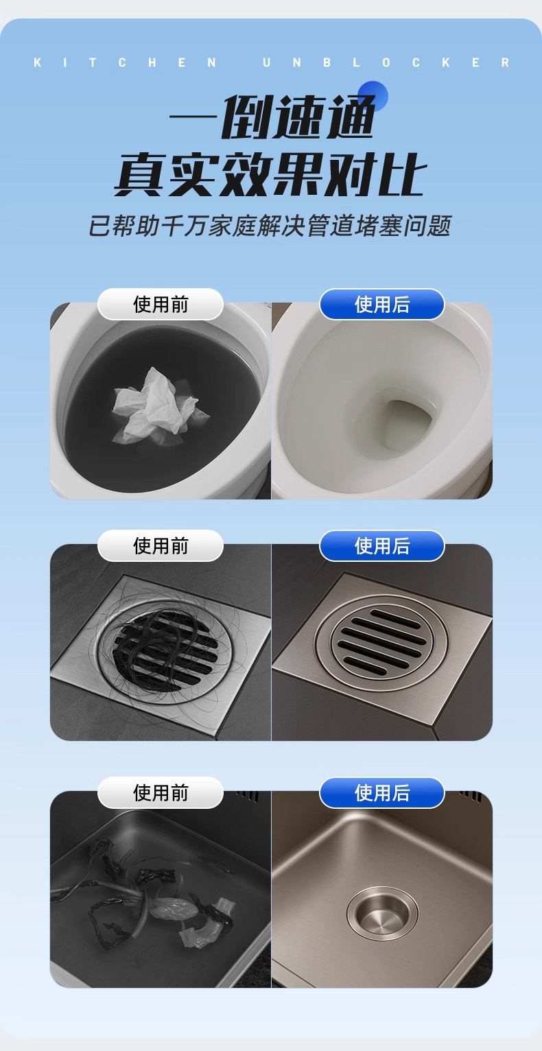 Pipe Dredging Agent Powerfully Dissolves Blockages in Drains, Toilets, and Bathrooms, Removes Kitchen Grease Stains, and Deodorizes #
