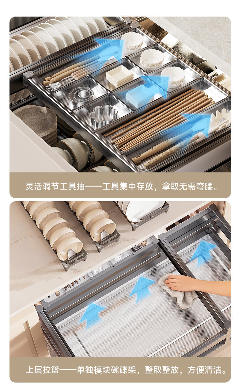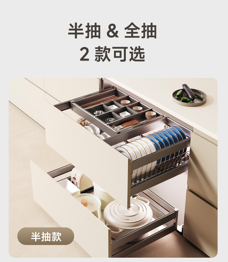 Chijian Pull-Out Basket Kitchen Cabinet Double-Layer Drawer-Type Bowl Basket 304 Stainless Steel Cupboard Pull-Out Bowl and Plate Storage Basket