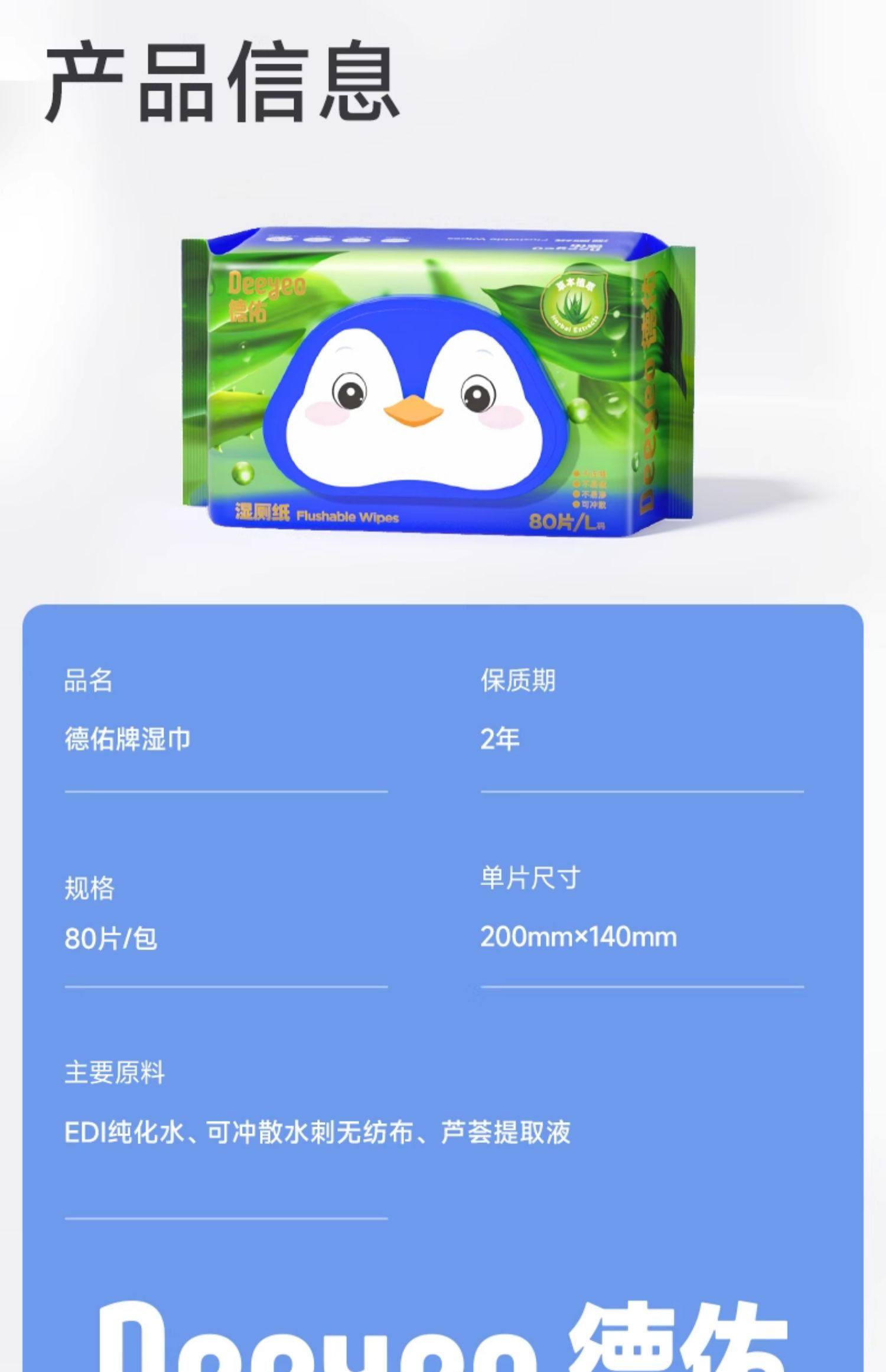 | Product Name | Deeyeo Aloe Vera Wet Toilet Paper 80 Pack |