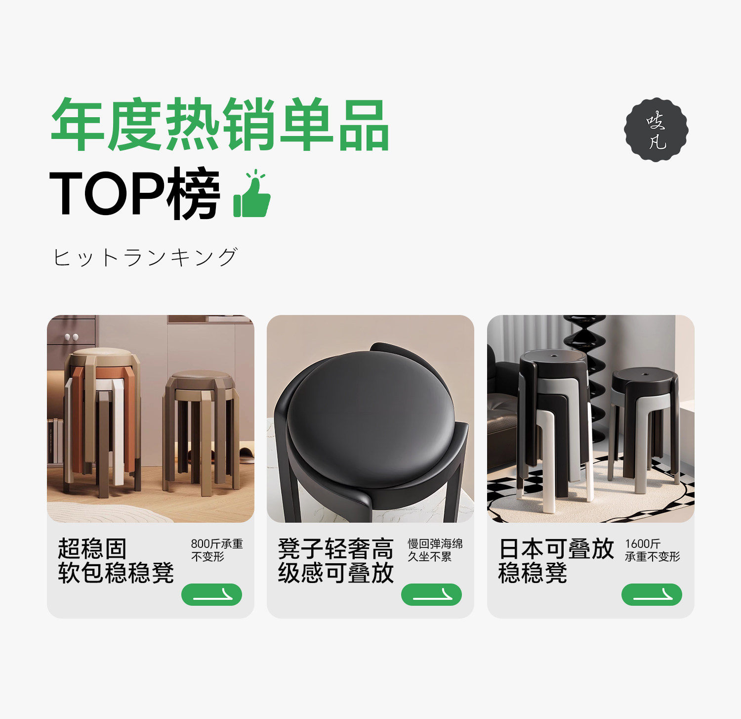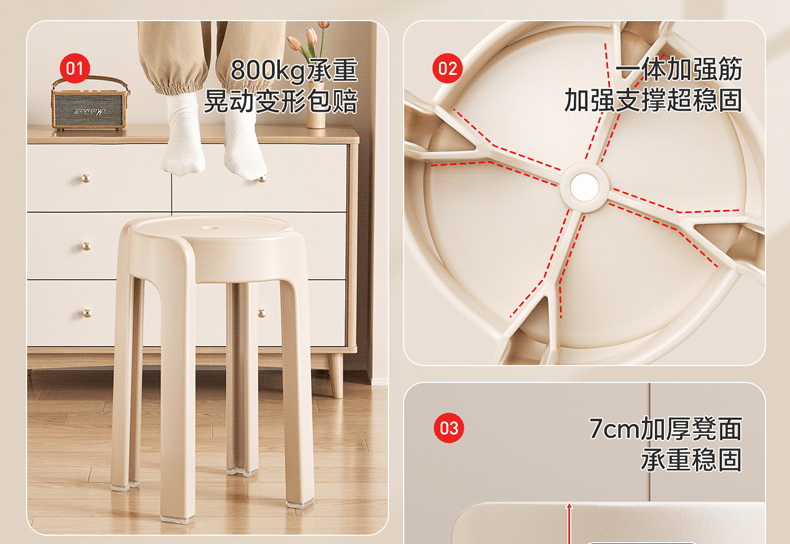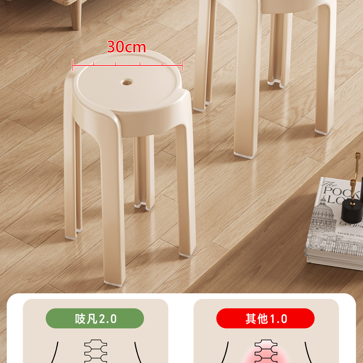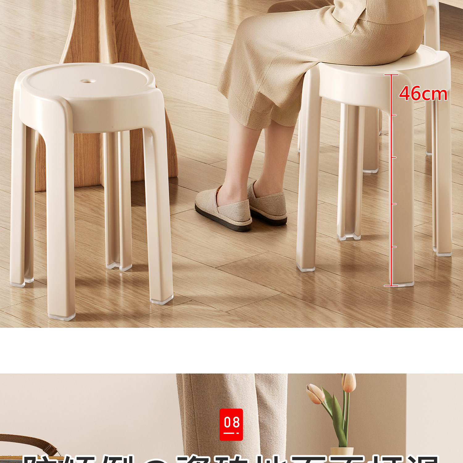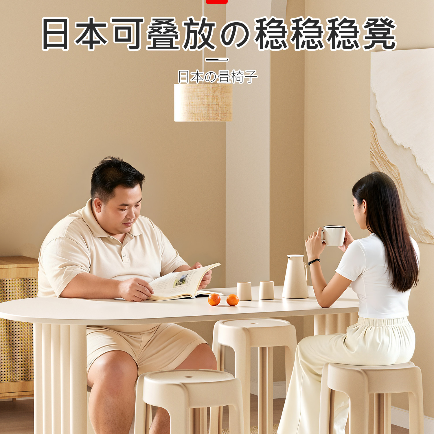 Japanese New Home Moving Stools, Stackable Red Plastic Round Stools, Sturdy and Durable for Home Use, Dining Table Guest Chairs