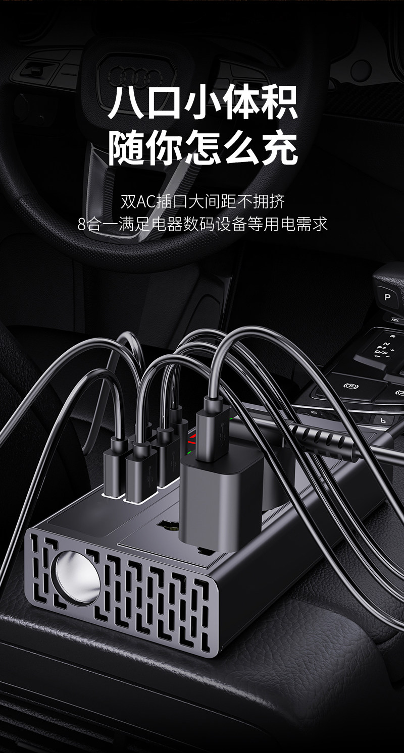 Car Inverter 12V24V to 220V High Power 200W Cigarette Lighter Extension Socket Ac Car Charger