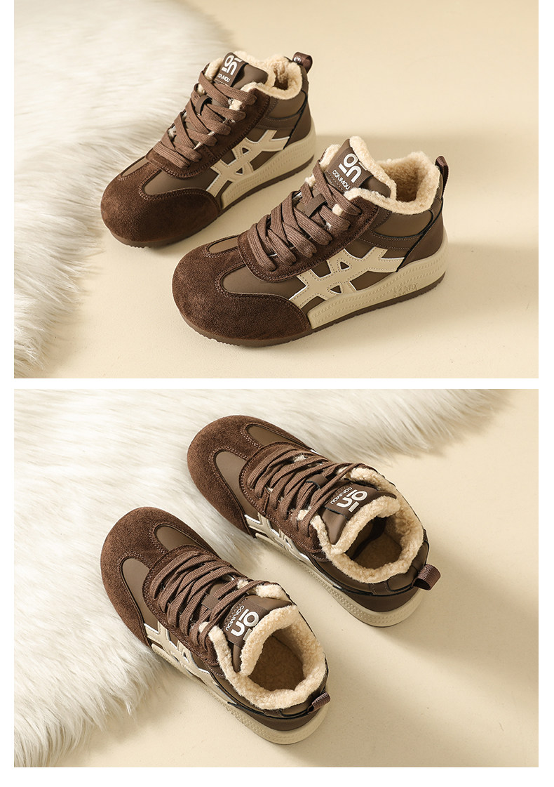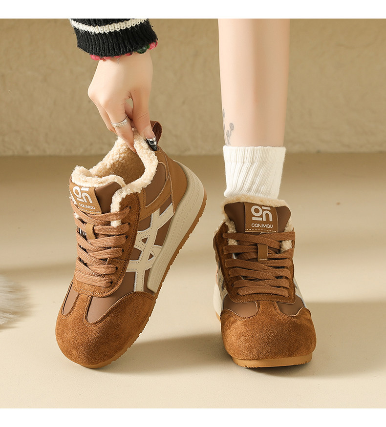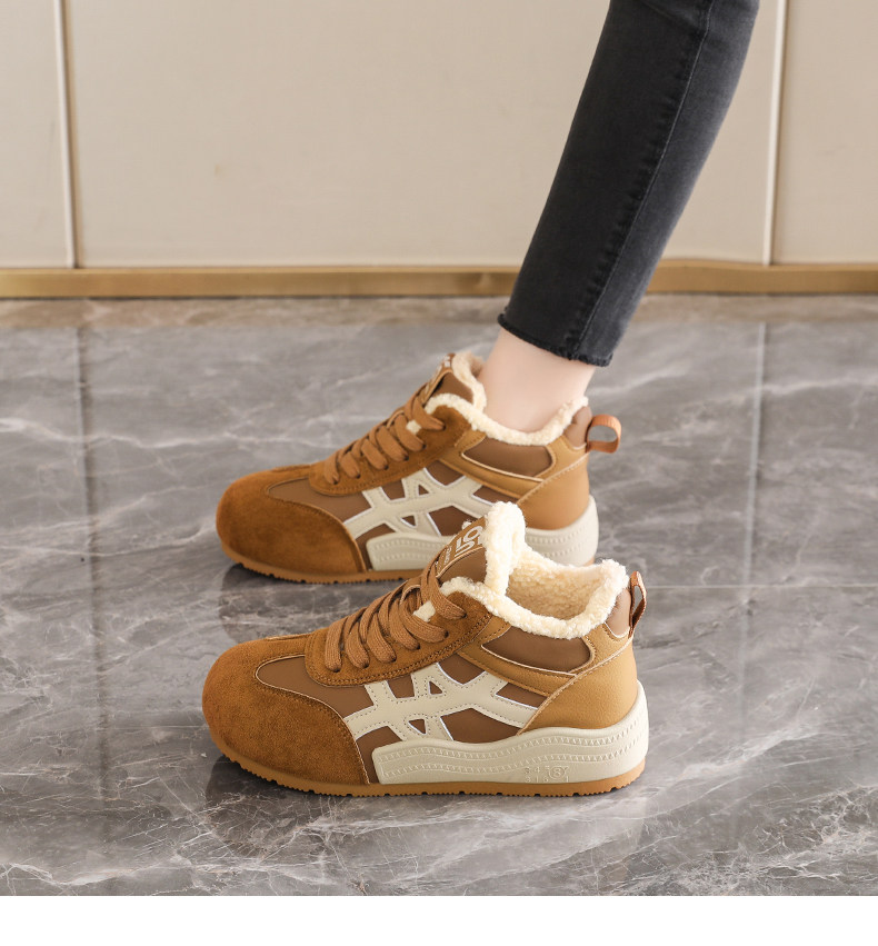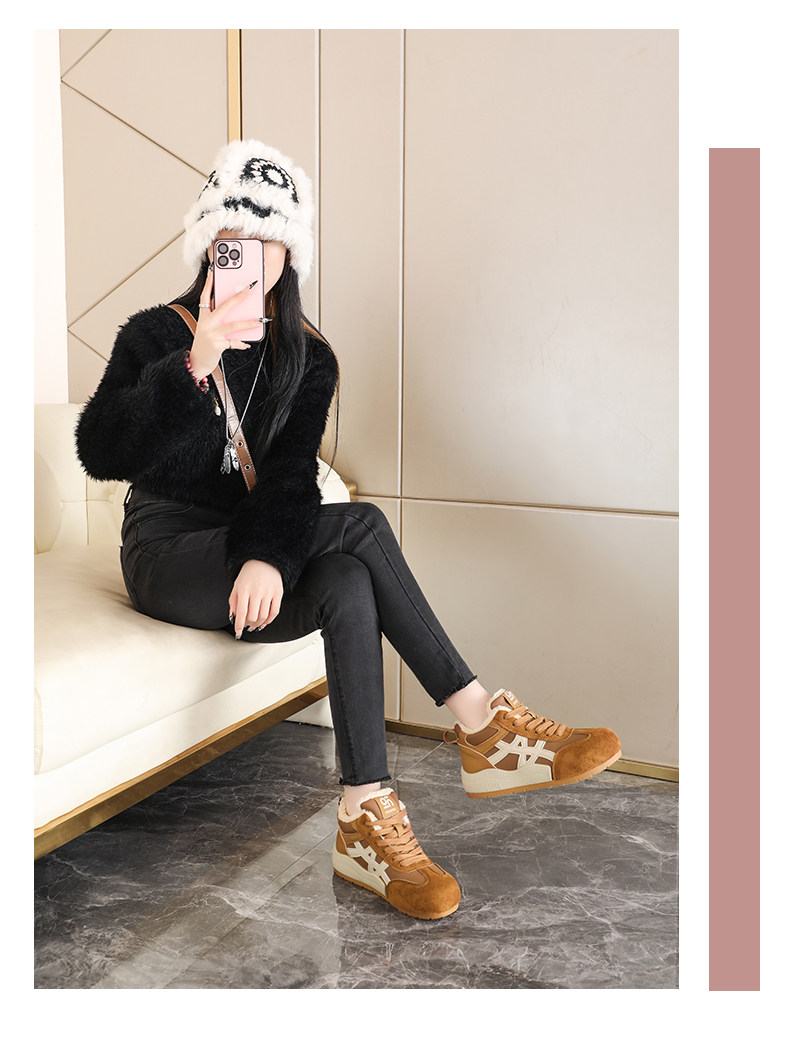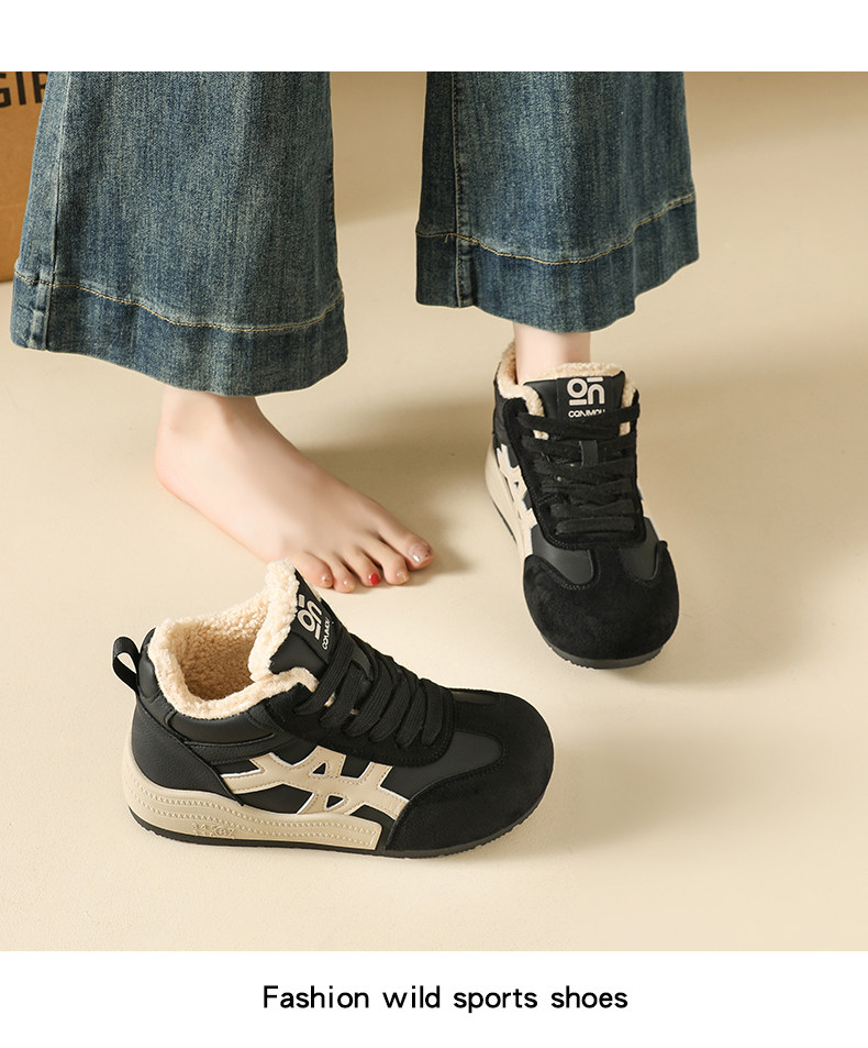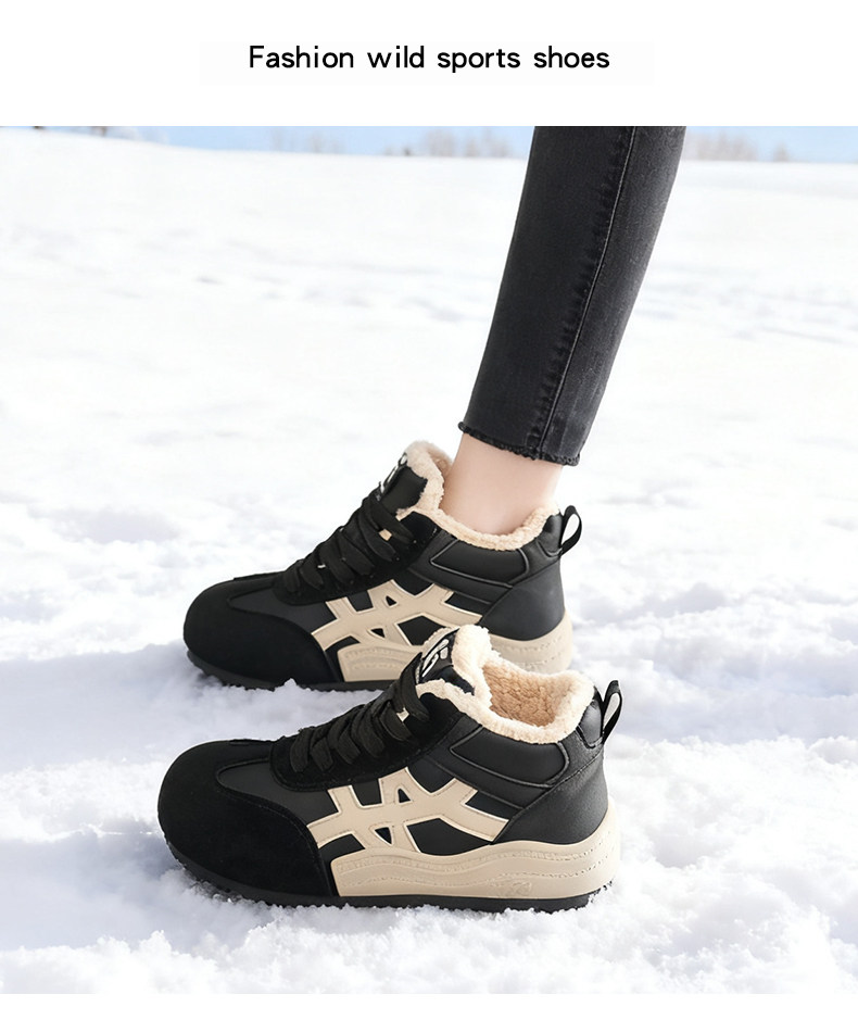 Fleece-Lined High-Top Sneakers for Women, Winter Warm Anti-Slip Snow Boots, 2025 New Thick-Soled Versatile Furry Cotton Shoes