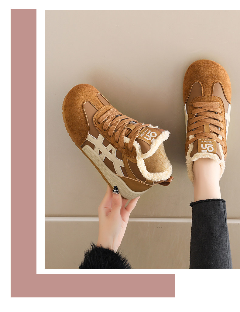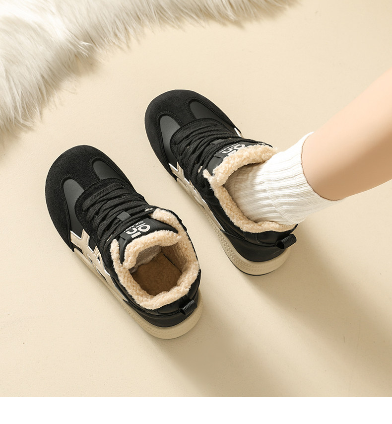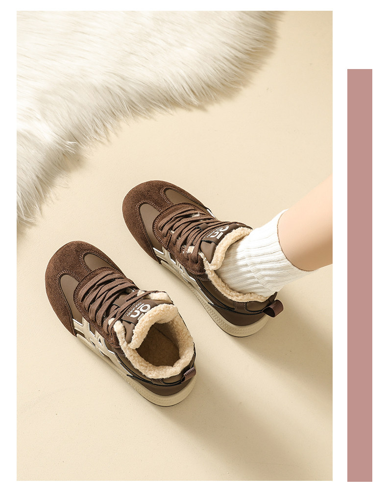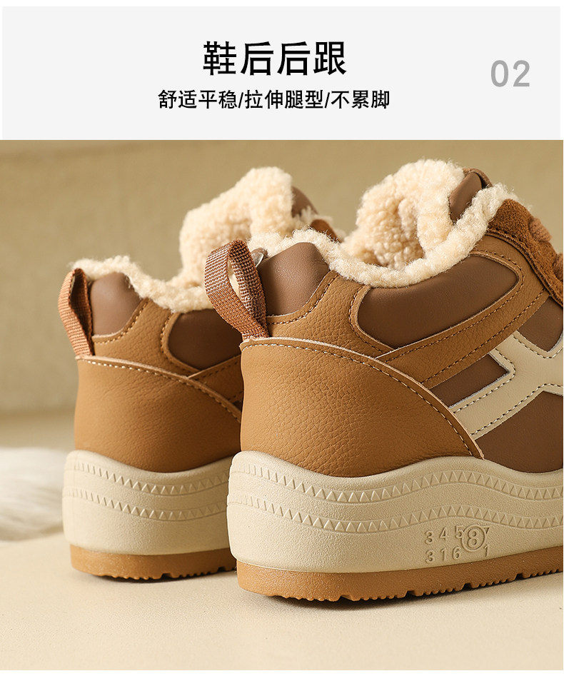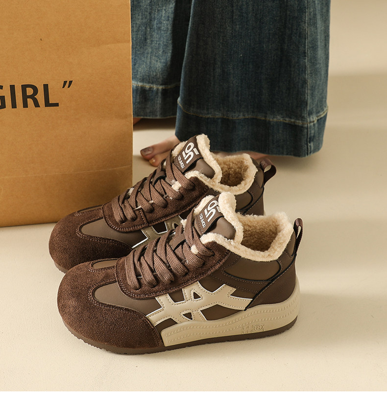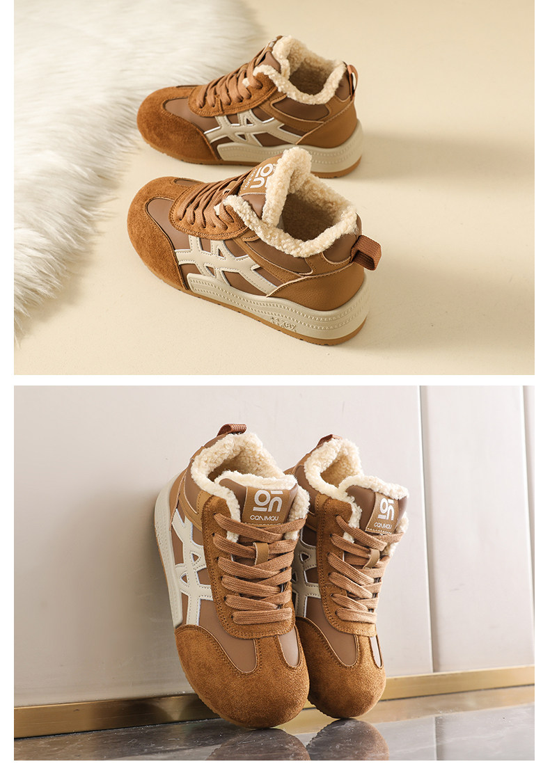 Fleece-Lined High-Top Sneakers for Women, Winter Warm Anti-Slip Snow Boots, 2025 New Thick-Soled Versatile Furry Cotton Shoes
