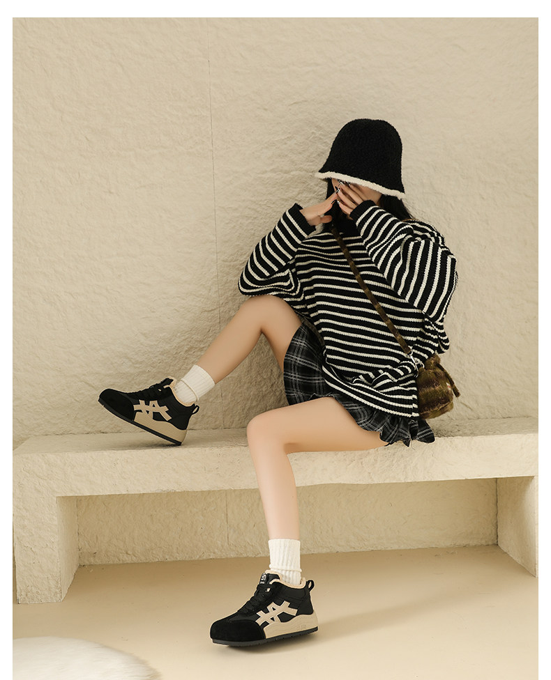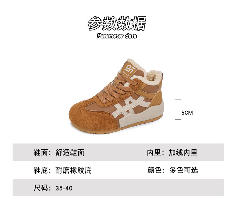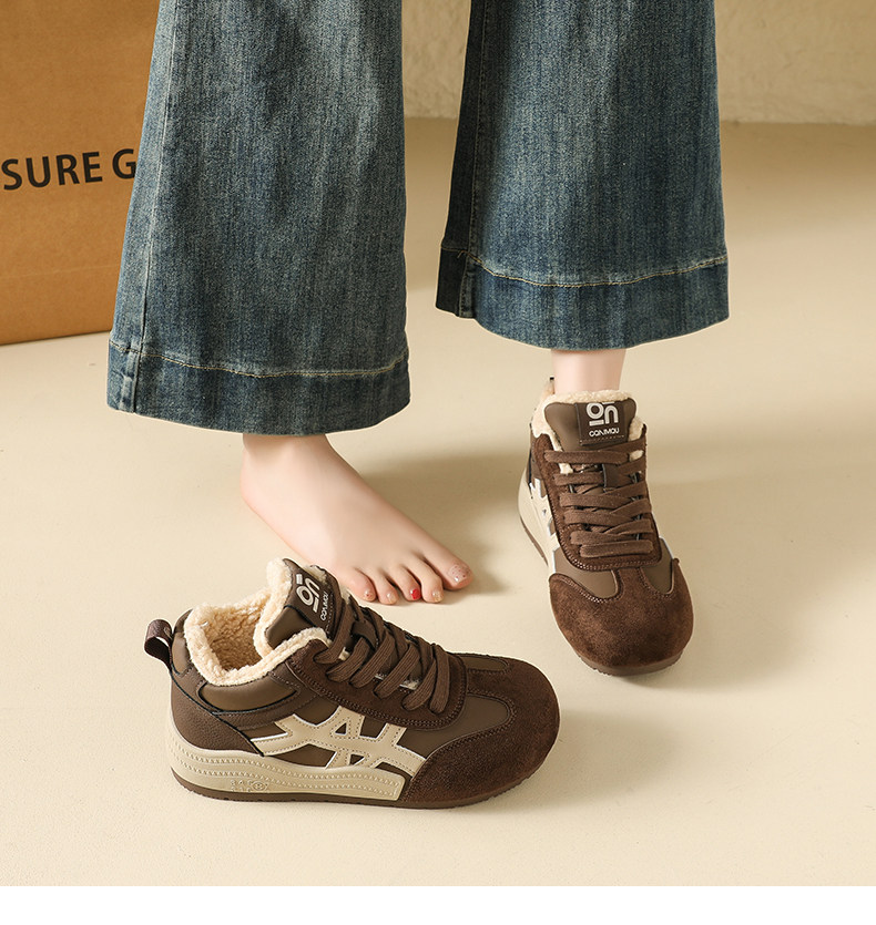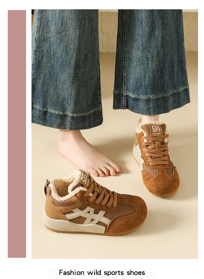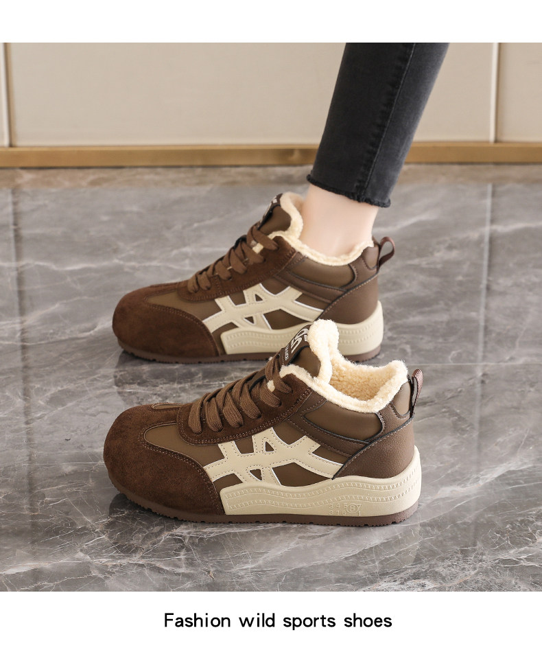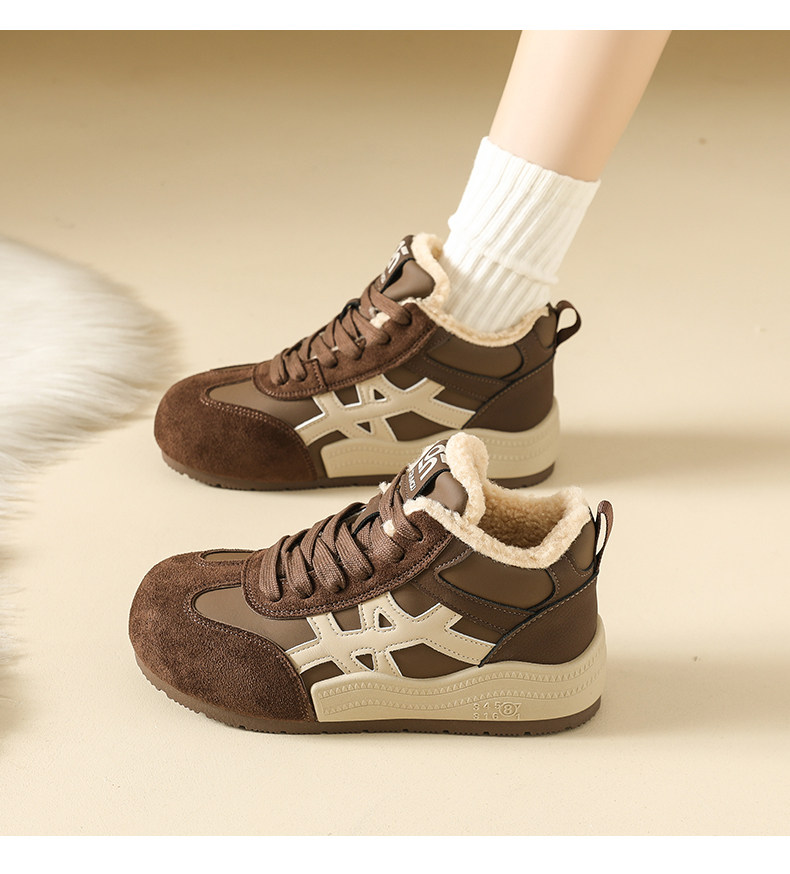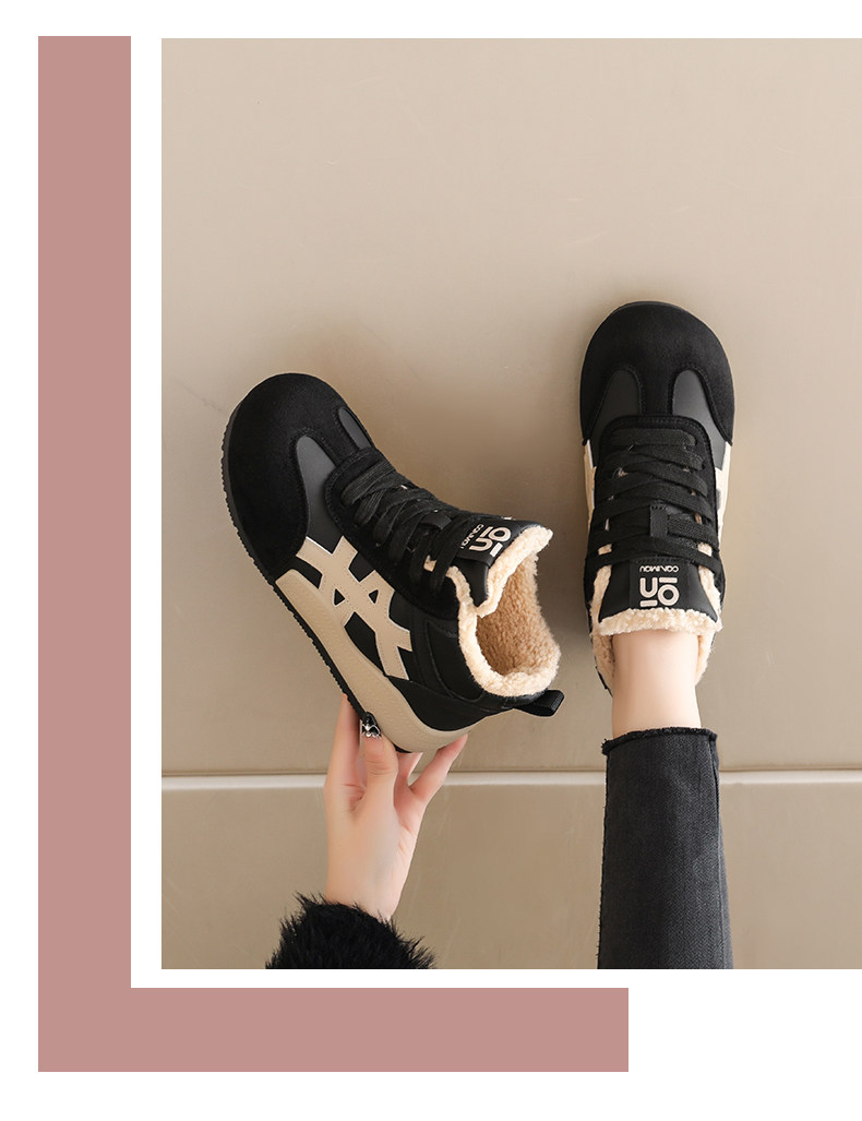 Fleece-Lined High-Top Sneakers for Women, Winter Warm Anti-Slip Snow Boots, 2025 New Thick-Soled Versatile Furry Cotton Shoes