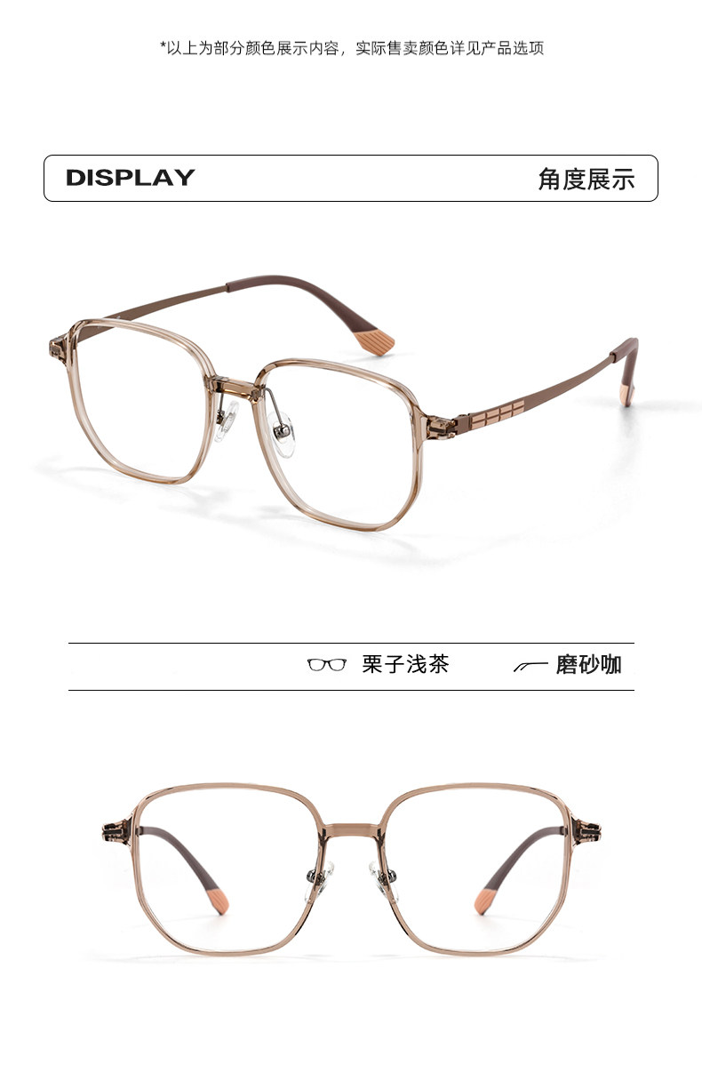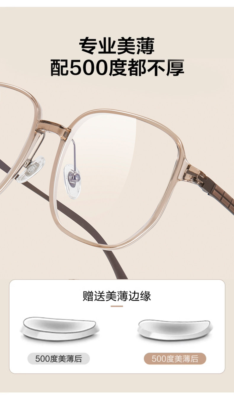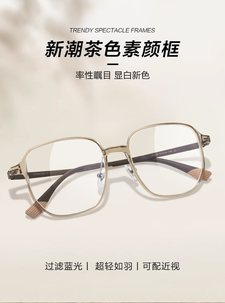 Ultra-Light Titanium Large-Frame Cold Tea-Colored Myopia Glasses for Women, Can Be Customized with Prescription, Natural Look, Polygonal Eyeglass Frame