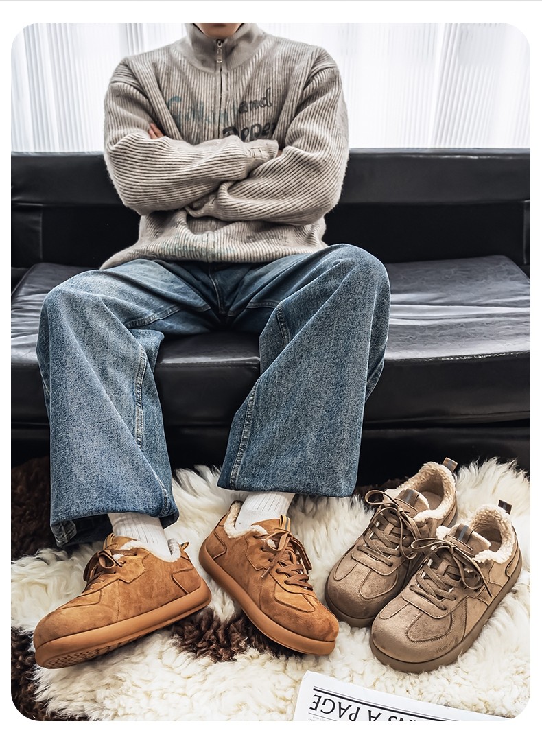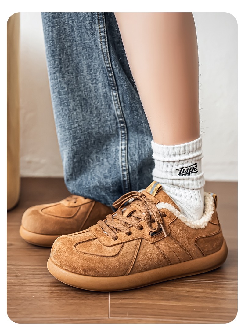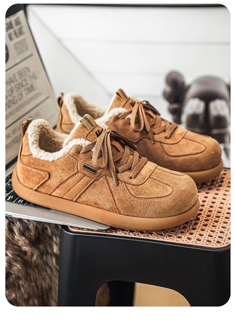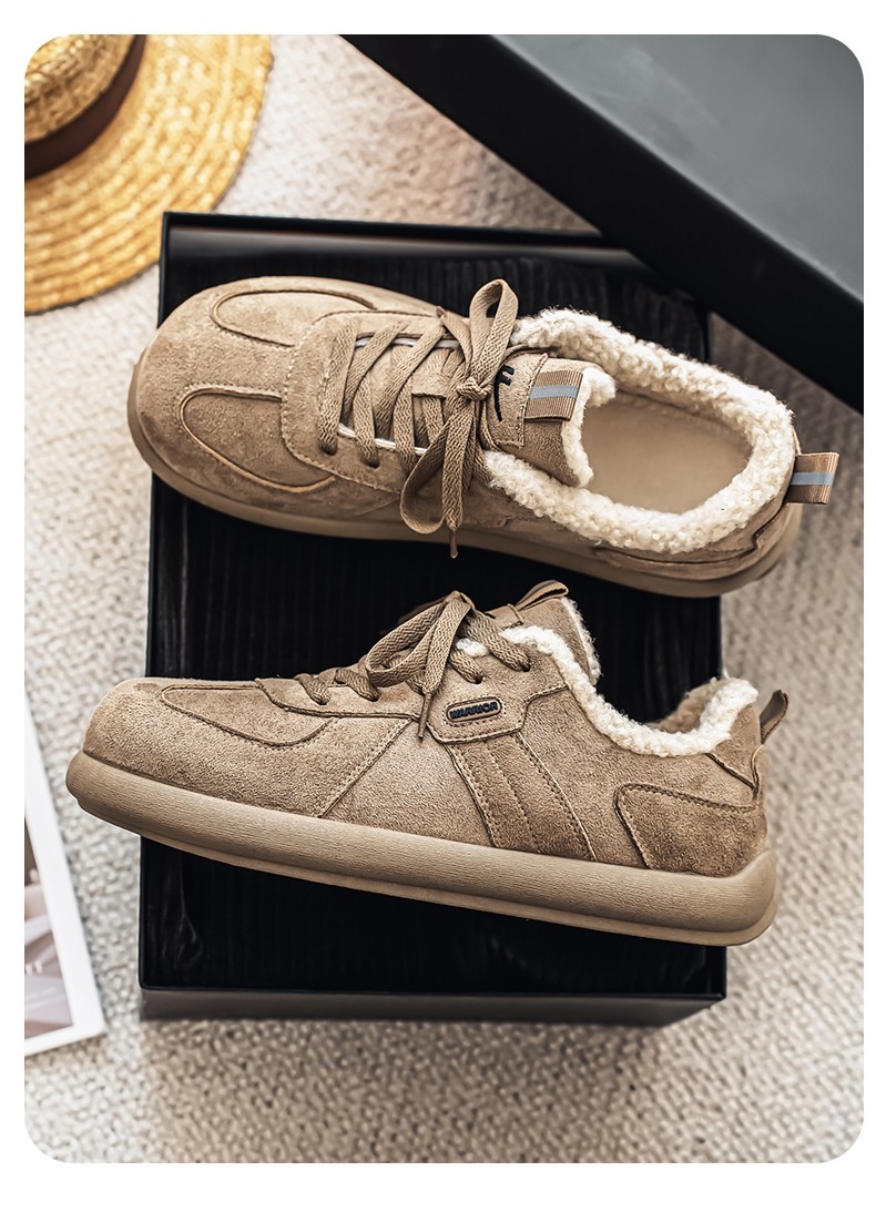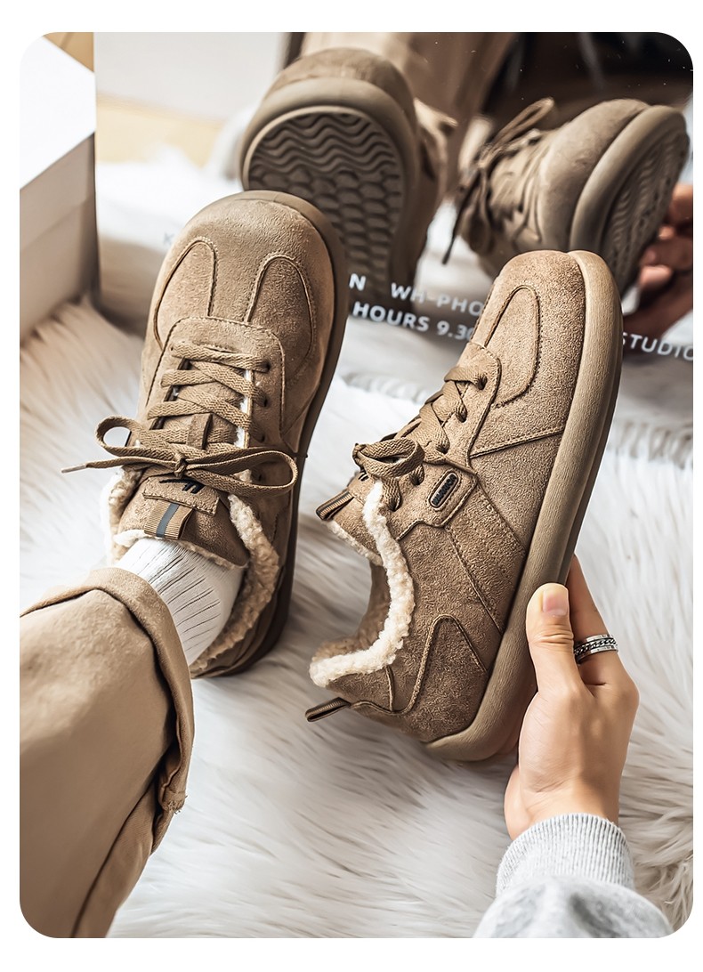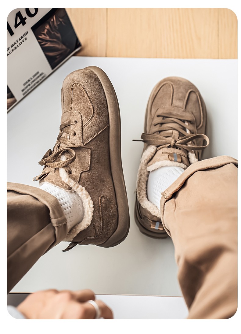 Pull-Back Men's Birkenstock Shoes, Winter Fleece-Lined, Thickened, Warm, Lace-Up, Casual Office Cotton Shoes, Youth Sneakers
