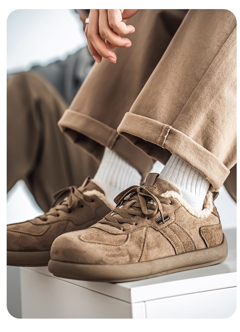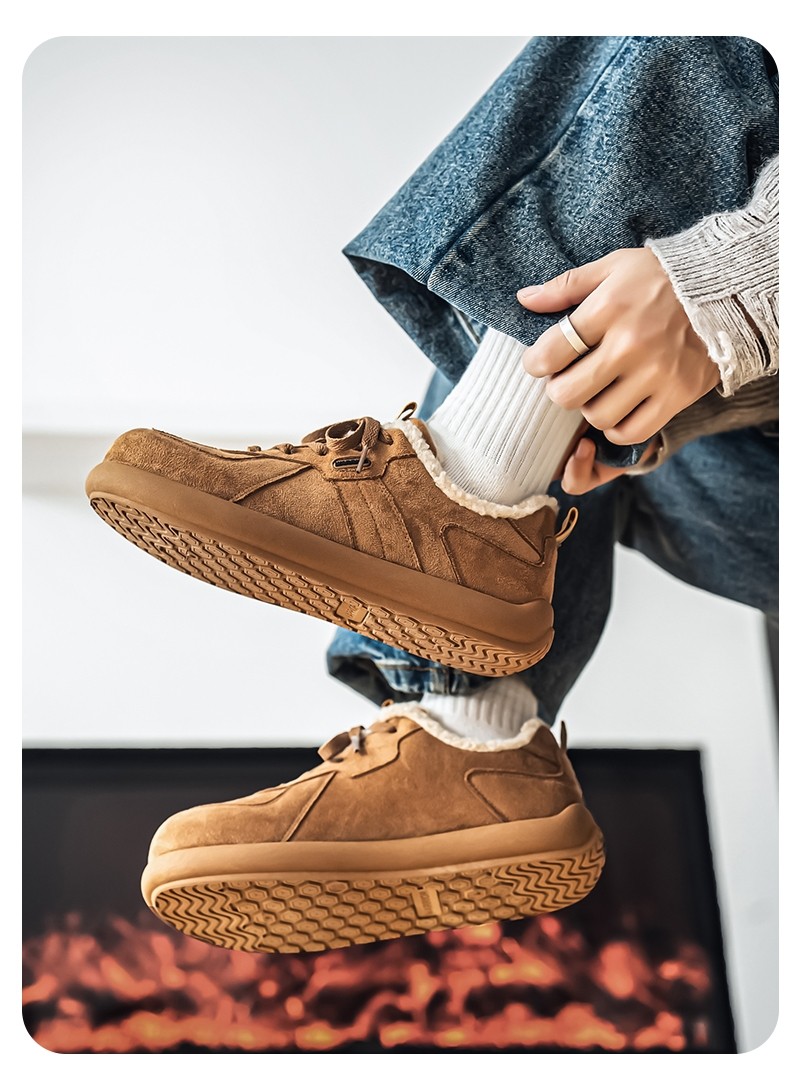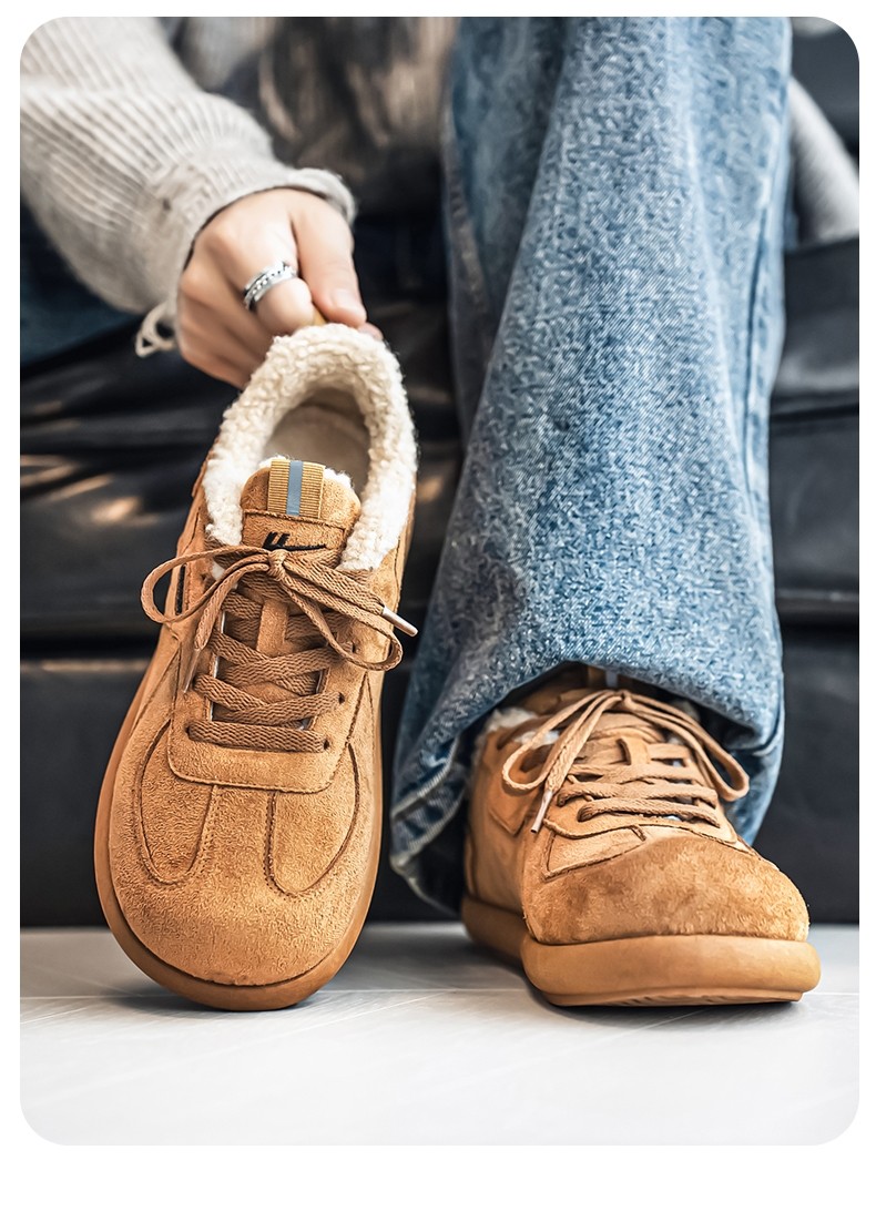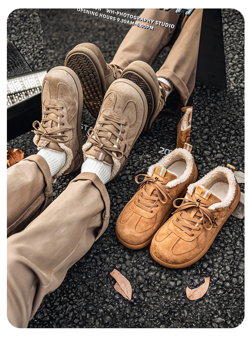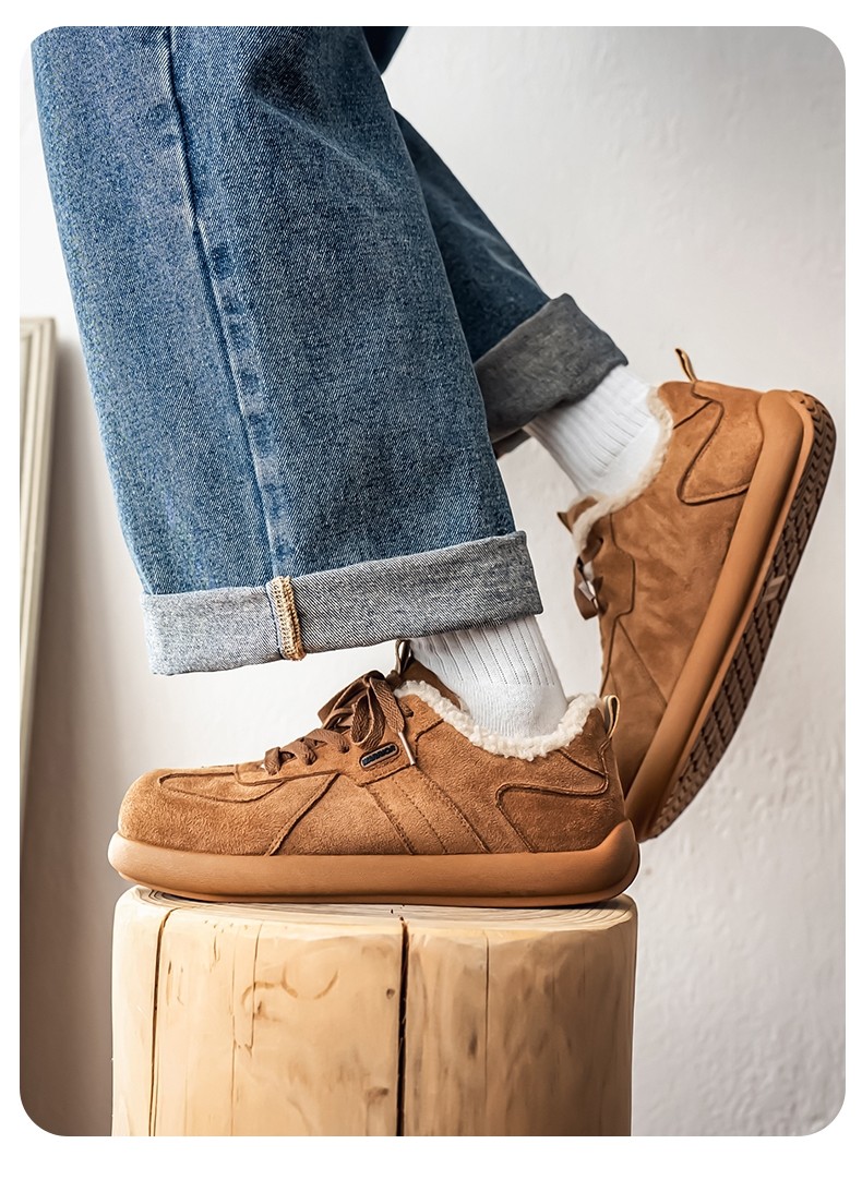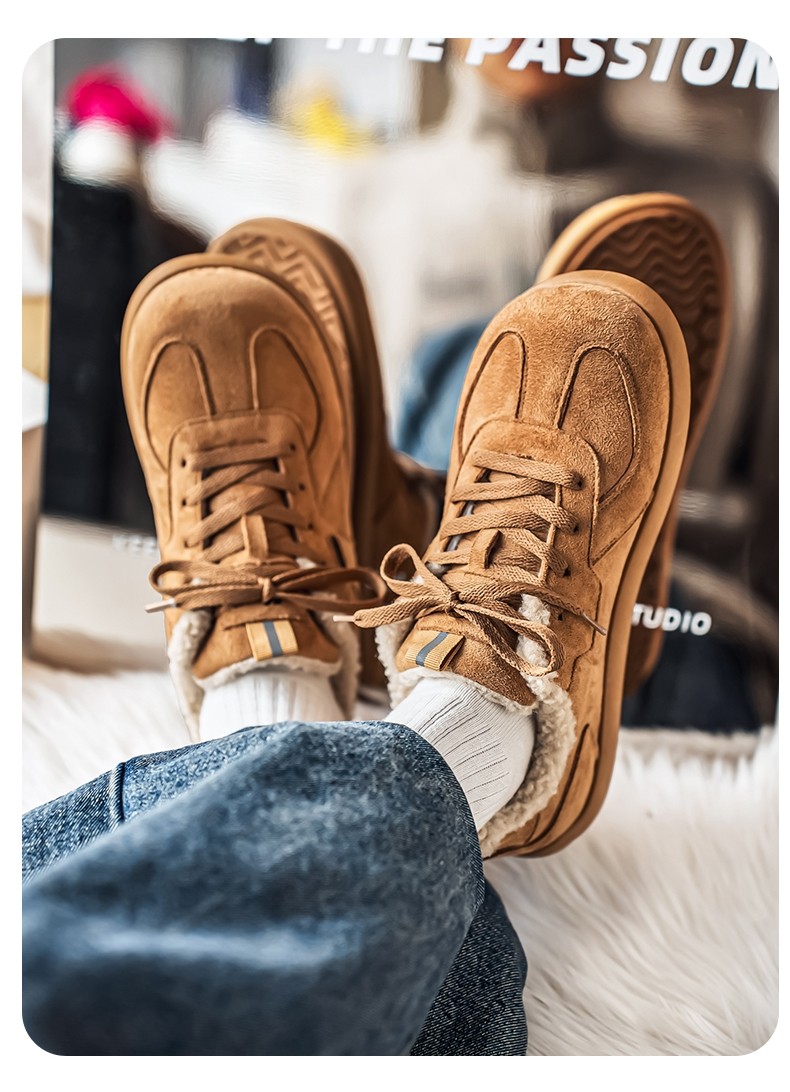 Pull-Back Men's Birkenstock Shoes, Winter Fleece-Lined, Thickened, Warm, Lace-Up, Casual Office Cotton Shoes, Youth Sneakers