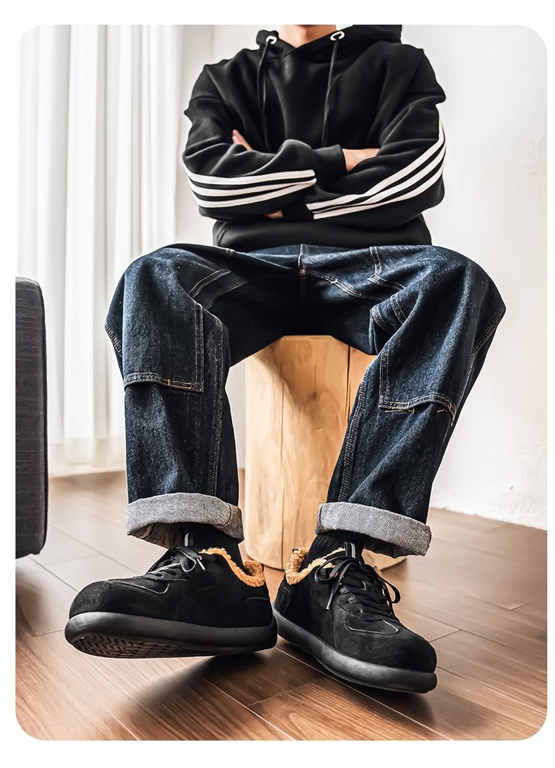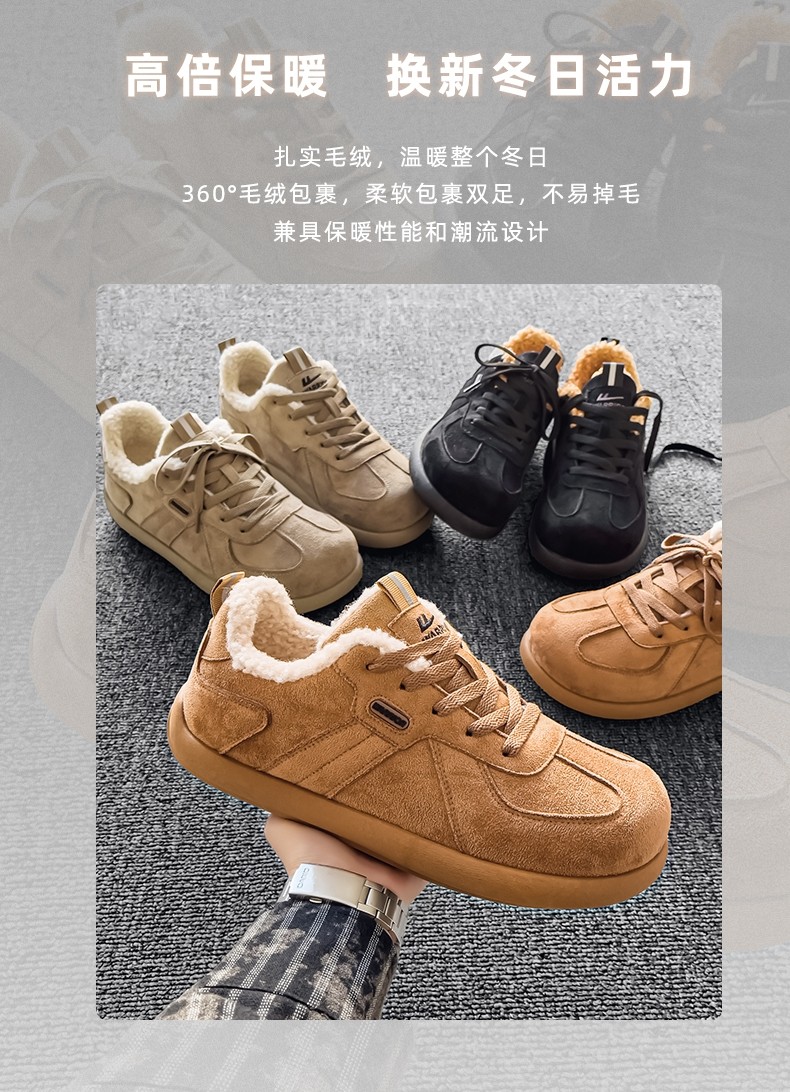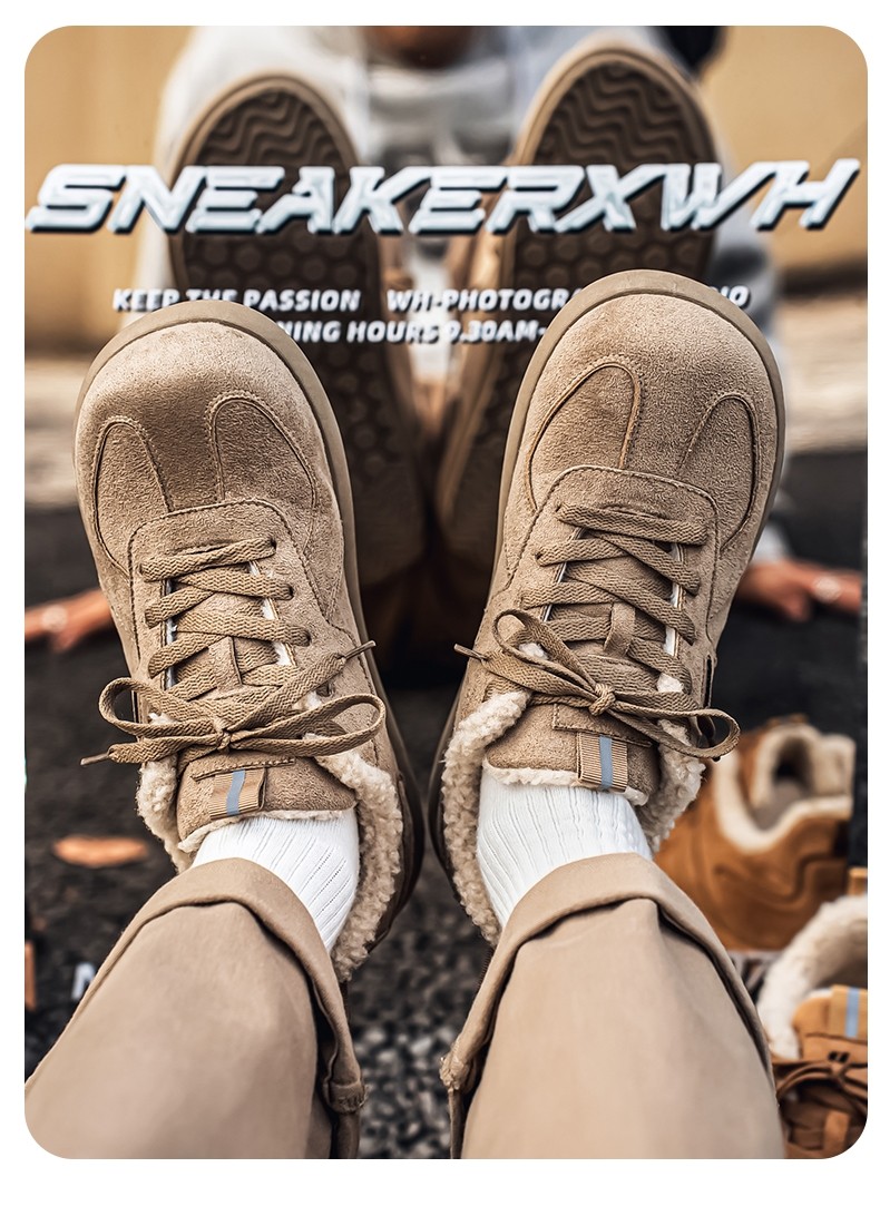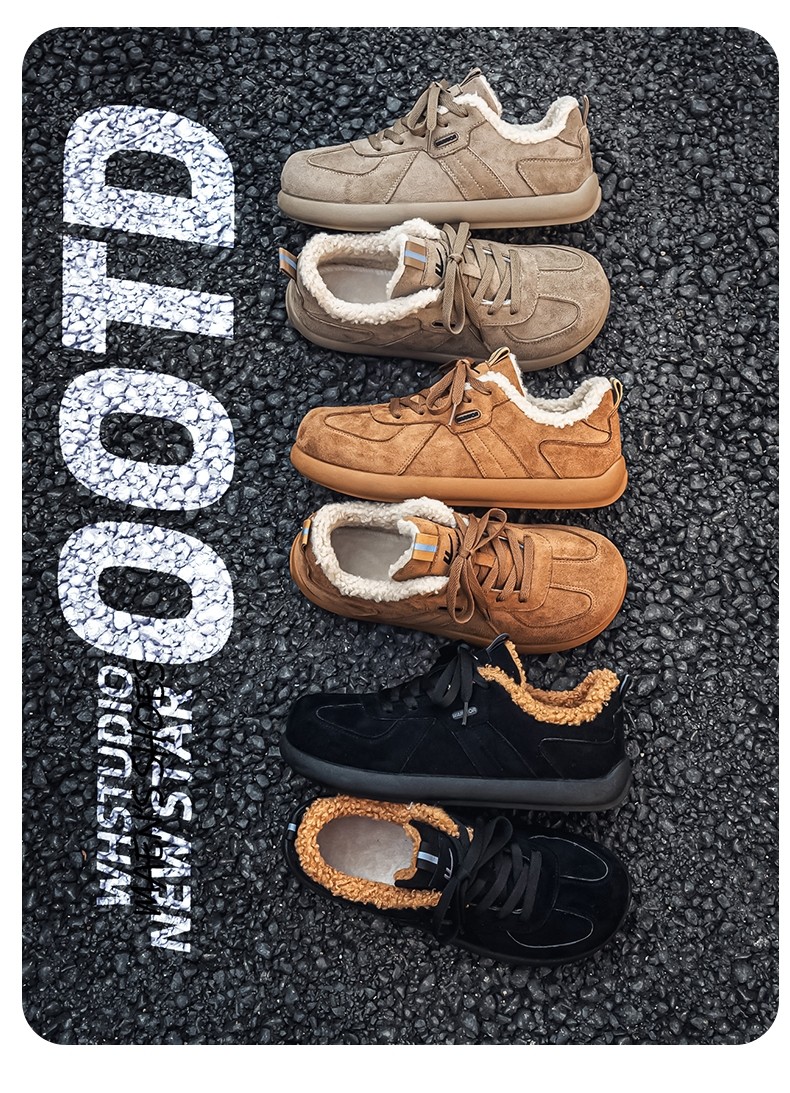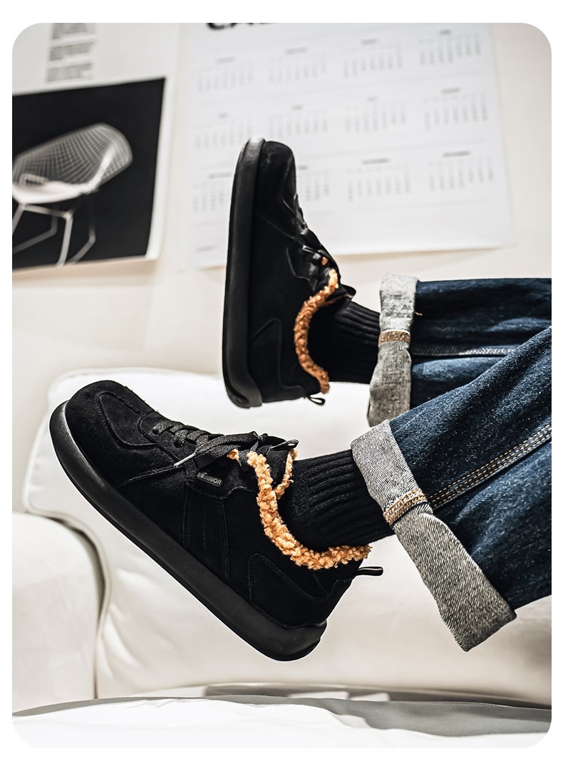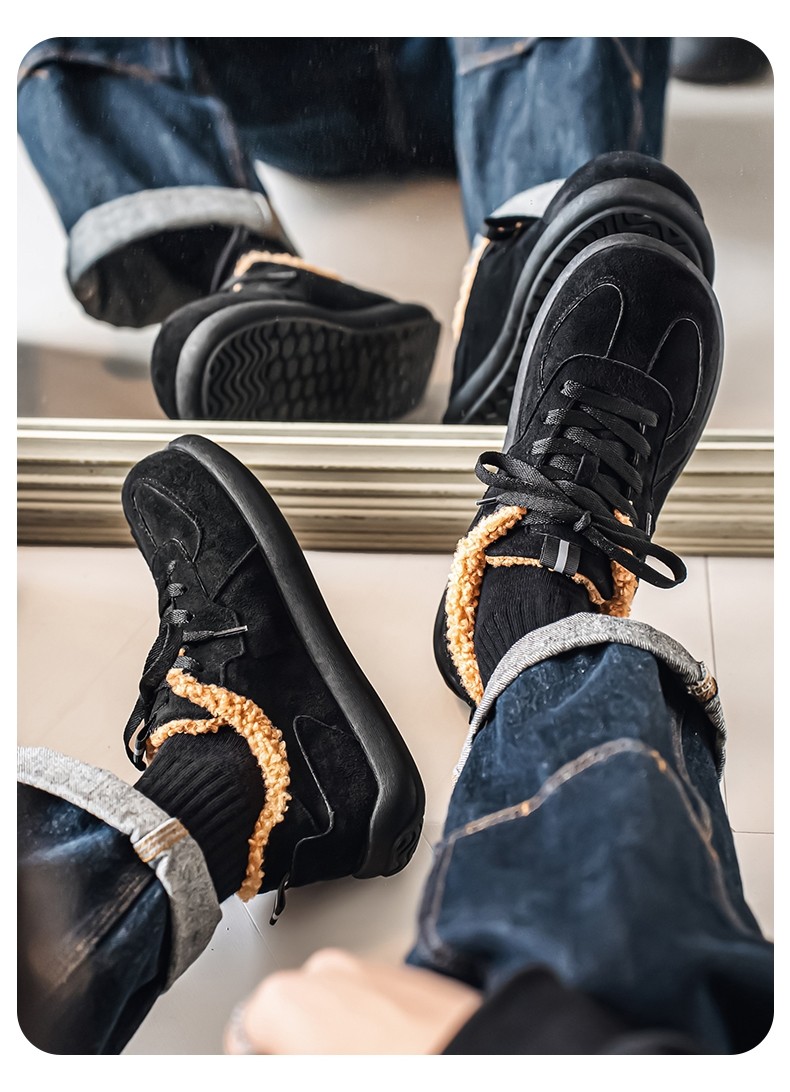 Pull-Back Men's Birkenstock Shoes, Winter Fleece-Lined, Thickened, Warm, Lace-Up, Casual Office Cotton Shoes, Youth Sneakers