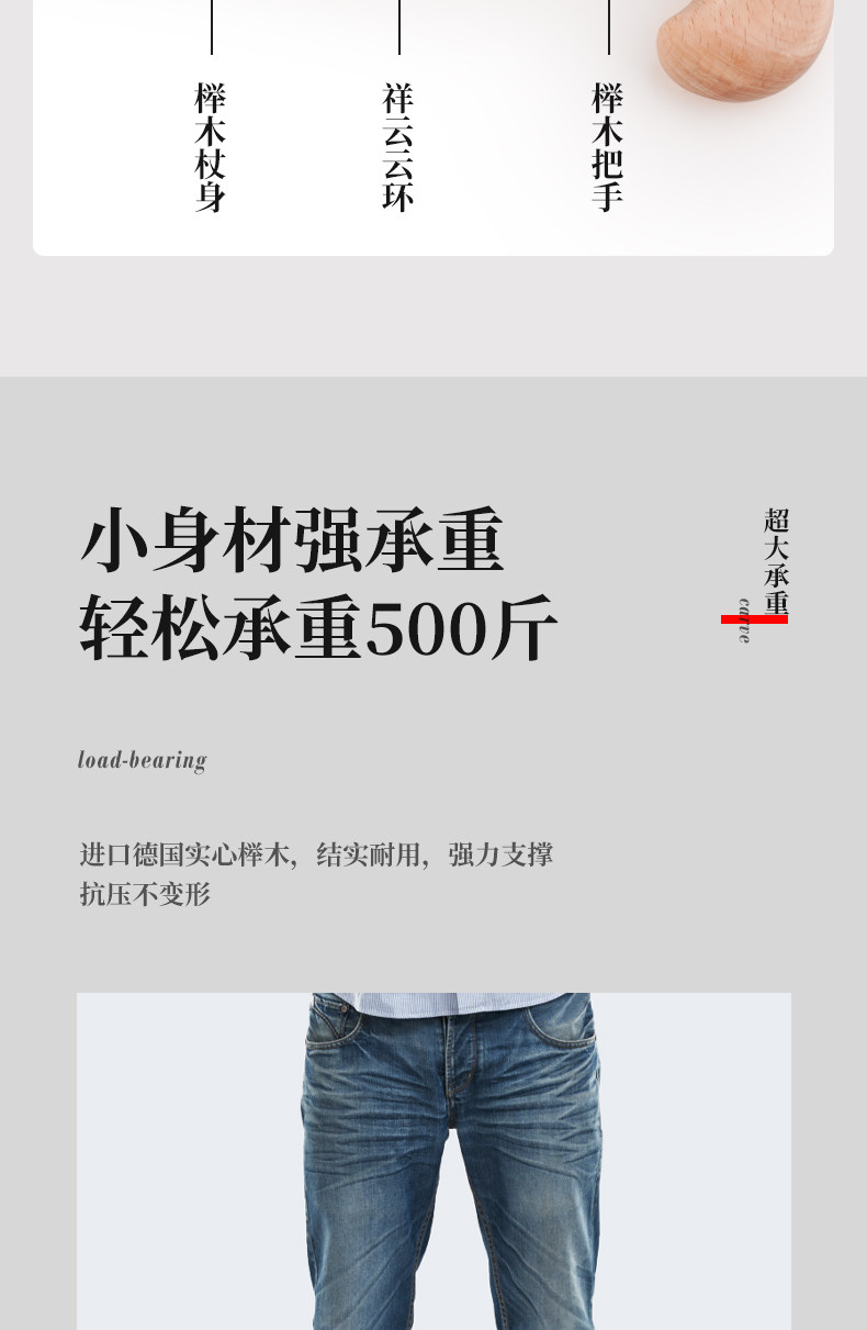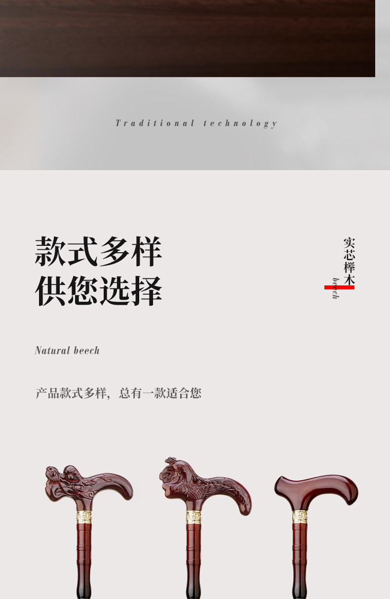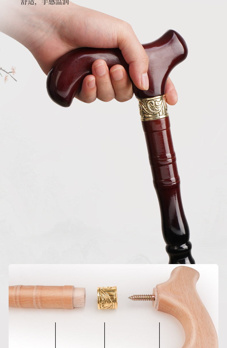German Imported Beechwood Walking Stick for the Elderly, Lightweight, Non-Slip Wooden Cane, Anti-Fall Walking Aid for Seniors, Solid Wood Walking Stick