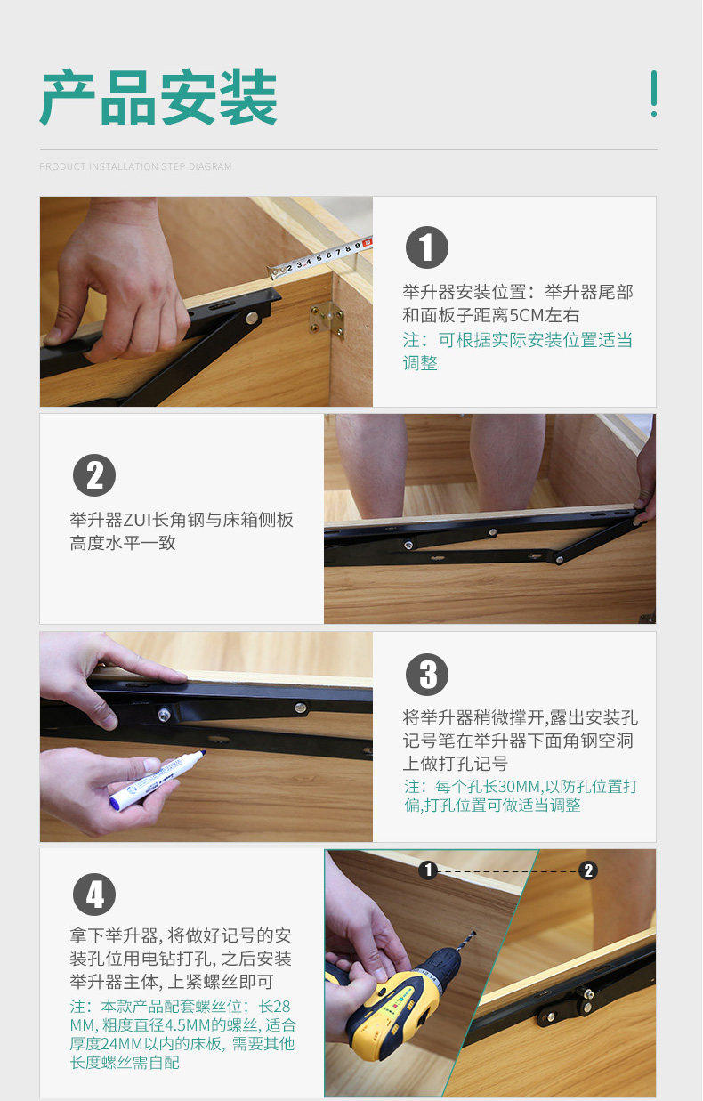Hydraulic Support Rod for Bed, Pneumatic Rod for Tatami Bed Frame, Buffer Lifter, Household Double Hydraulic Gas Strut
